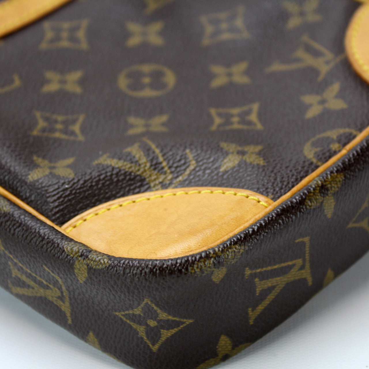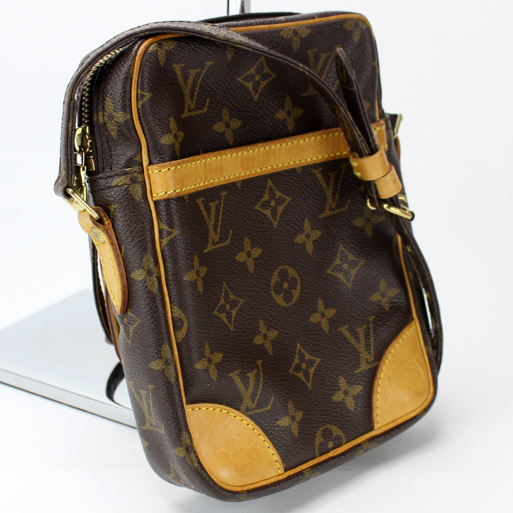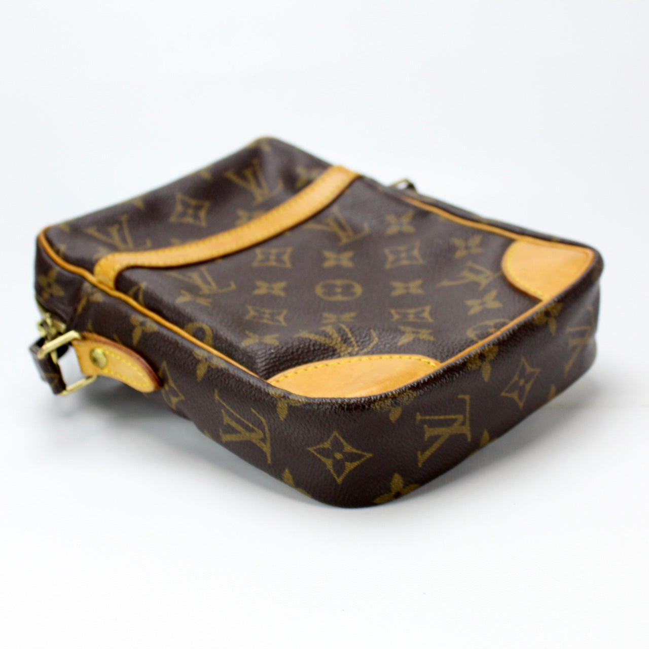 This pre-owned Louis Vuitton Danube is guaranteed 100% authentic. The exterior is in the classic Louis Vuitton Monogram coated canvas.
