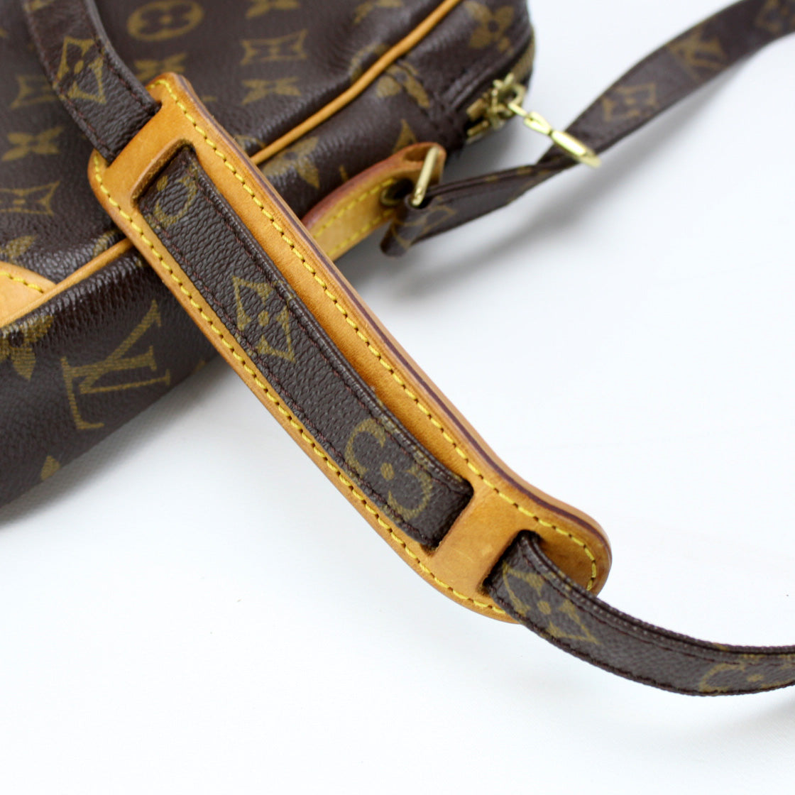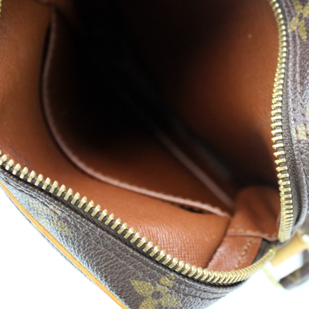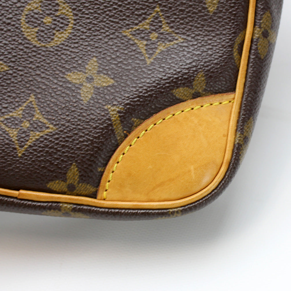 This pre-owned Louis Vuitton Danube is guaranteed 100% authentic. The exterior is in the classic Louis Vuitton Monogram coated canvas.