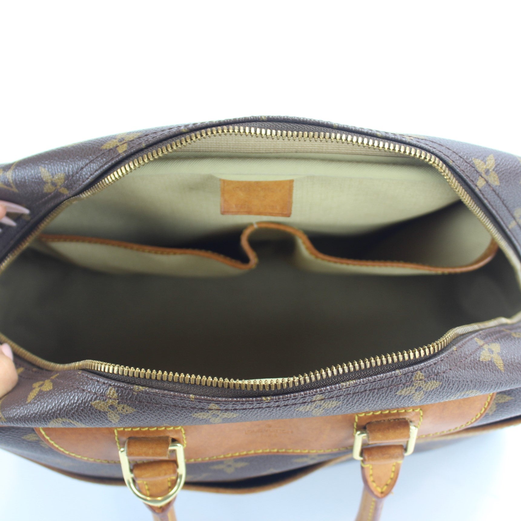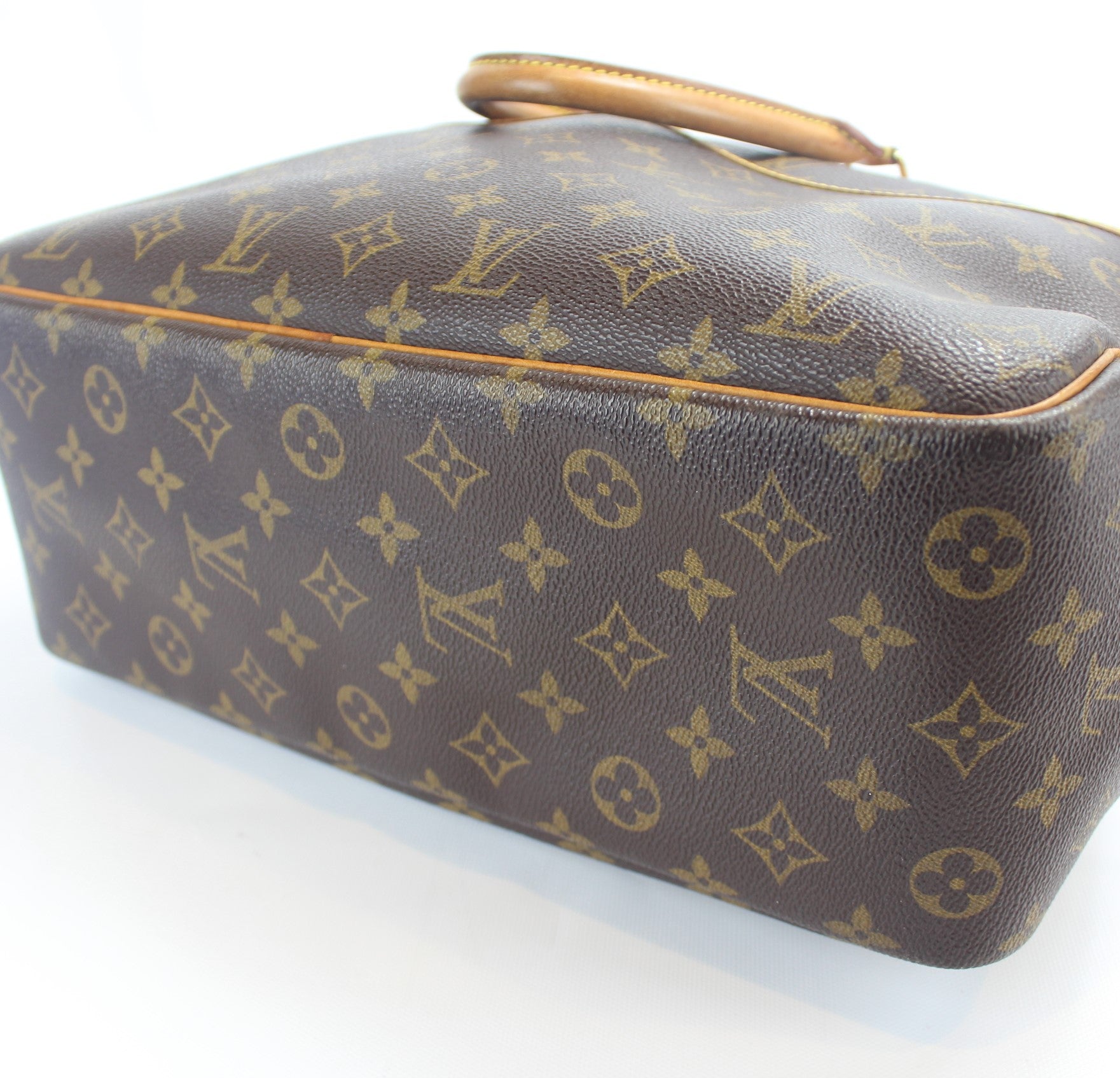 This pre-owned Louis Vuitton Deauville is guaranteed 100% authentic. The exterior is in the classic Louis Vuitton Monogram coated canvas.