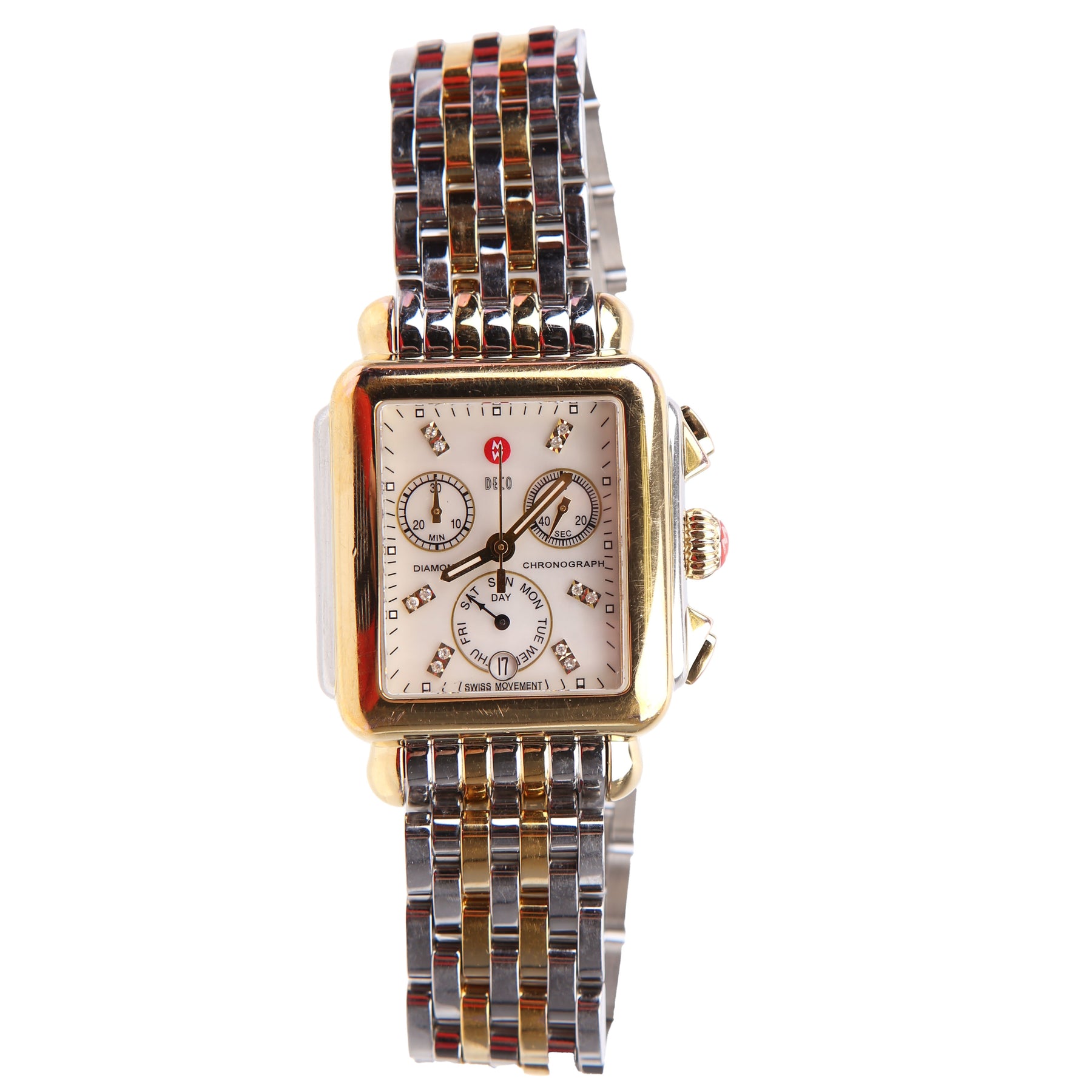 This pre-owned Michele Deco Two-Tone 18K Plated Watch is guaranteed 100% authentic.