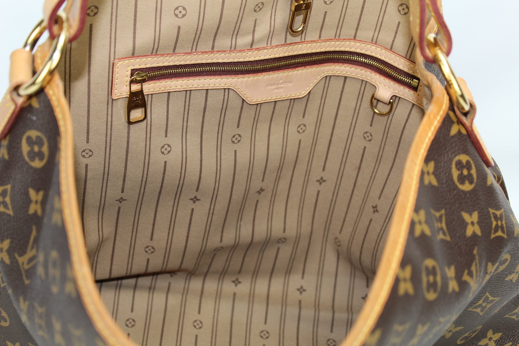 This pre-owned Louis Vuitton Delightful MM is guaranteed 100% authentic. The exterior is in the classic Louis Vuitton Monogram coated canvas.