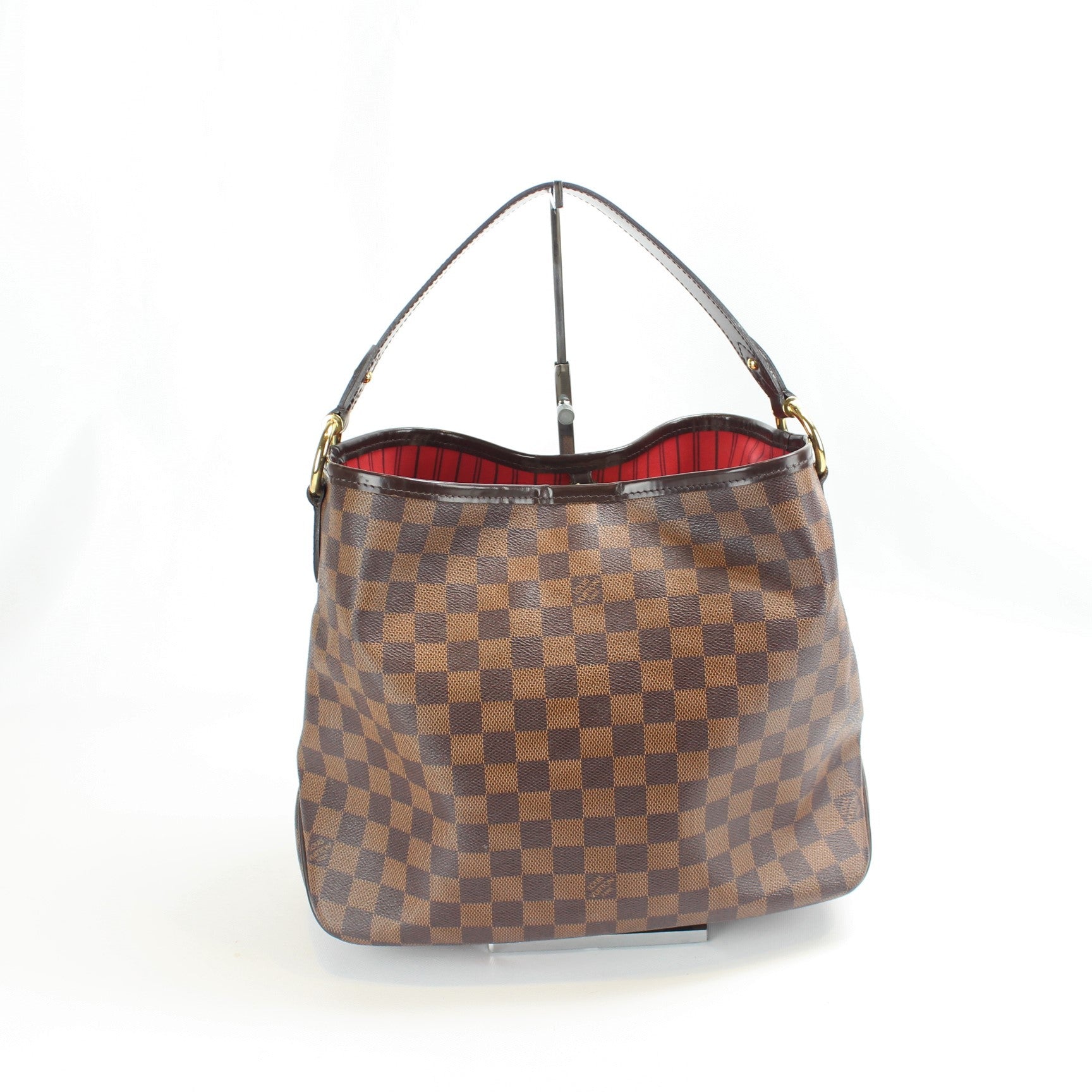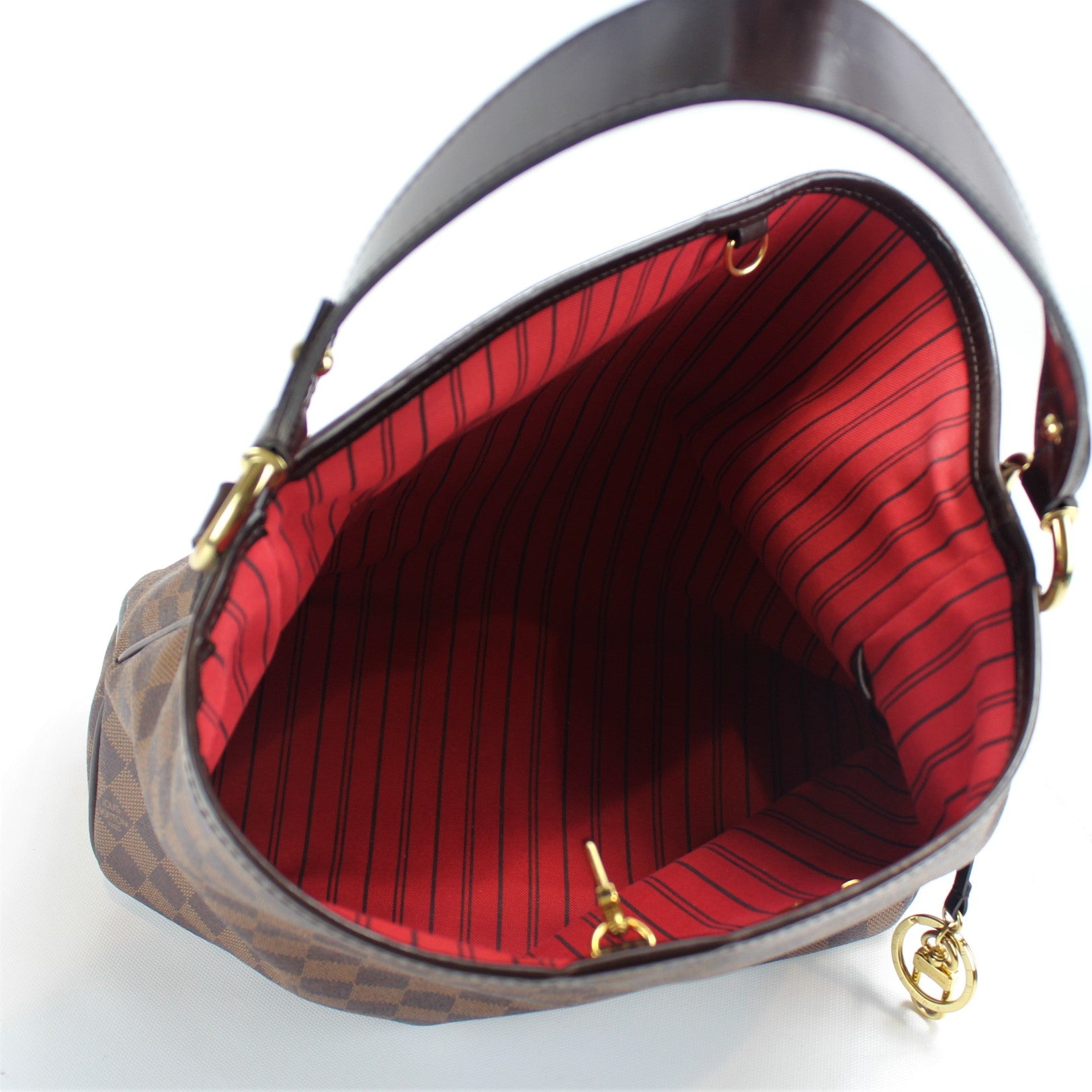 This pre-owned Louis Vuitton Delightful Pm is guaranteed 100% authentic. The exterior is in the classic Louis Vuitton Damier Ebene coated canvas.