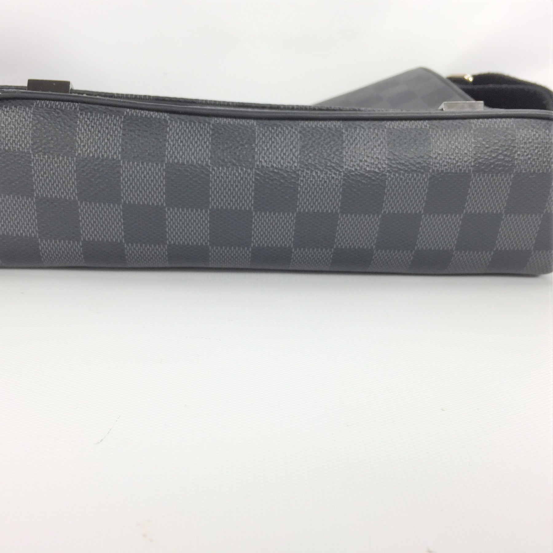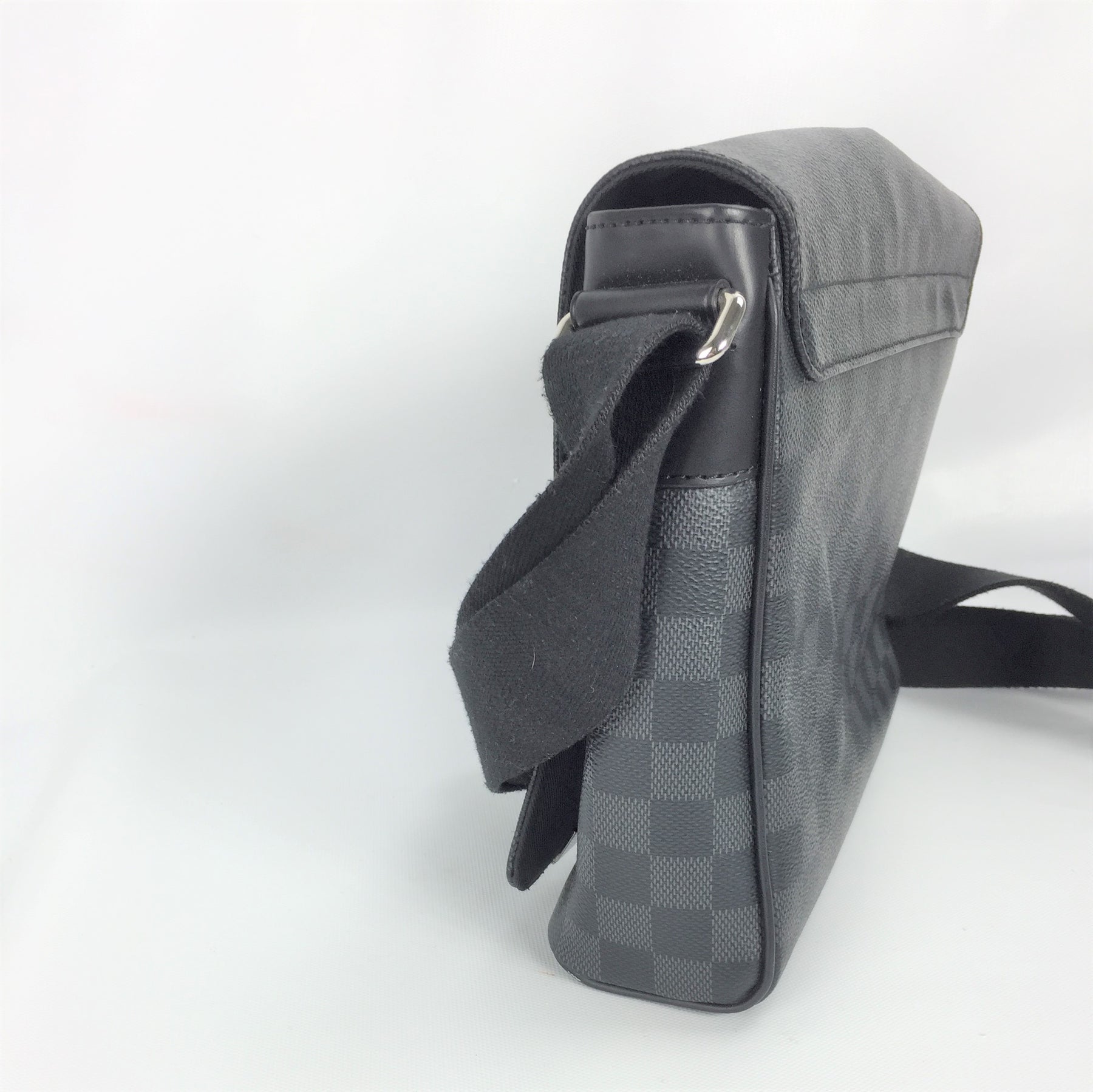This pre-owned Louis Vuitton District PM is guaranteed 100% authentic. The exterior is in the classic Men's black and charcoal Damier Graphite coated canvas.