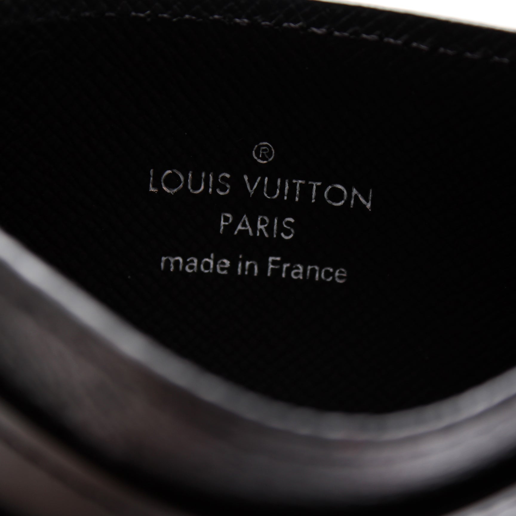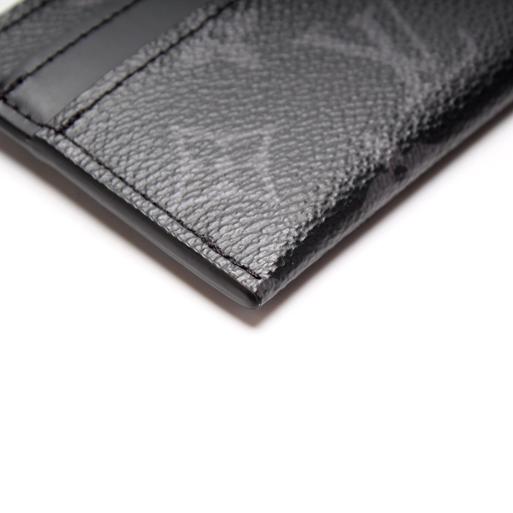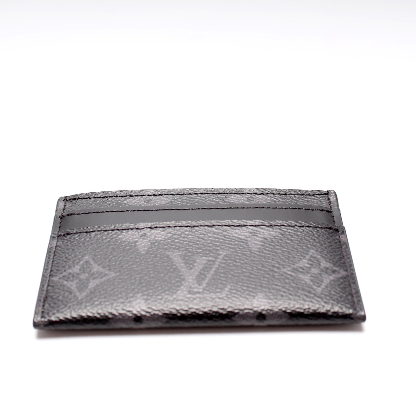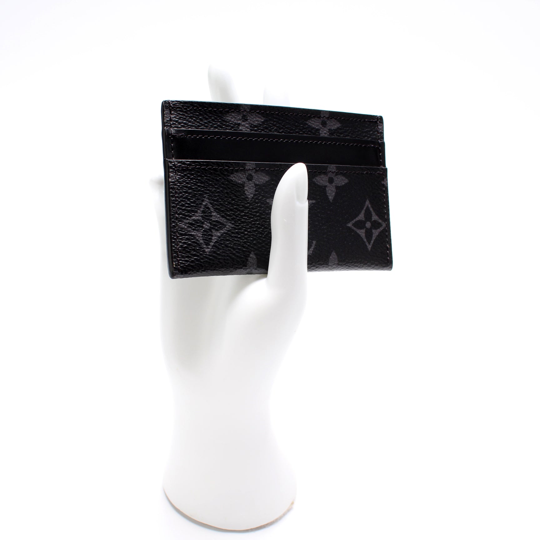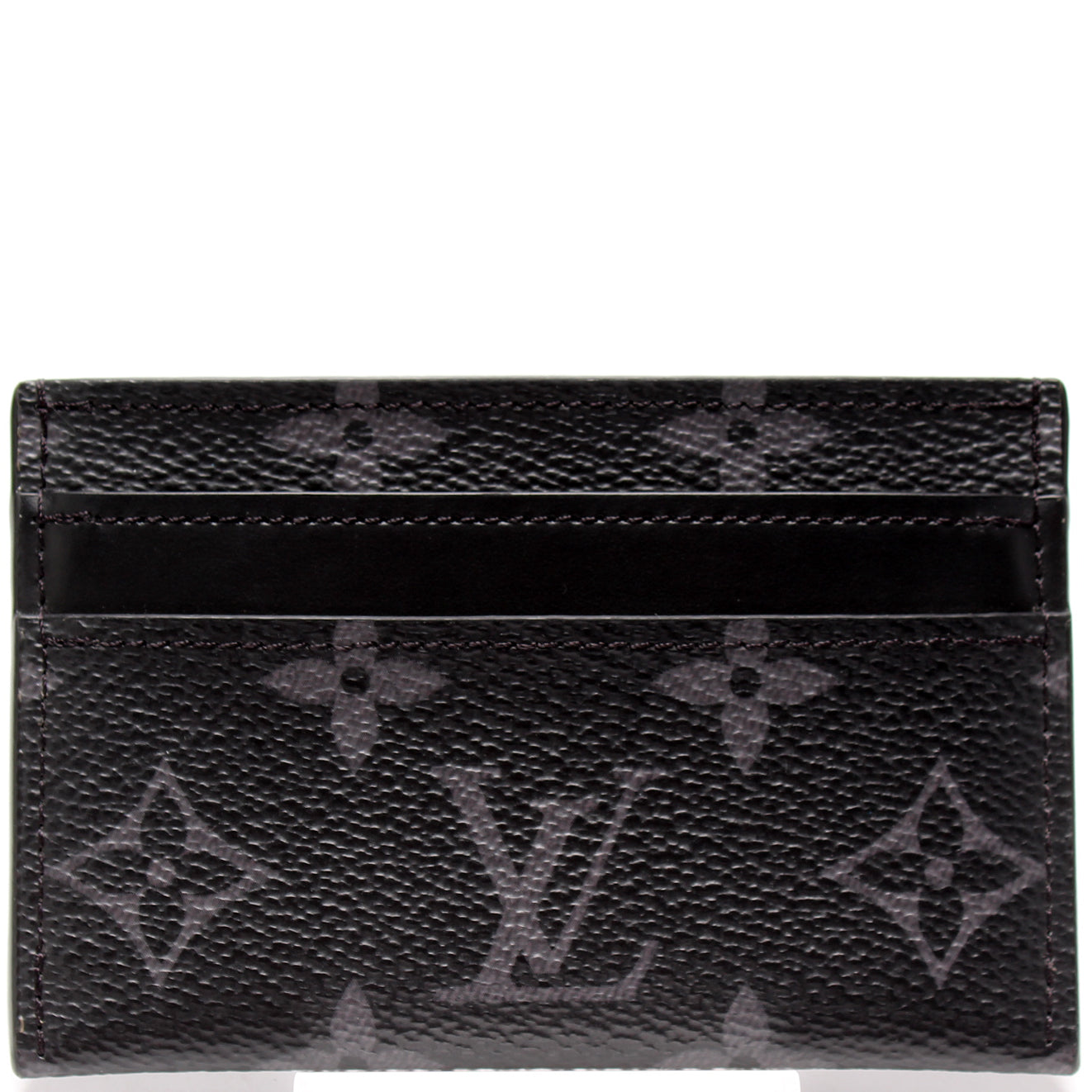 This pre-owned Louis Vuitton Double Card Holder is guaranteed 100% authentic. The exterior is in the classic Eclipse Monogram coated canvas.