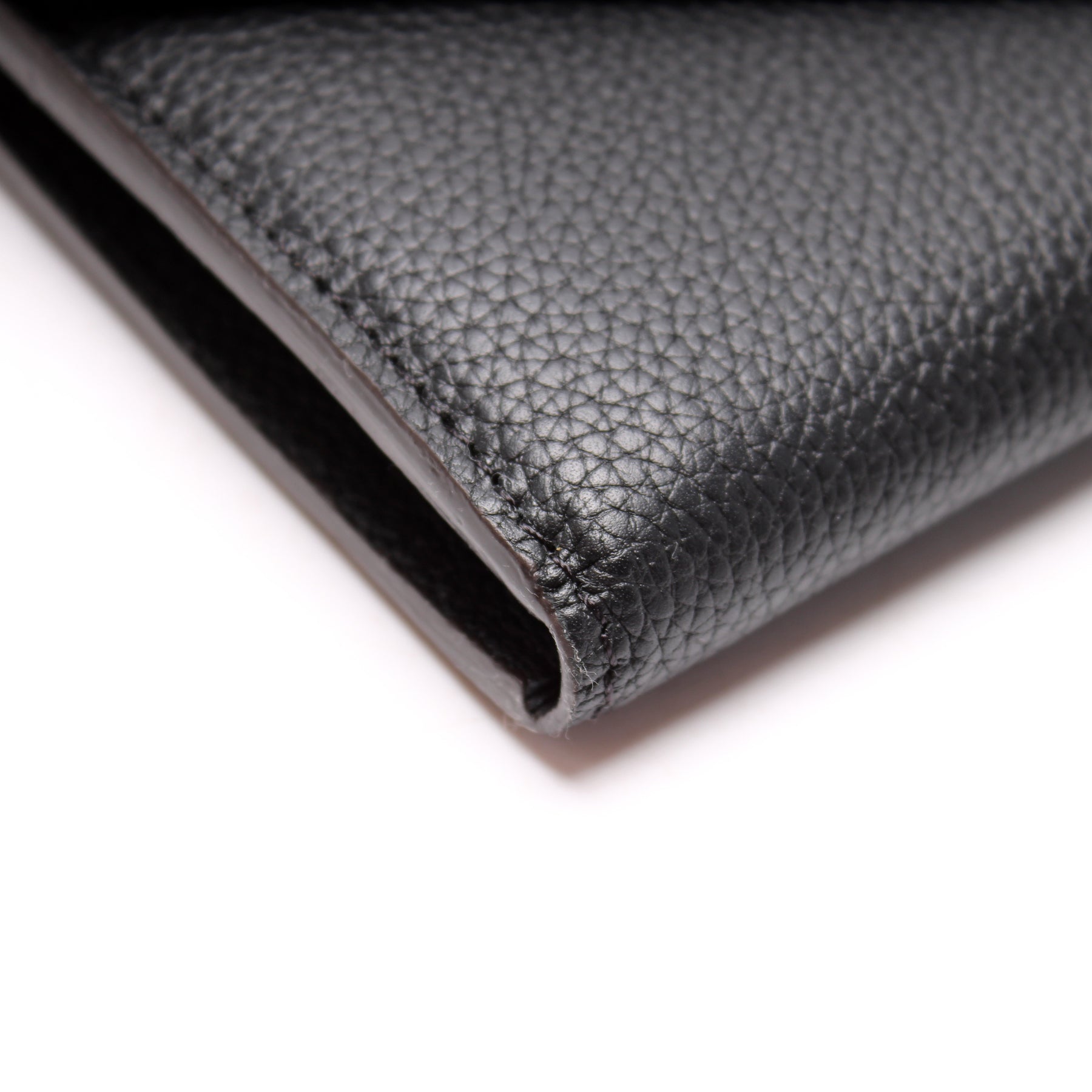 Interior: The interior is clean and free of rips or tears. The interior features one snap closure pocket, one bill slots, one zip closure coin pouch, and twelve card slots.