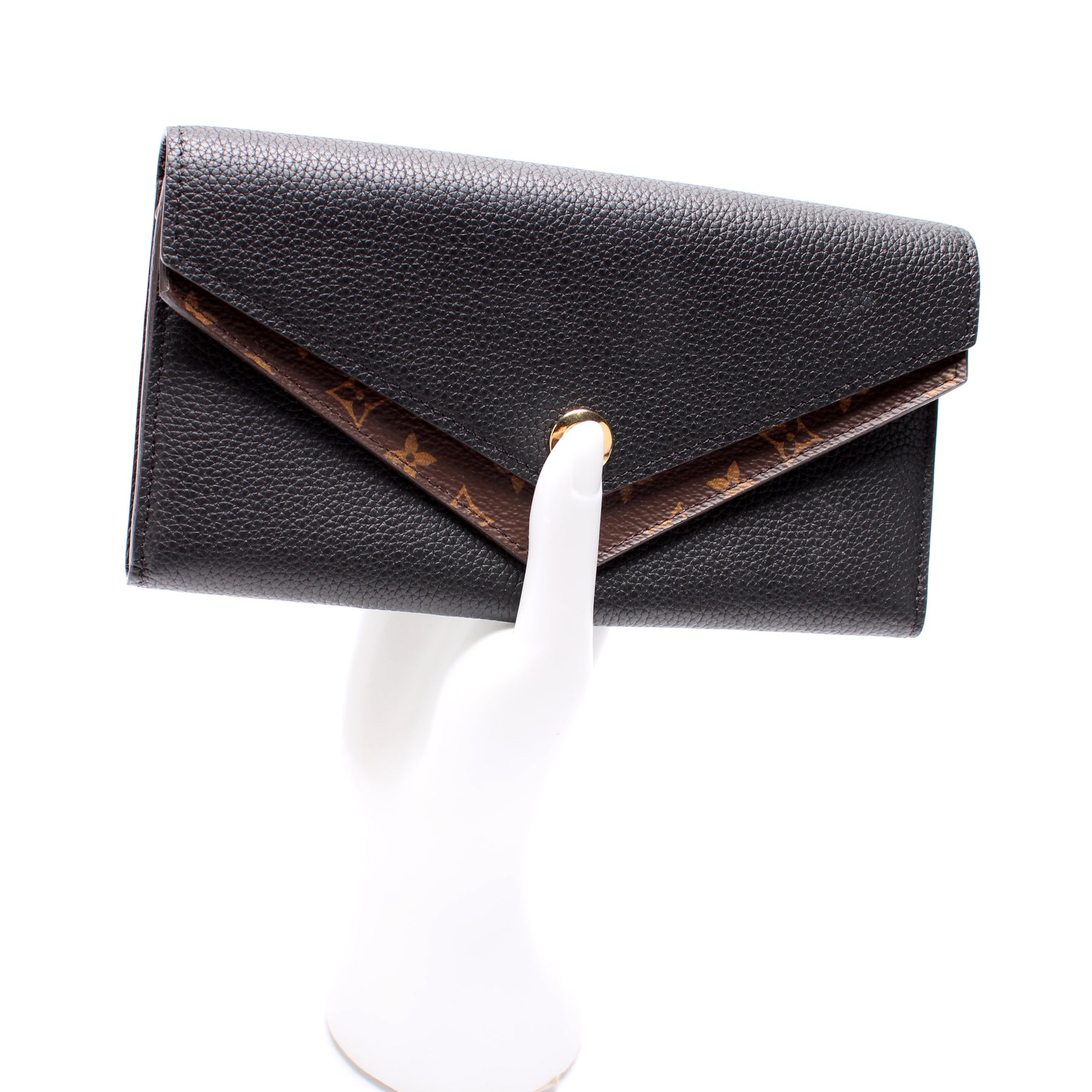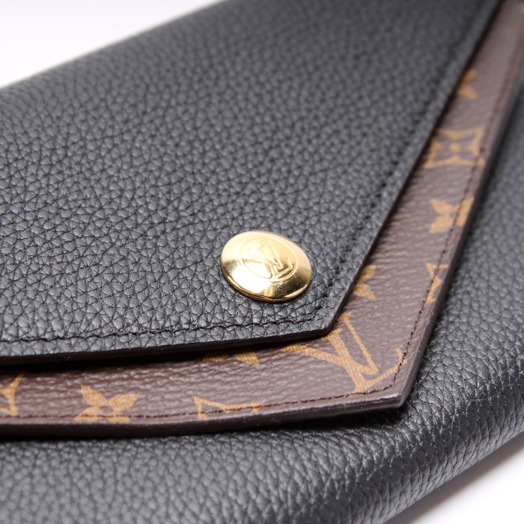 This pre-owned Louis Vuitton Double V Long Wallet is guaranteed 100% authentic. The exterior is in the classic Louis Vuitton Pebbled leather and Monogram coated canvas.