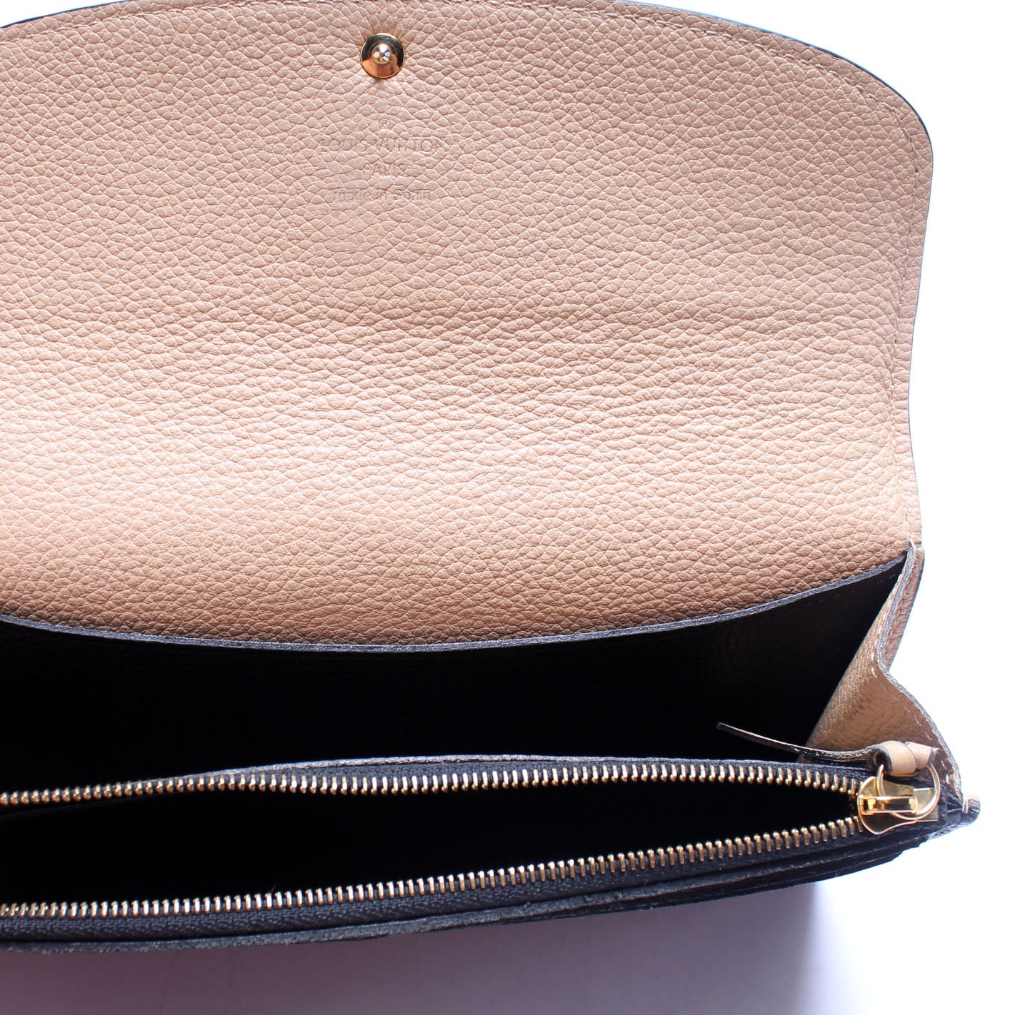 This pre-owned Louis Vuitton Emilie Wallet is guaranteed 100% authentic. The exterior is in the Louis Vuitton Monogram Empreinte leather.