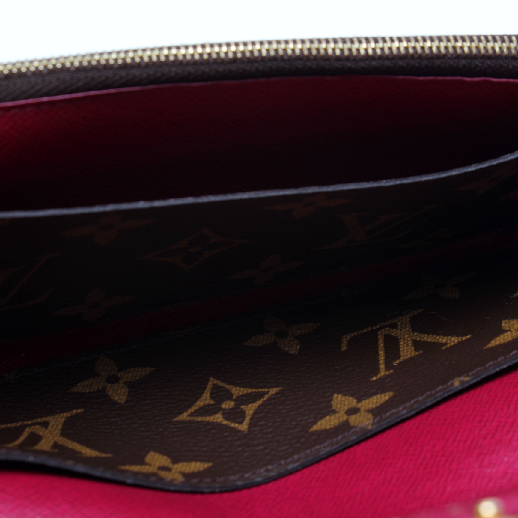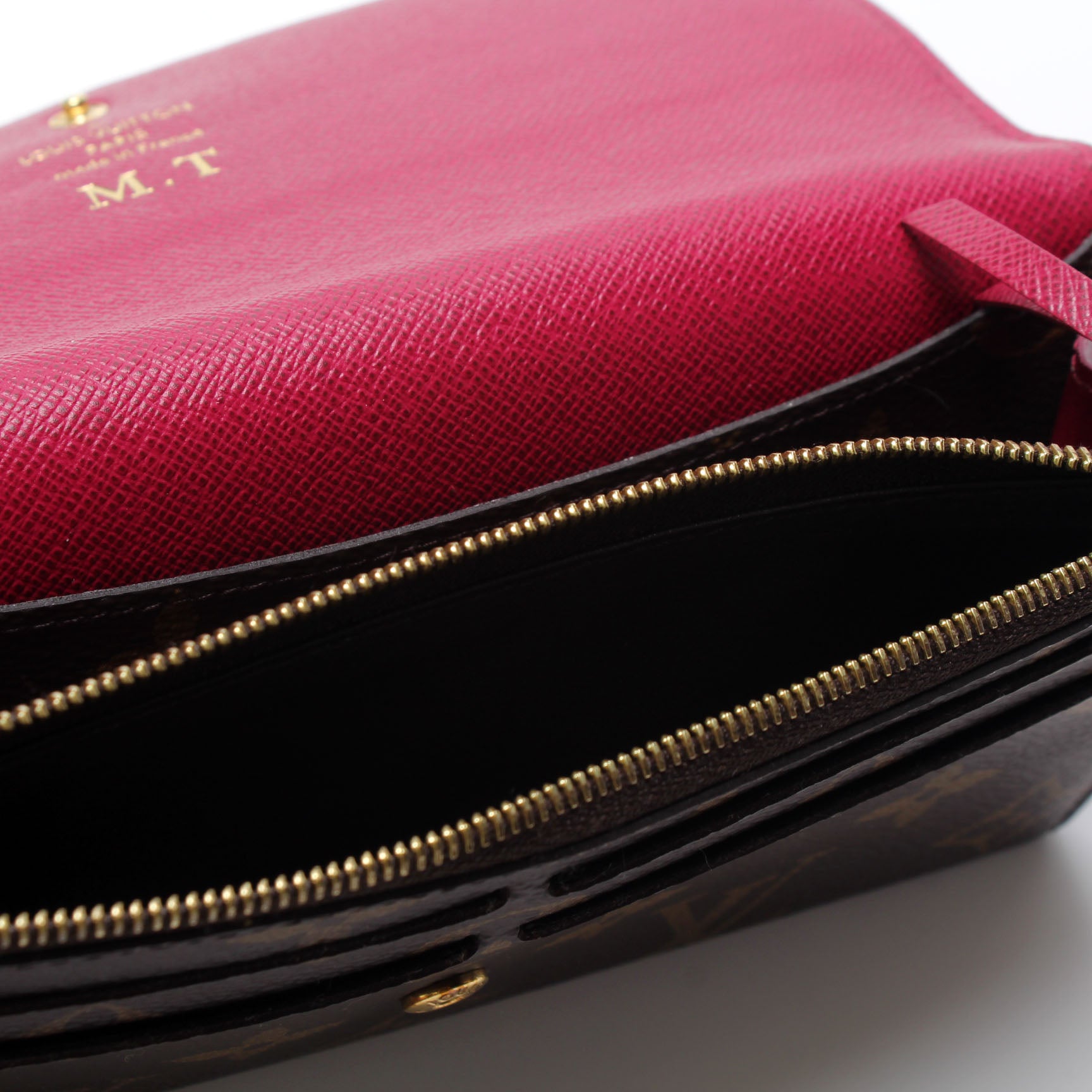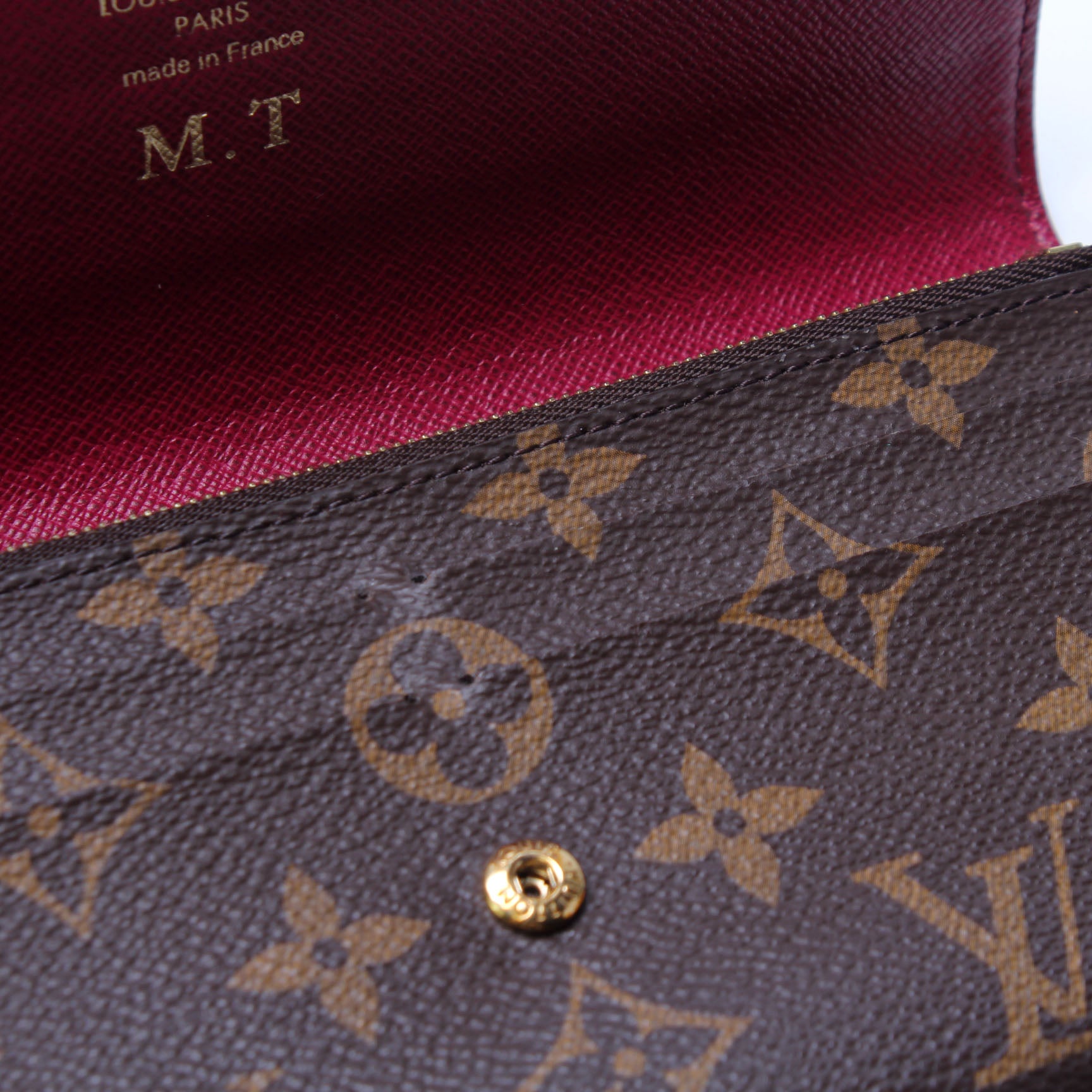 This pre-owned Louis Vuitton Emilie Wallet is guaranteed 100% authentic. The exterior is in the classic Louis Vuitton Monogram coated canvas.
