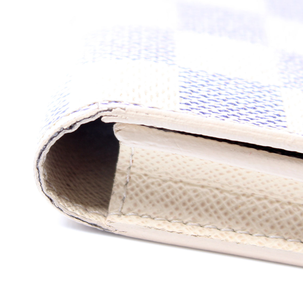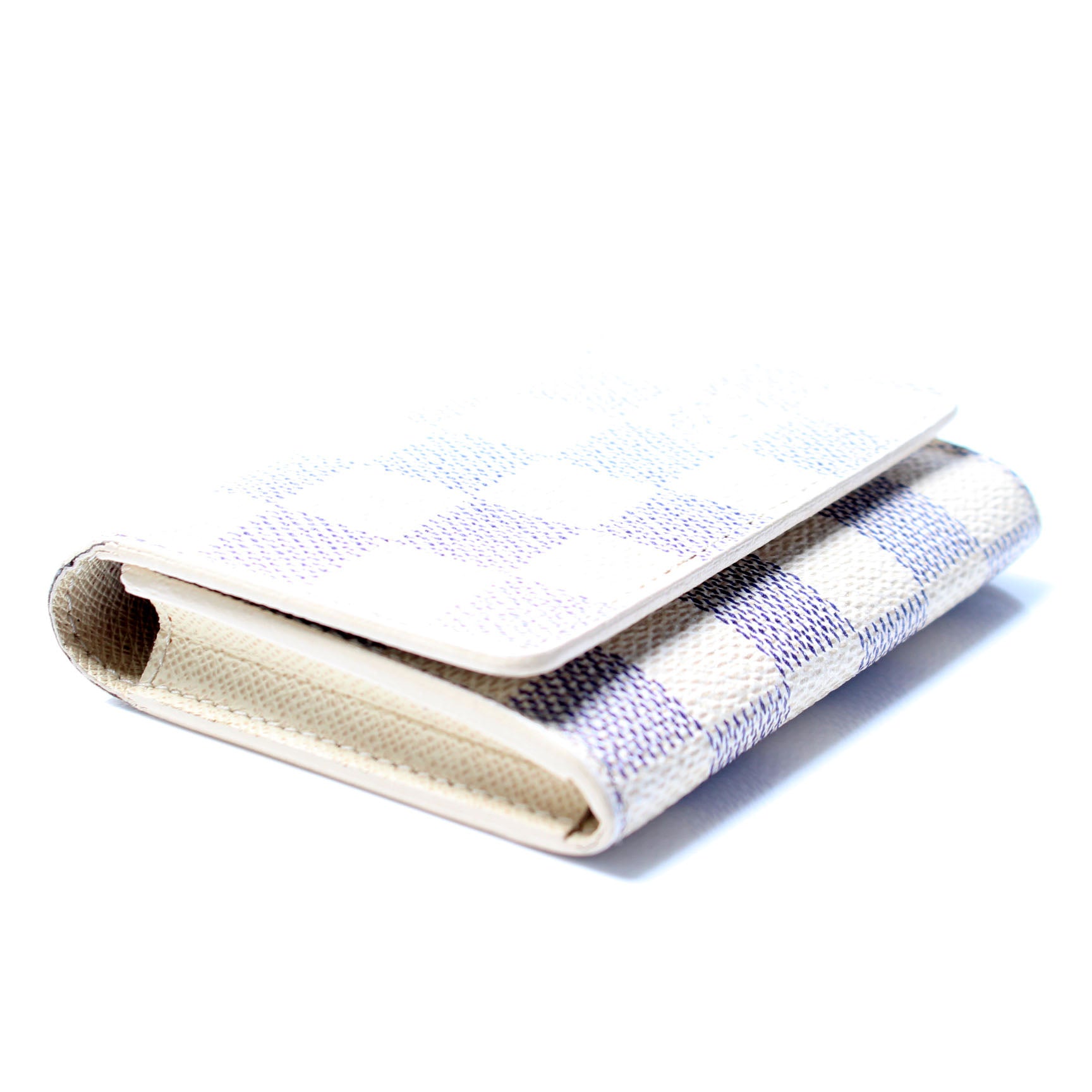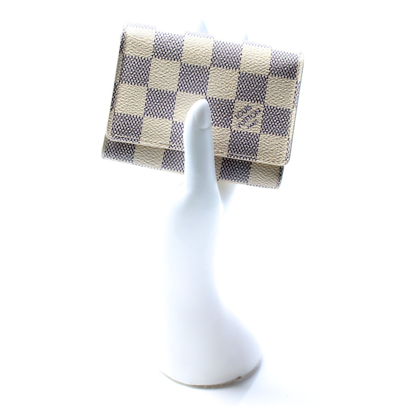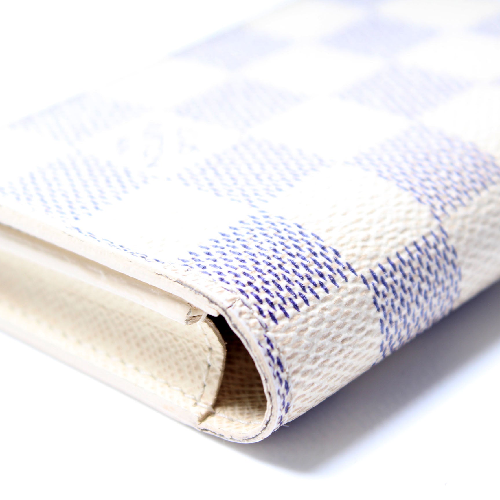 This pre-owned Louis Vuitton Enveloppe Cartes is guaranteed 100% authentic. The exterior is in the classic Louis Vuitton Damier Azur coated canvas.
