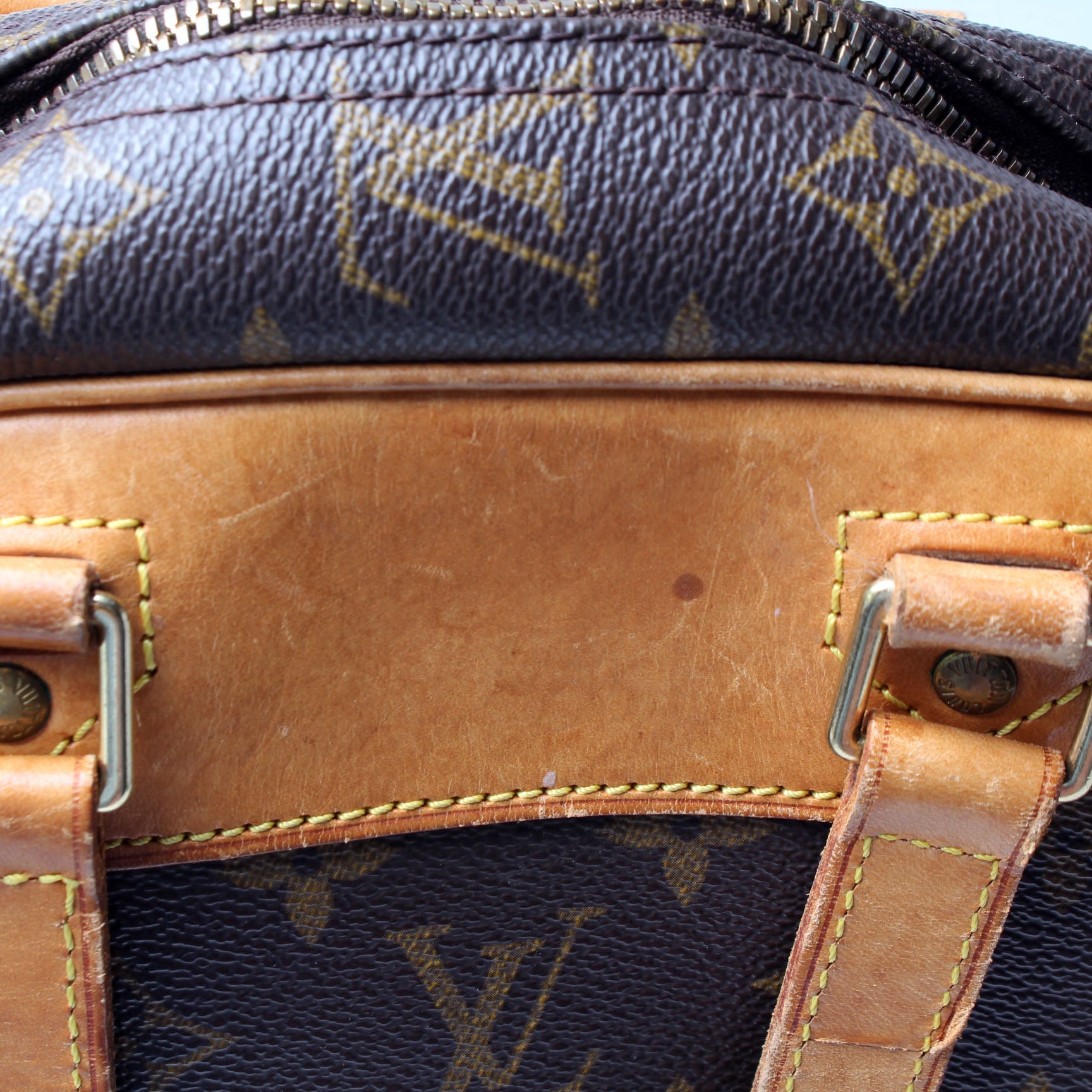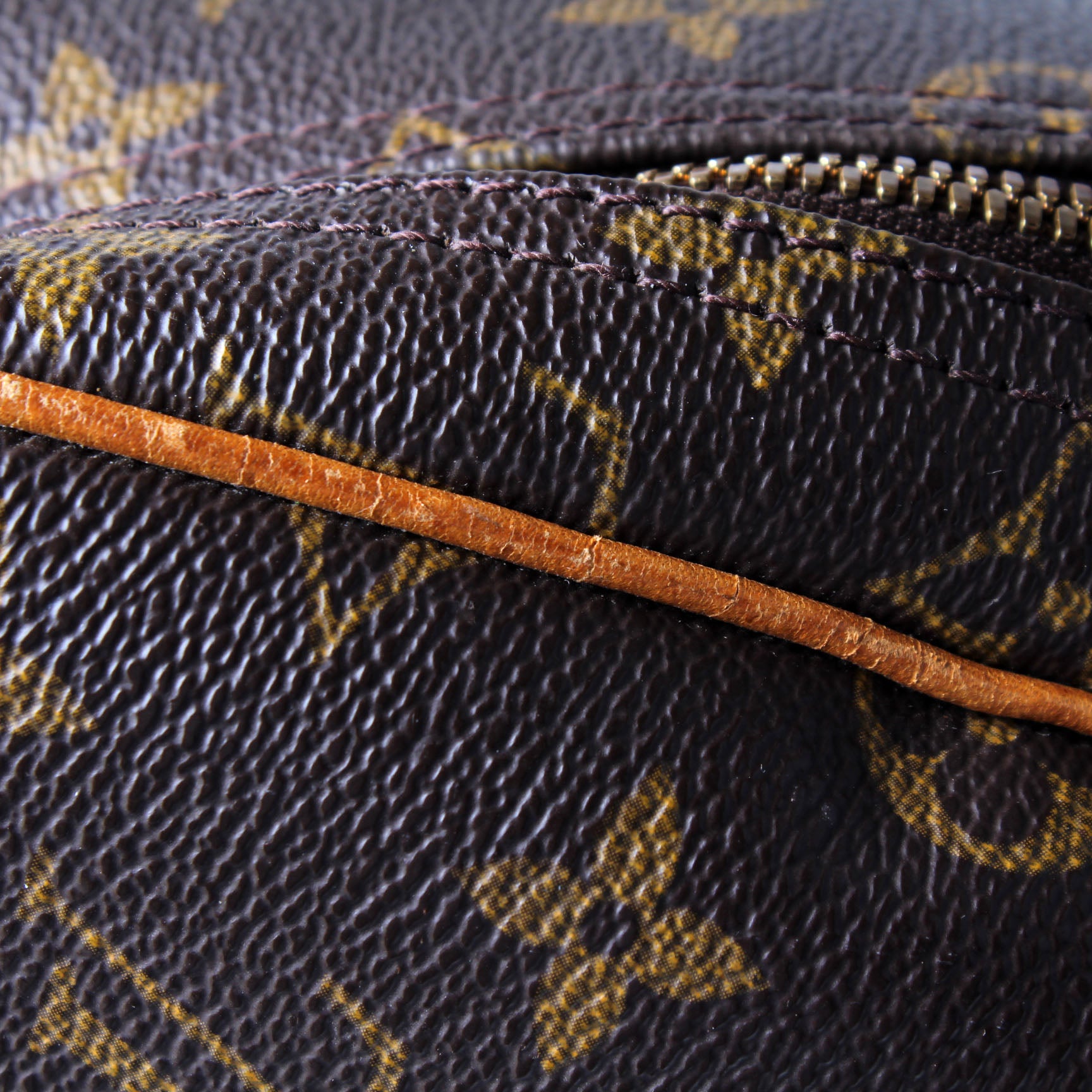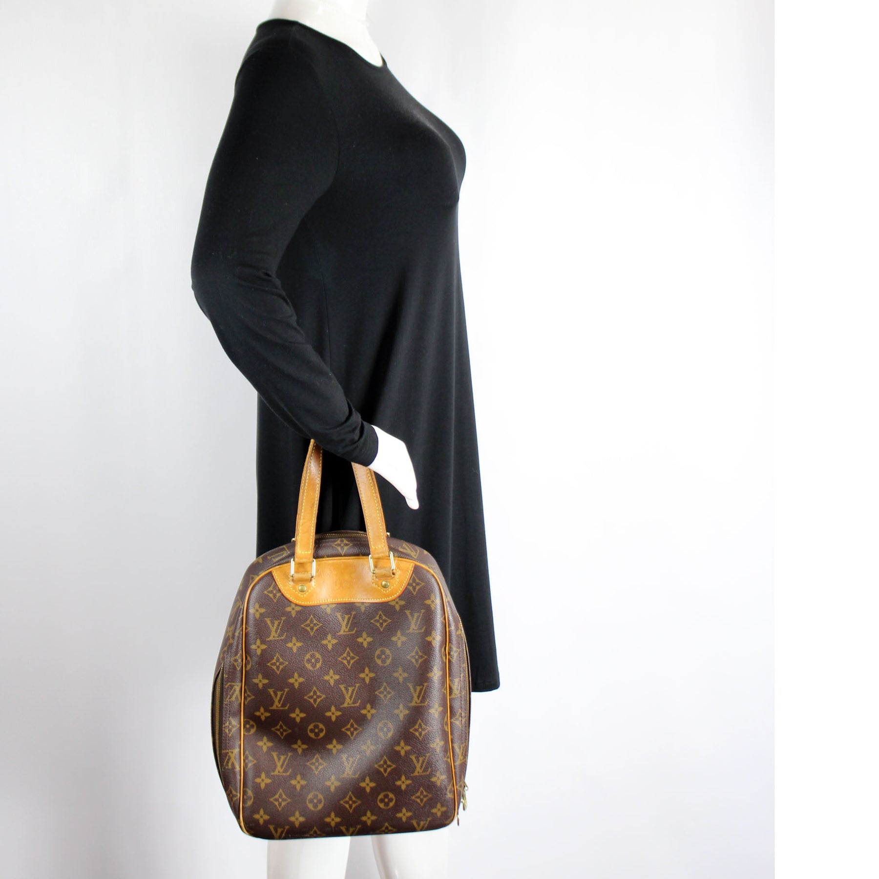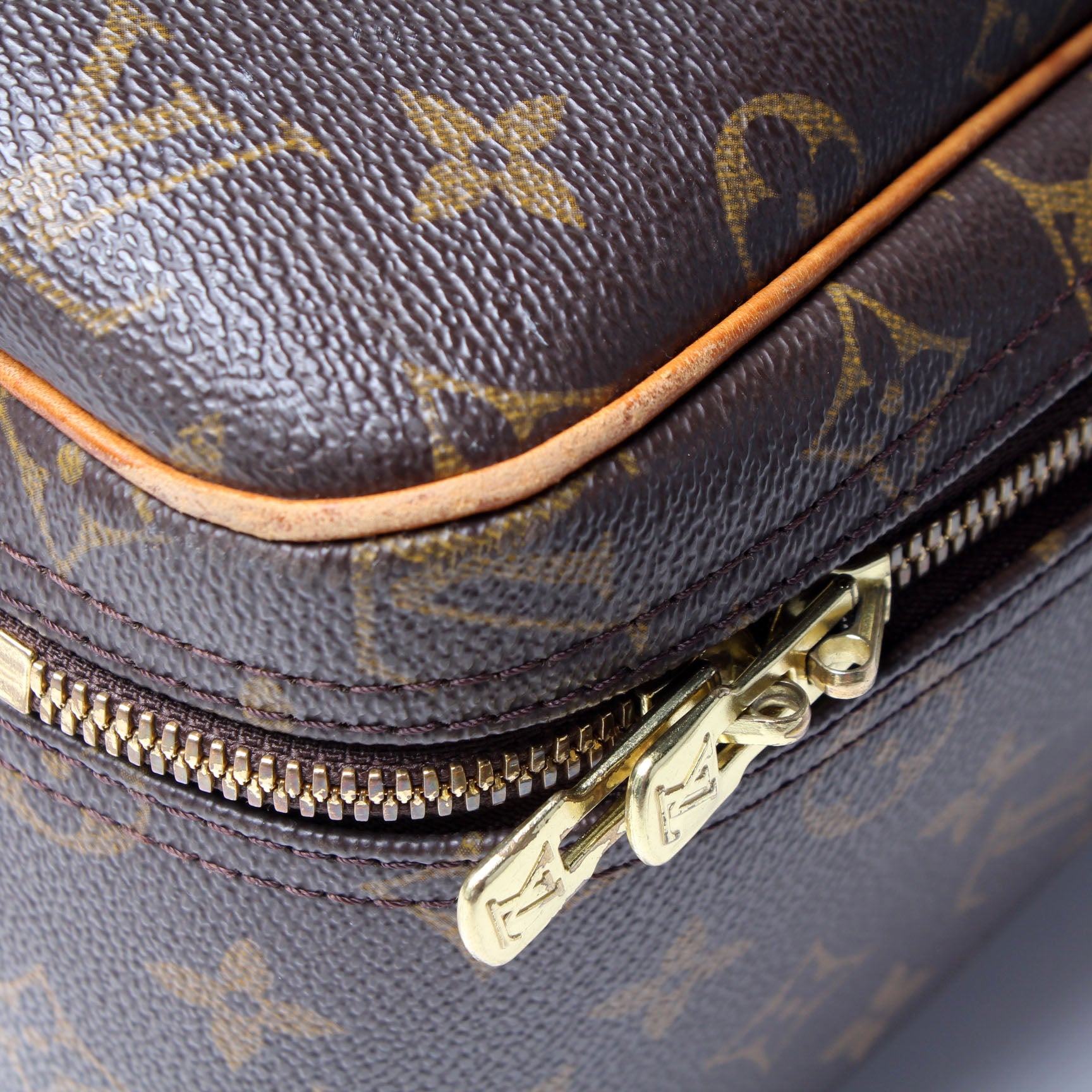 This pre-owned Louis Vuitton Excursion Shoe Bag is guaranteed 100% authentic. The exterior is in the classic Louis Vuitton Monogram coated canvas.