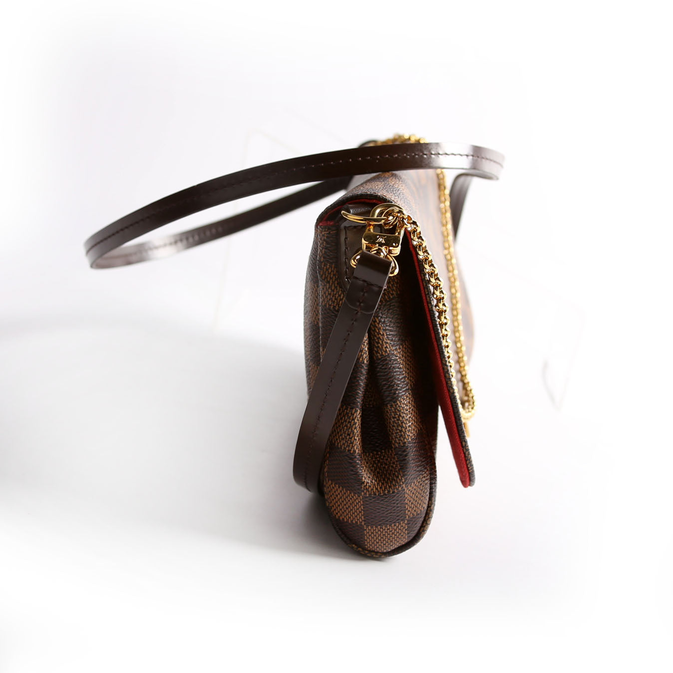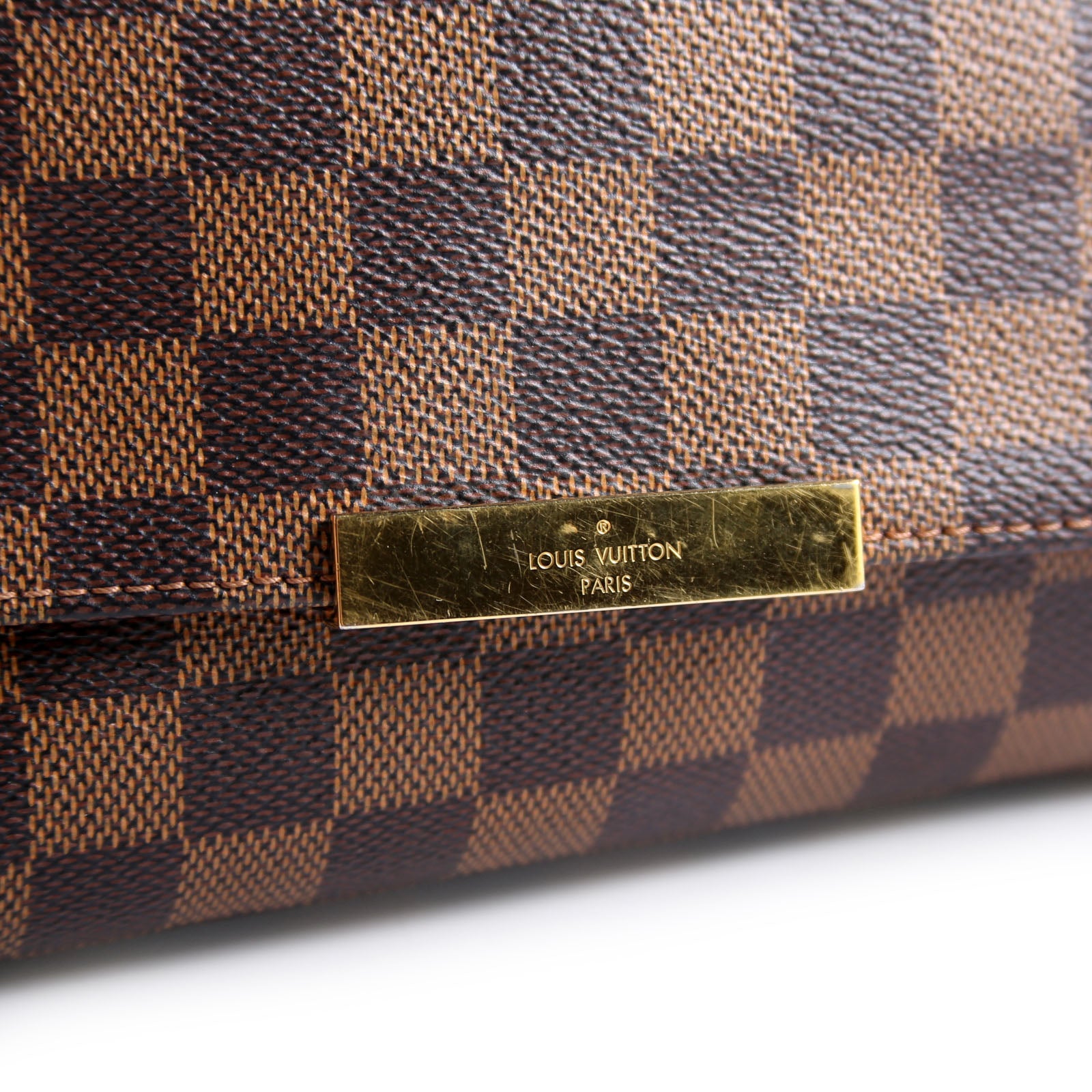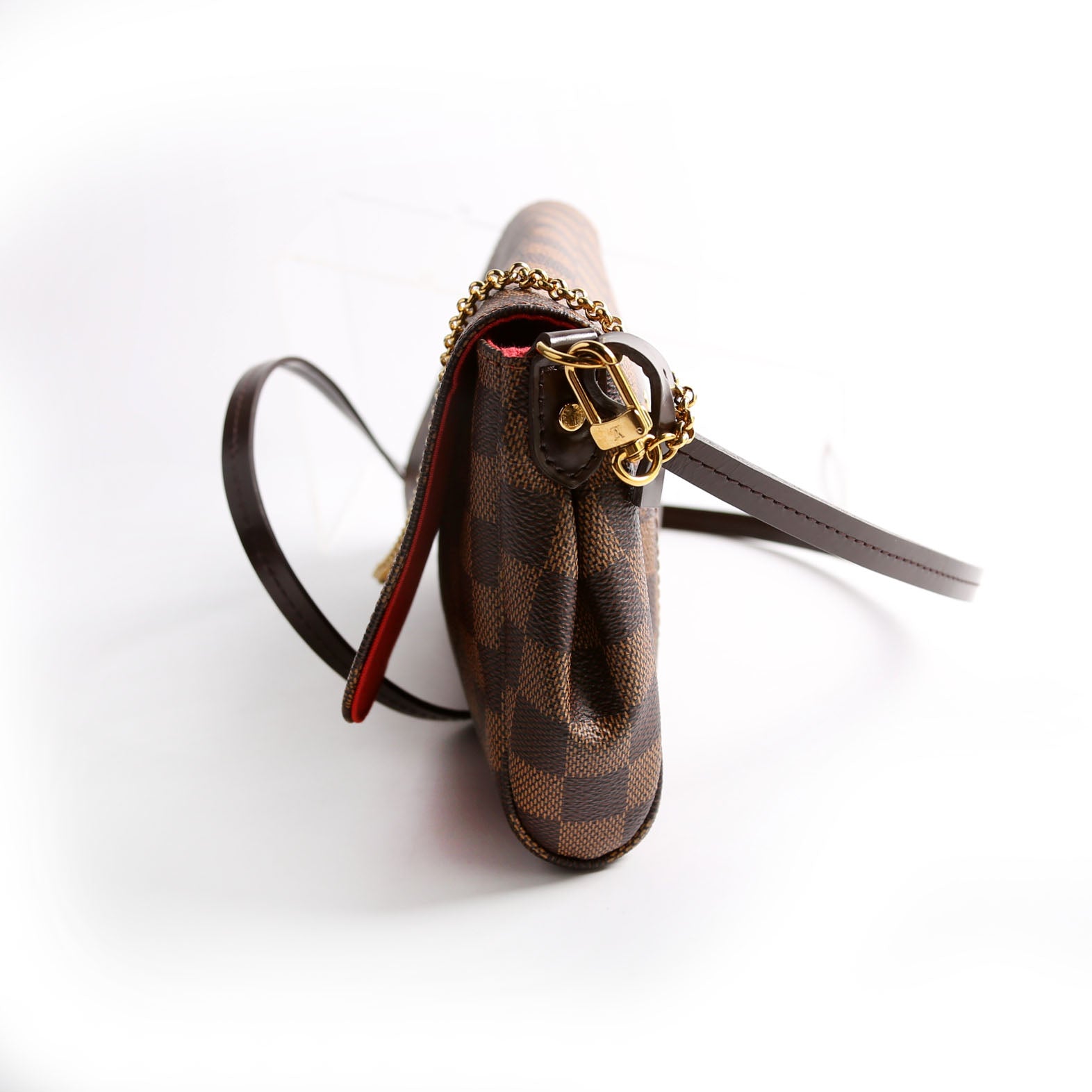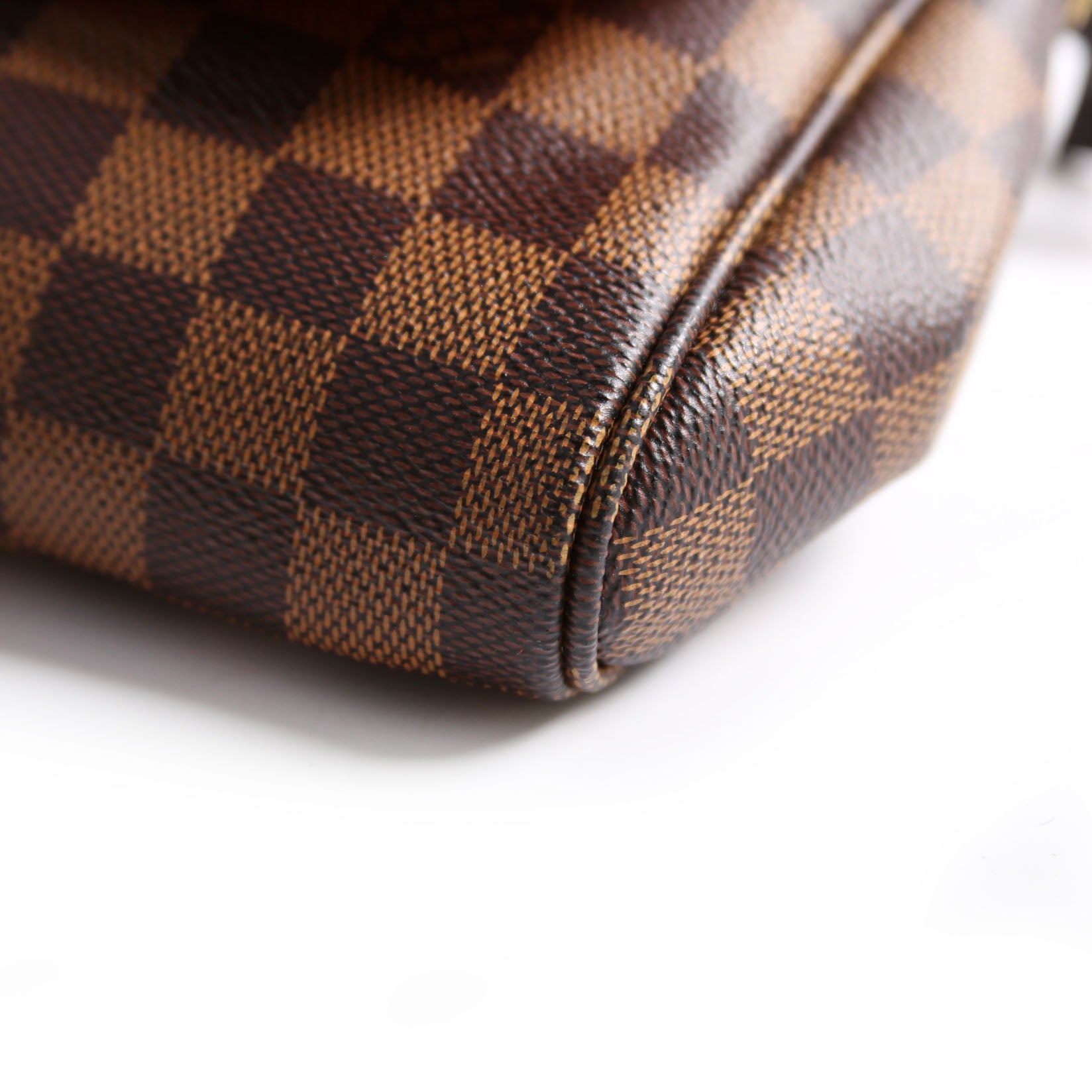 This pre-owned Louis Vuitton Favorite PM is guaranteed 100% authentic. The exterior is in the classic Damier Ebene coated canvas.
