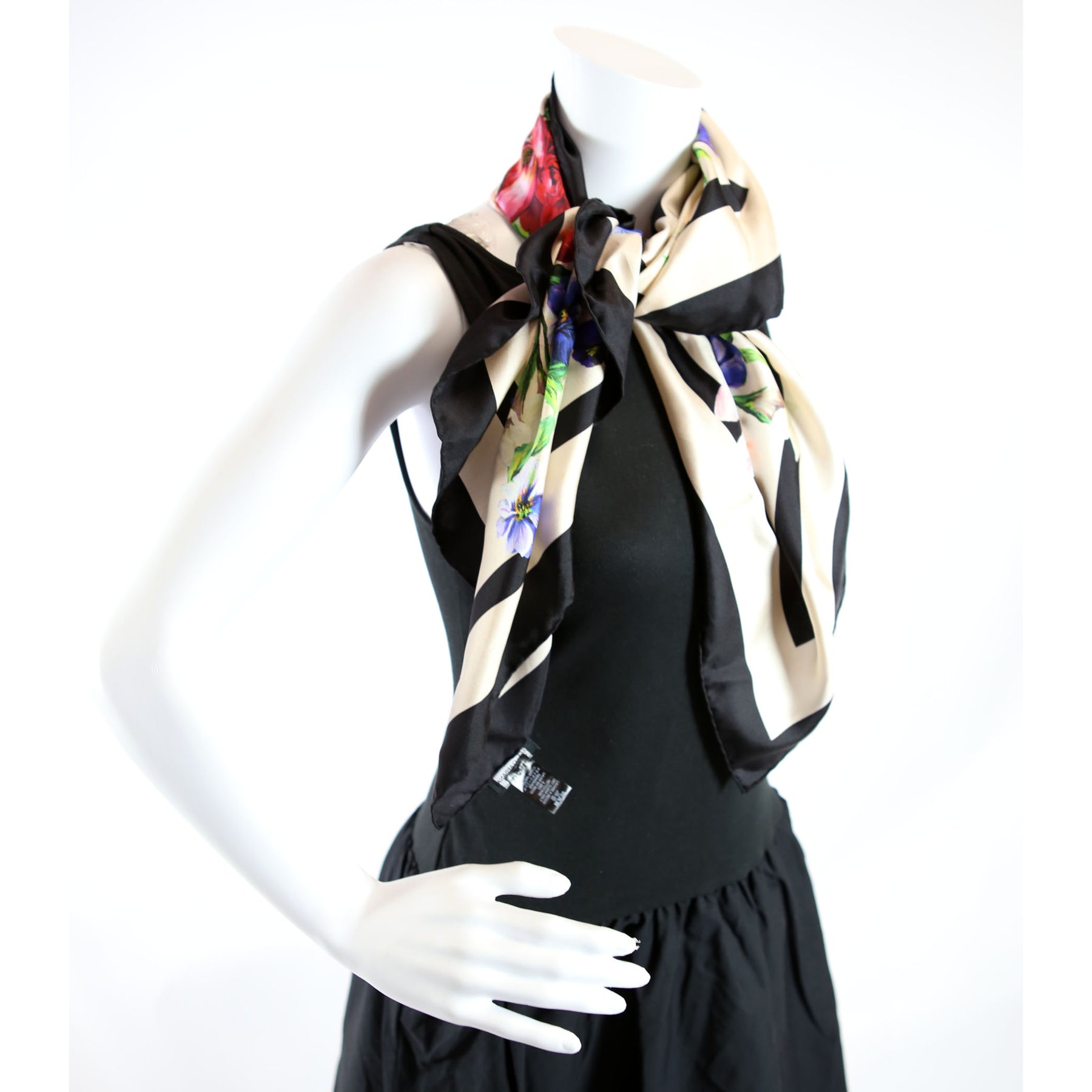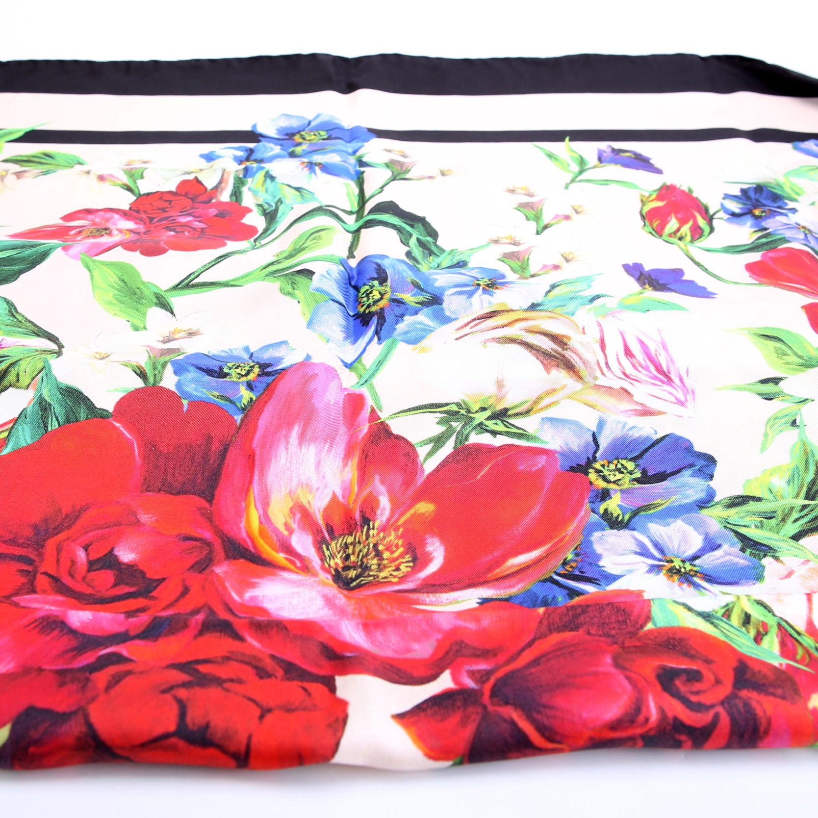 Floral Floulard Silk 90CM Scarf Black/Multicolor