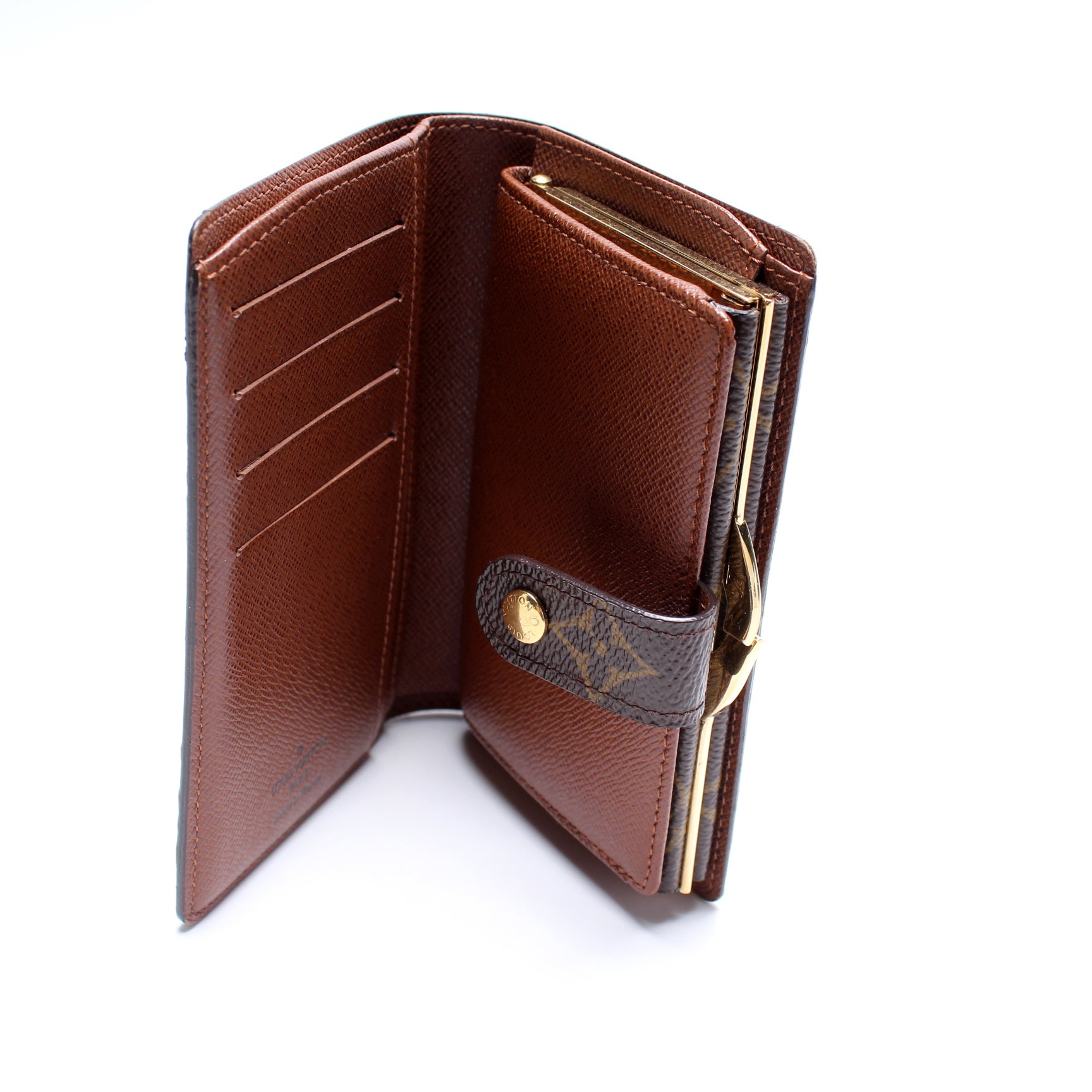 This pre-owned Louis Vuitton French Purse Wallet is guaranteed 100% authentic. The exterior is in the classic Louis Vuitton Monogram coated canvas.