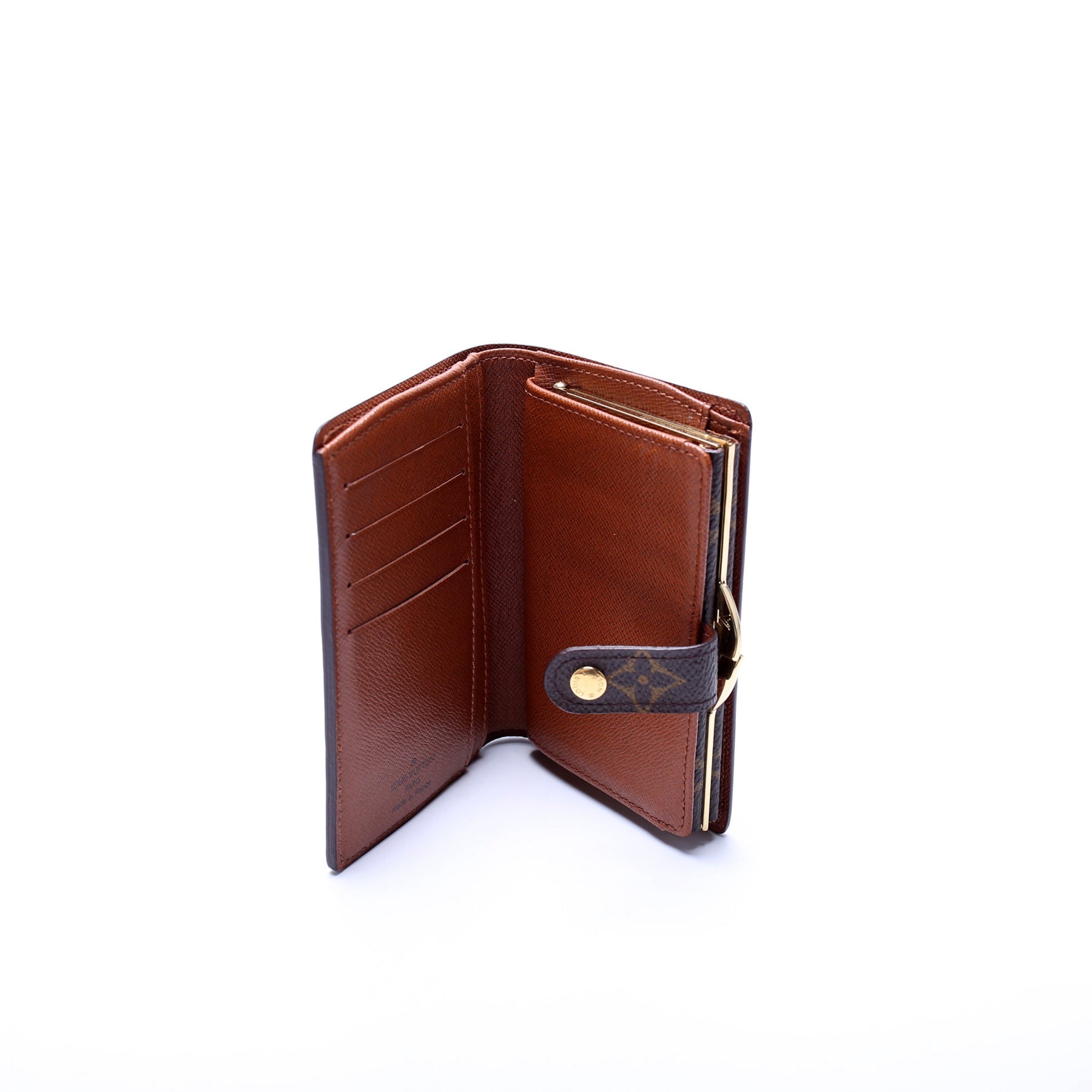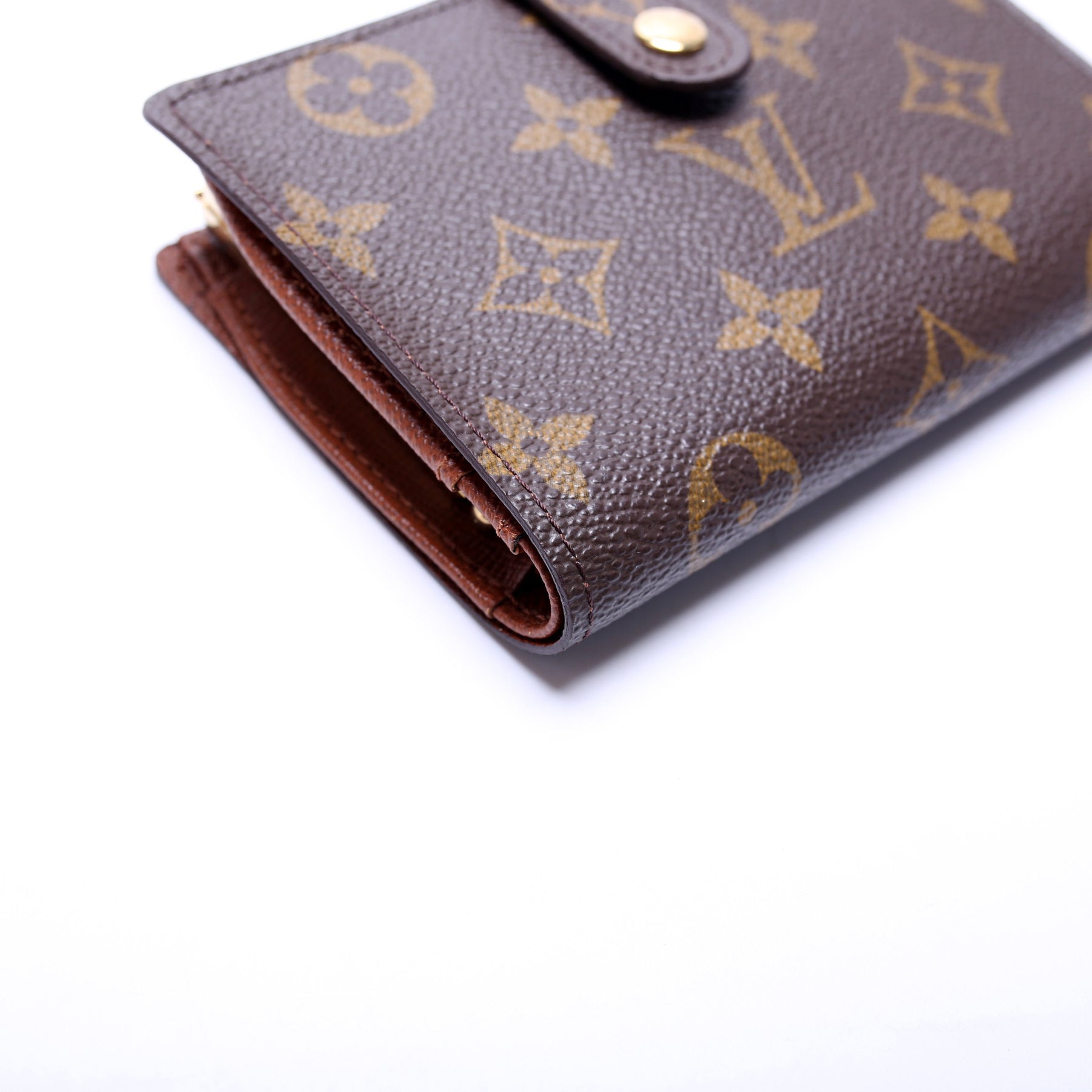 This pre-owned Louis Vuitton French Purse Wallet is guaranteed 100% authentic. The exterior is in the classic Louis Vuitton Monogram coated canvas.