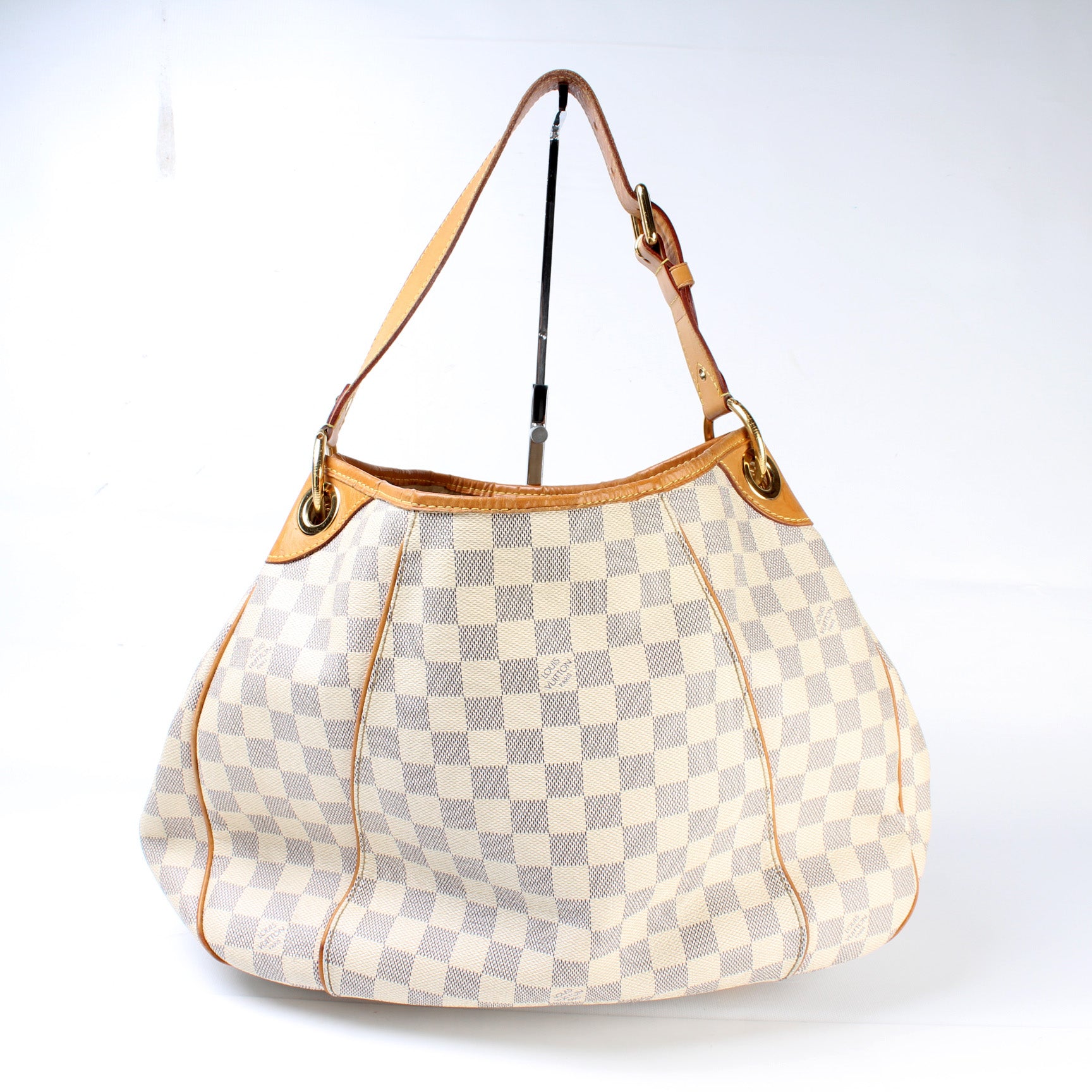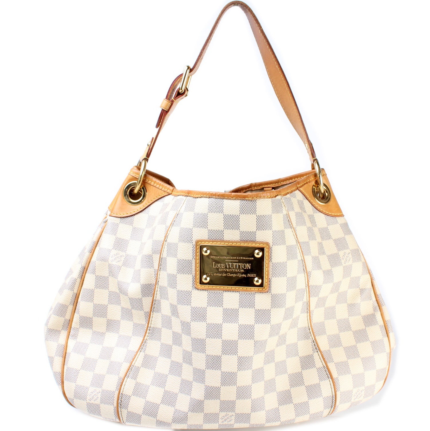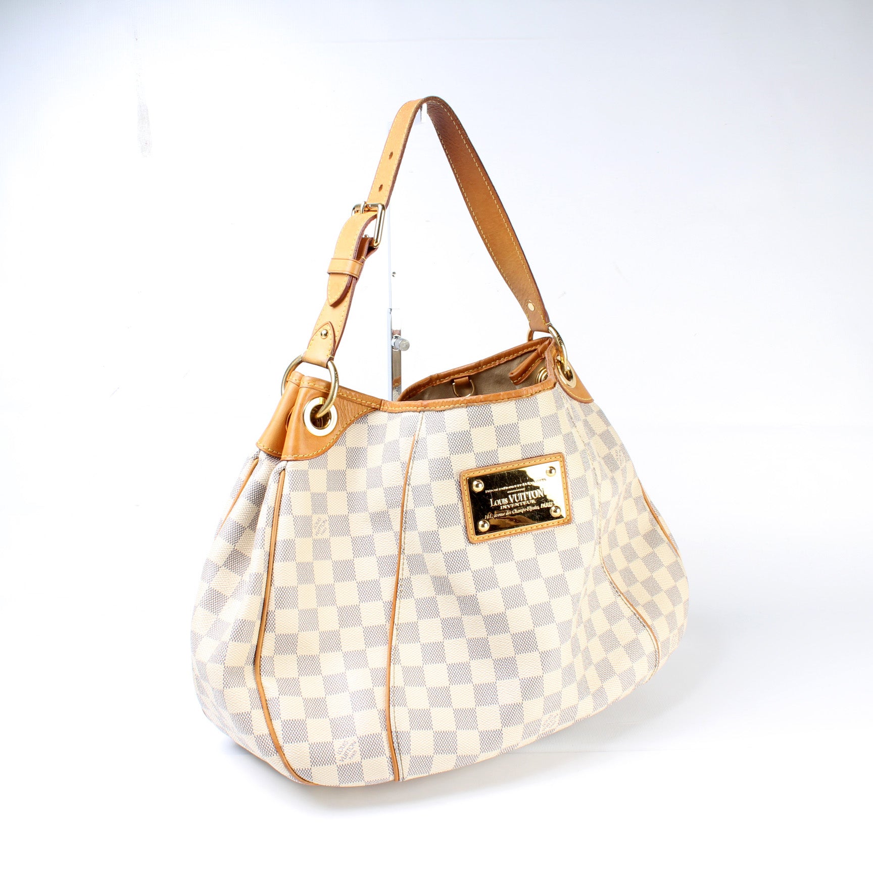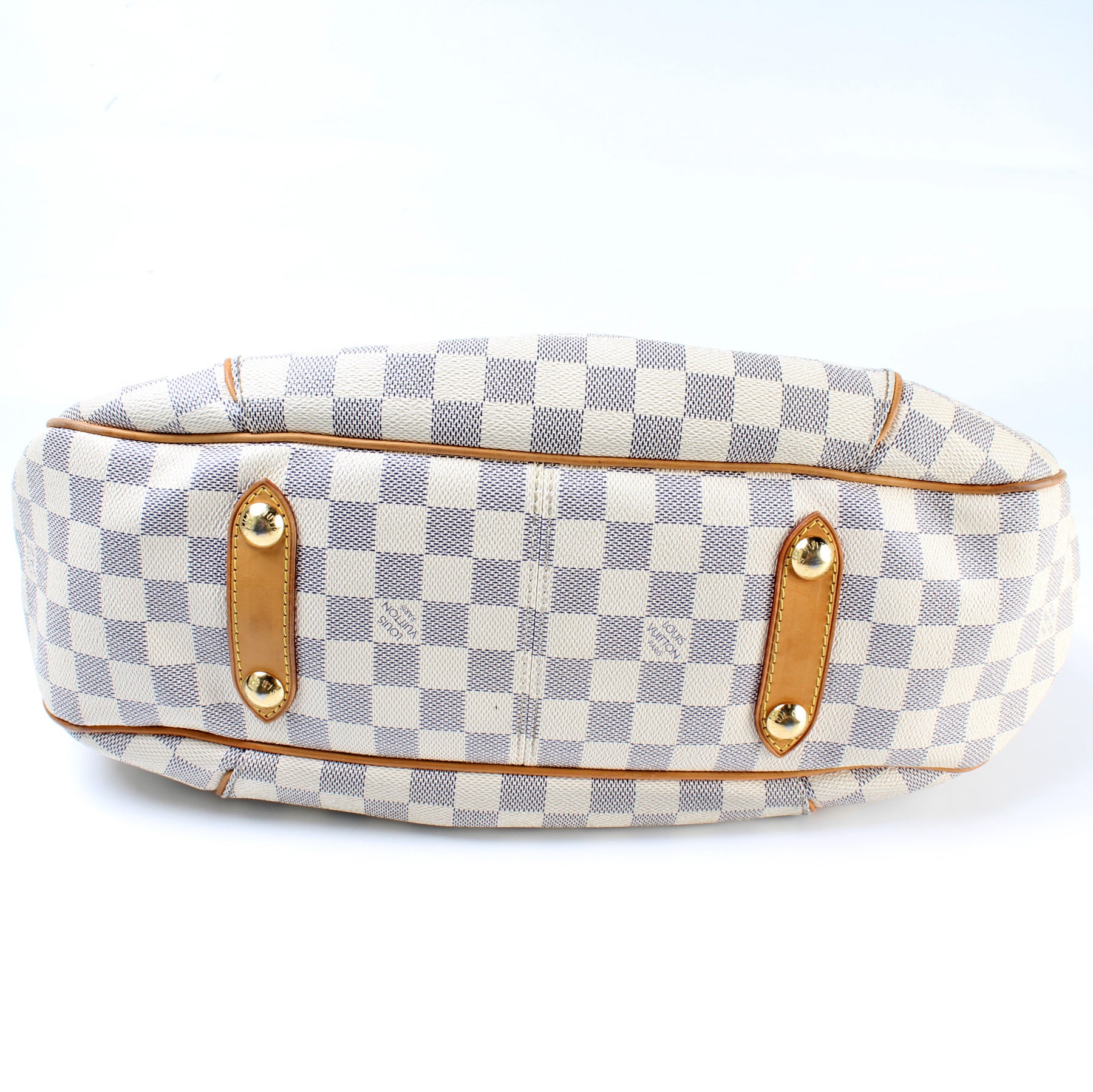 This pre-owned Louis Vuitton Galliera PM is guaranteed 100% authentic. The exterior is in the classic Louis Vuitton Damier Azur coated canvas.