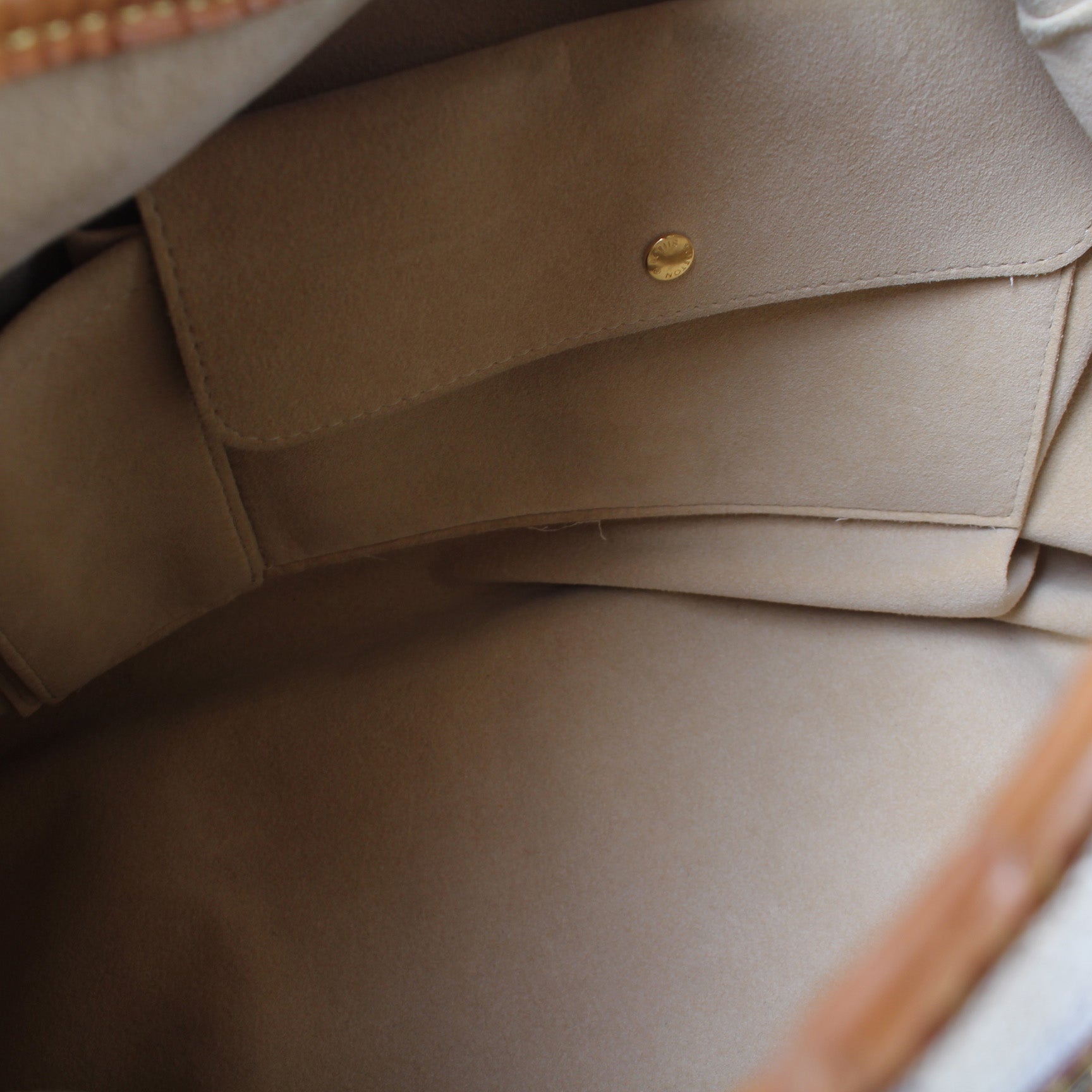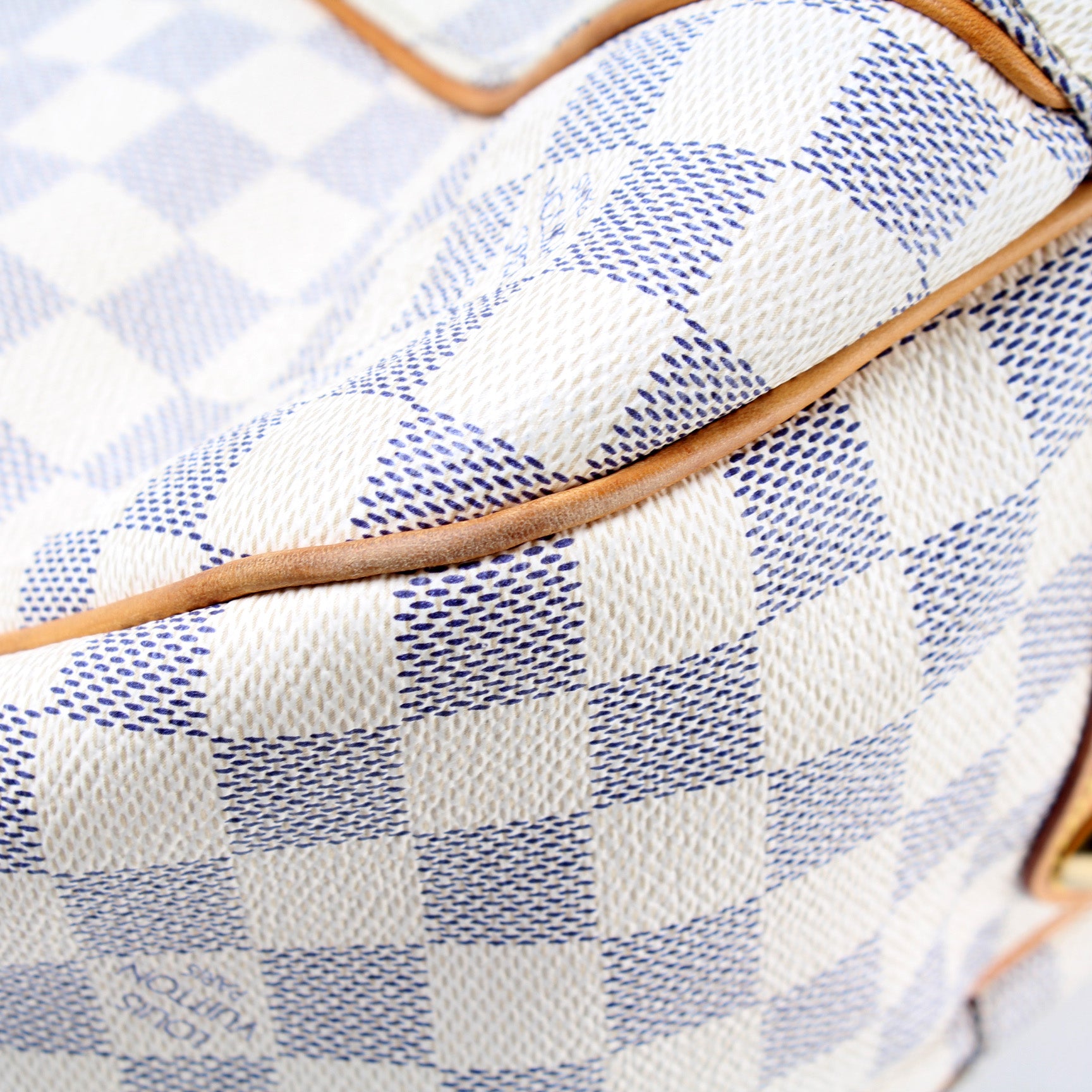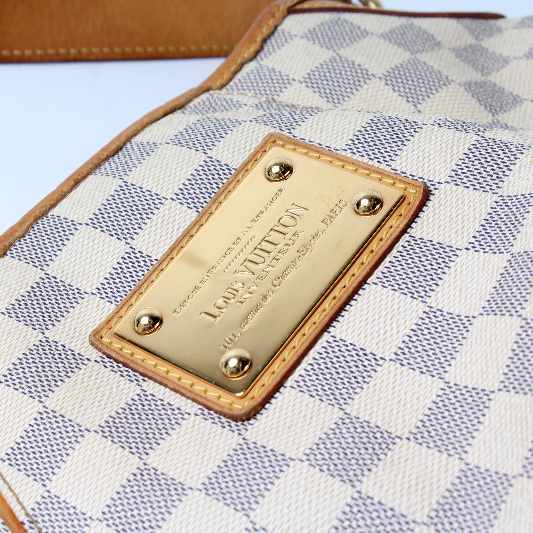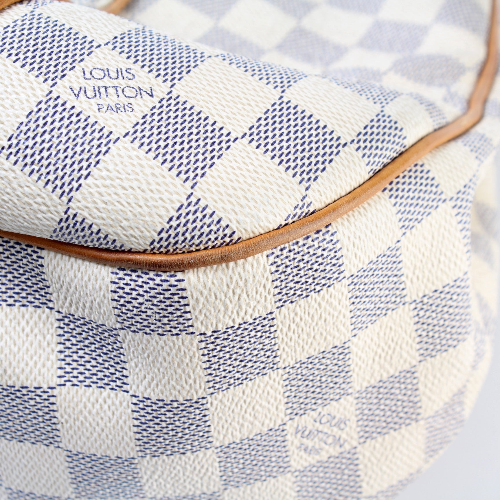 This pre-owned Louis Vuitton Galliera PM is guaranteed 100% authentic. The exterior is in the classic Louis Vuitton Damier Azur coated canvas.