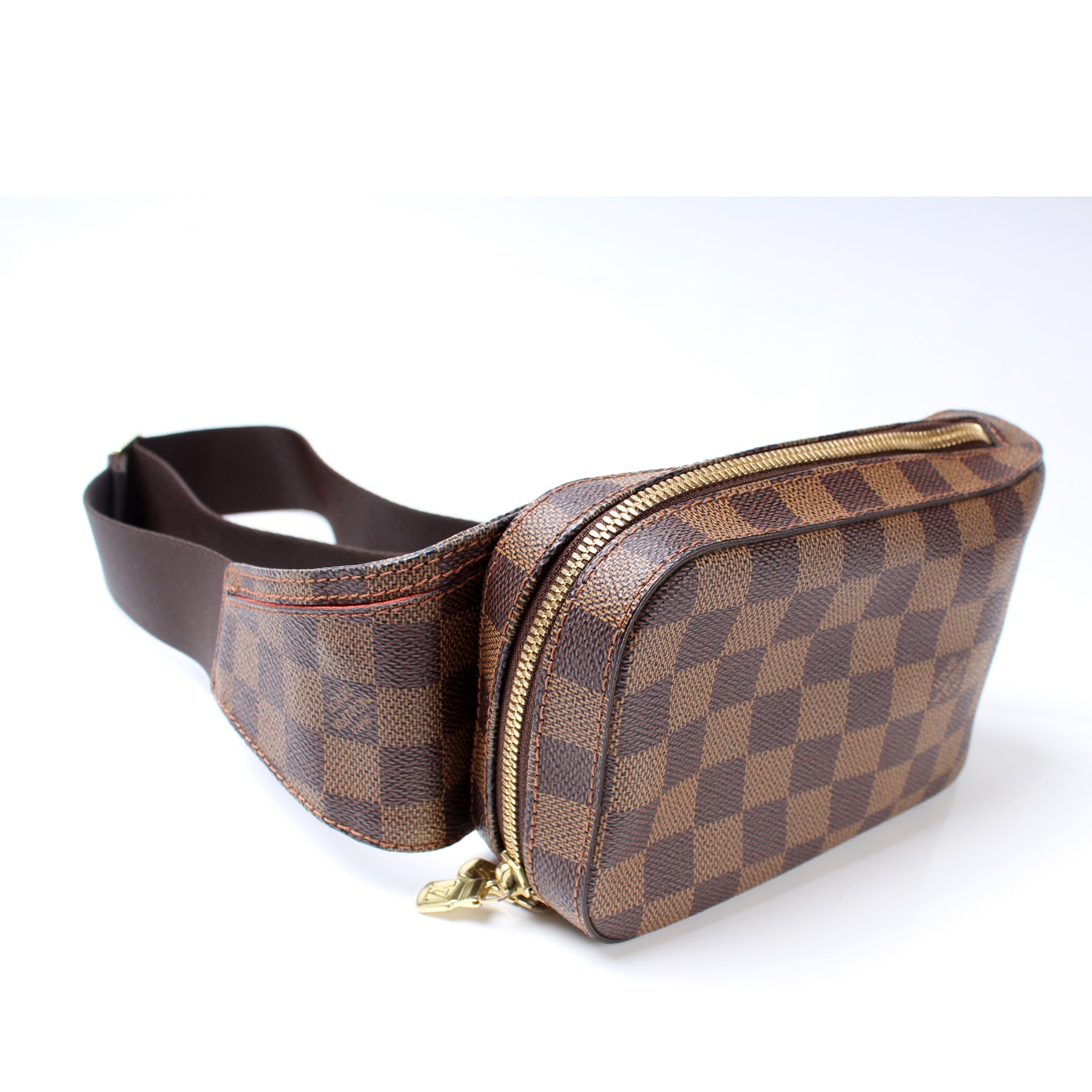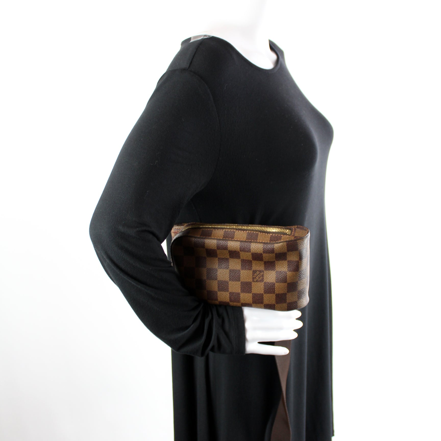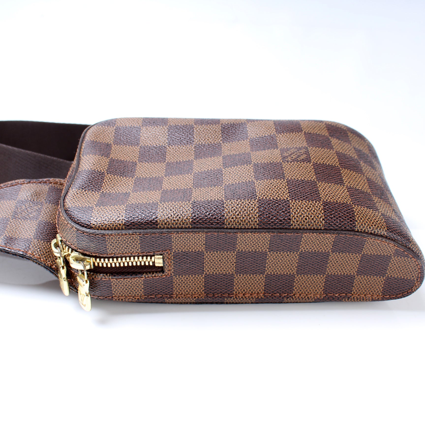This pre-owned Louis Vuitton Geronimos is guaranteed 100% authentic. The exterior is in the classic Louis Vuitton Damier Ebene coated canvas.