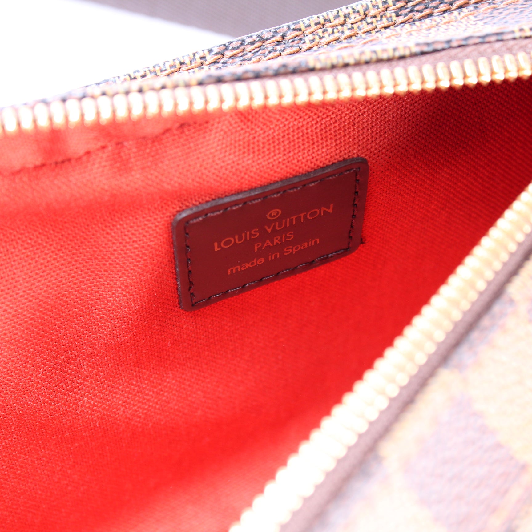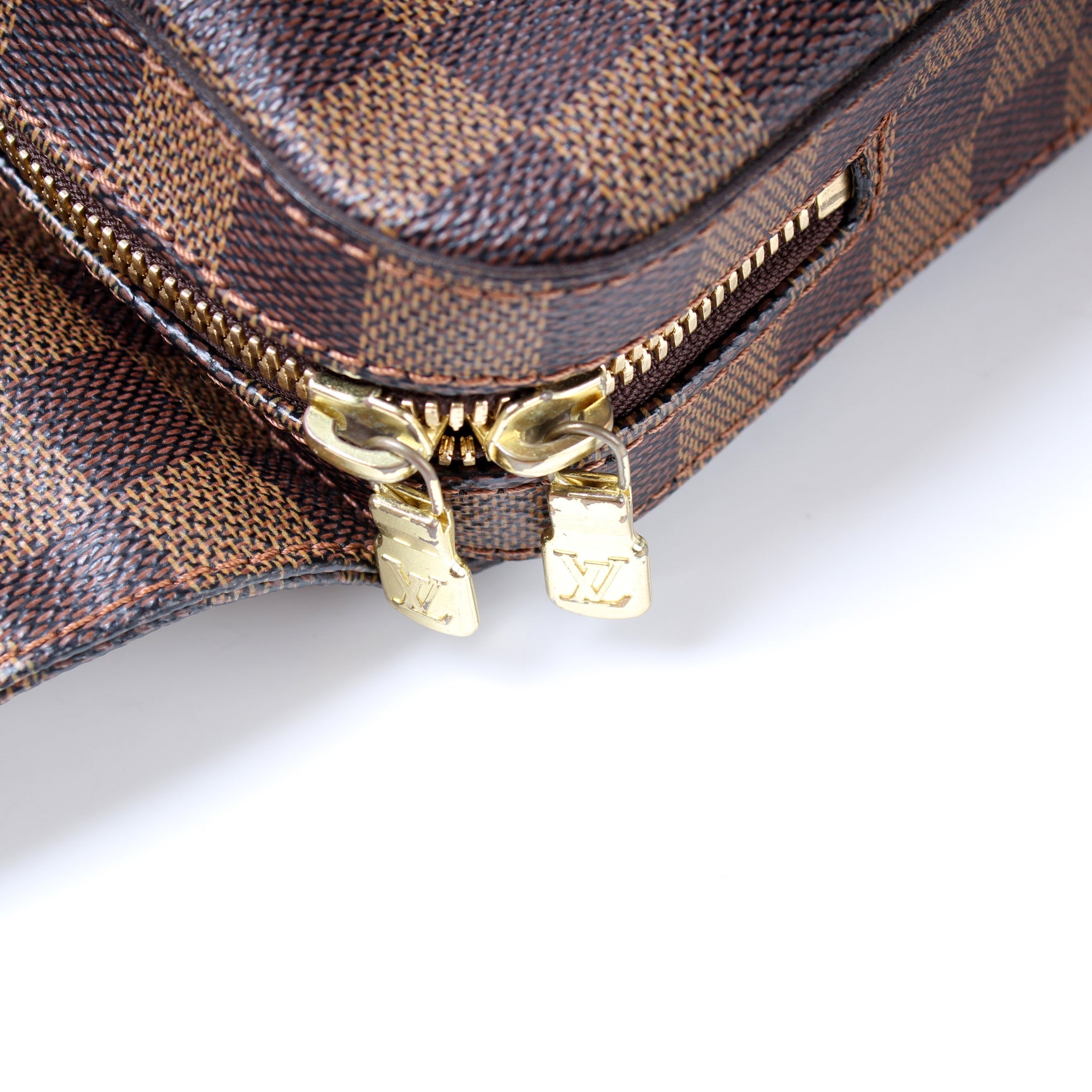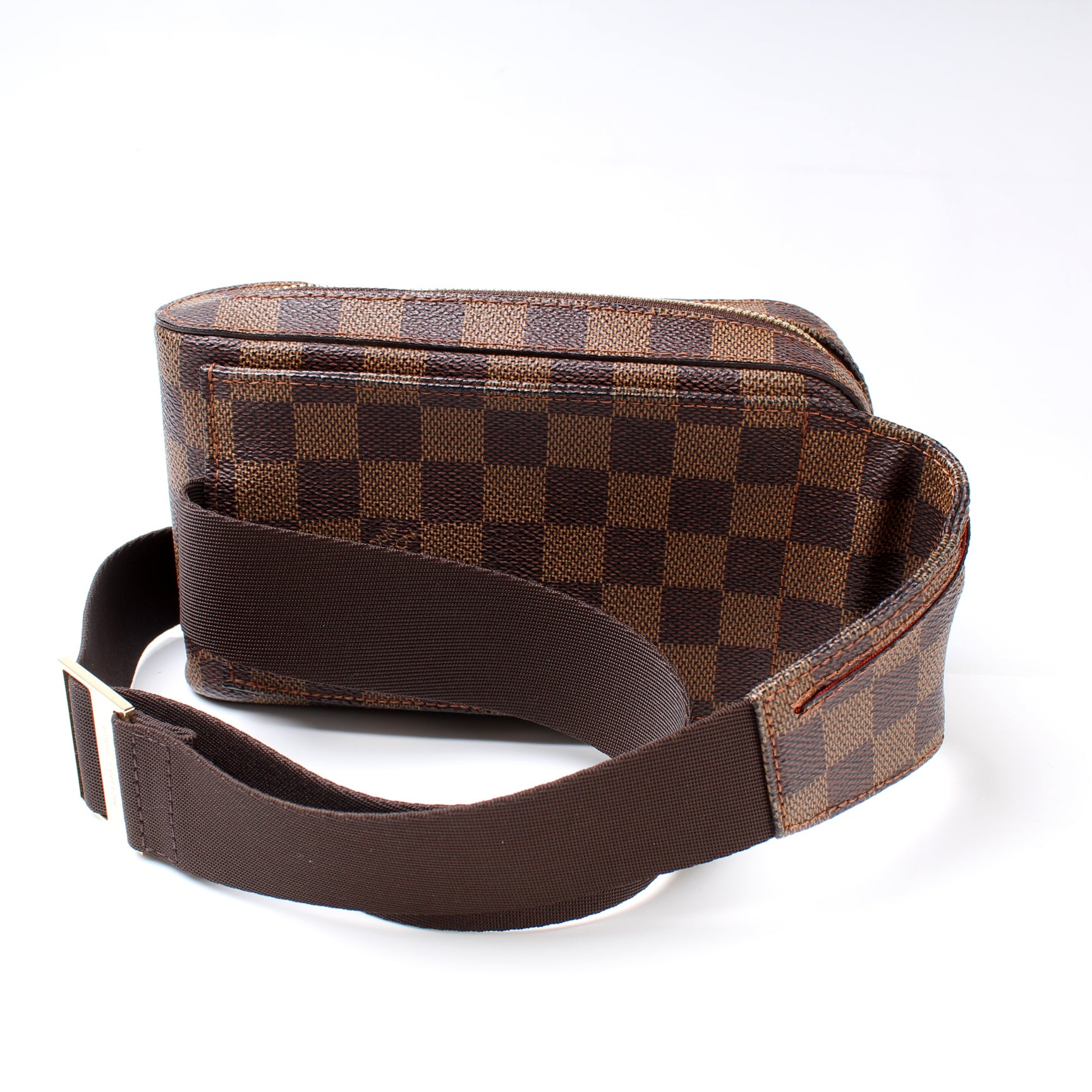 This pre-owned Louis Vuitton Geronimos is guaranteed 100% authentic. The exterior is in the classic Louis Vuitton Damier Ebene coated canvas.