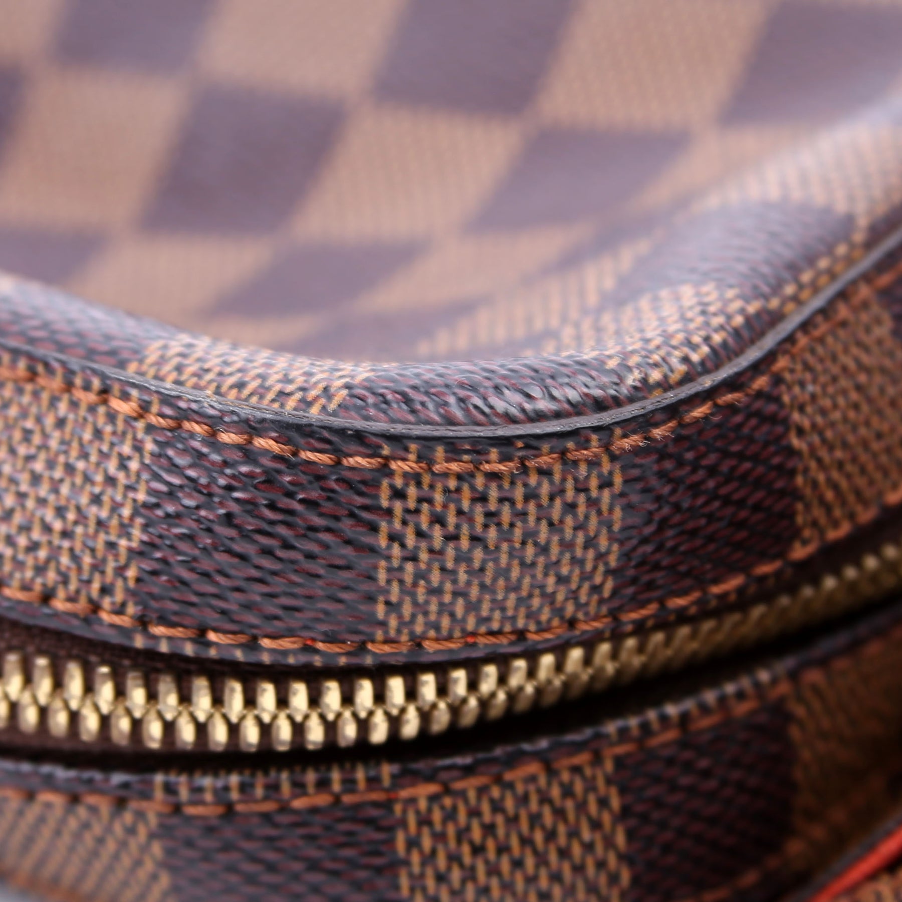 This pre-owned Louis Vuitton Geronimos is guaranteed 100% authentic. The exterior is in the classic Louis Vuitton Damier Ebene coated canvas.
