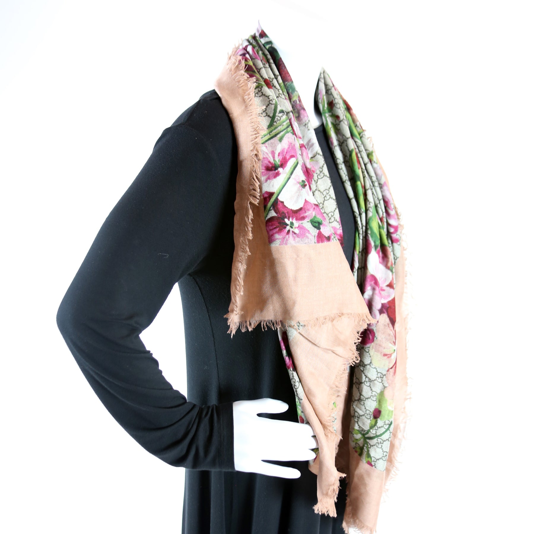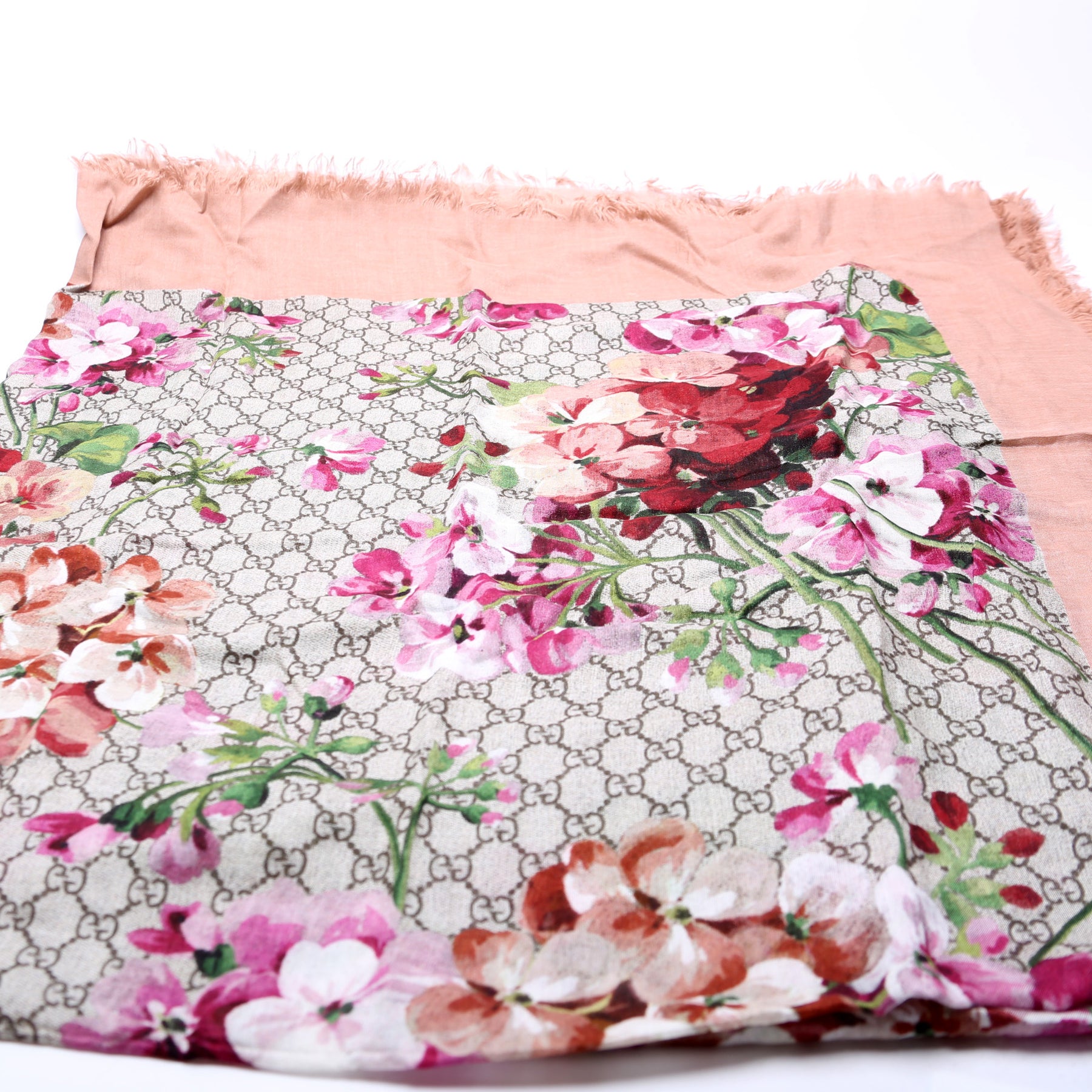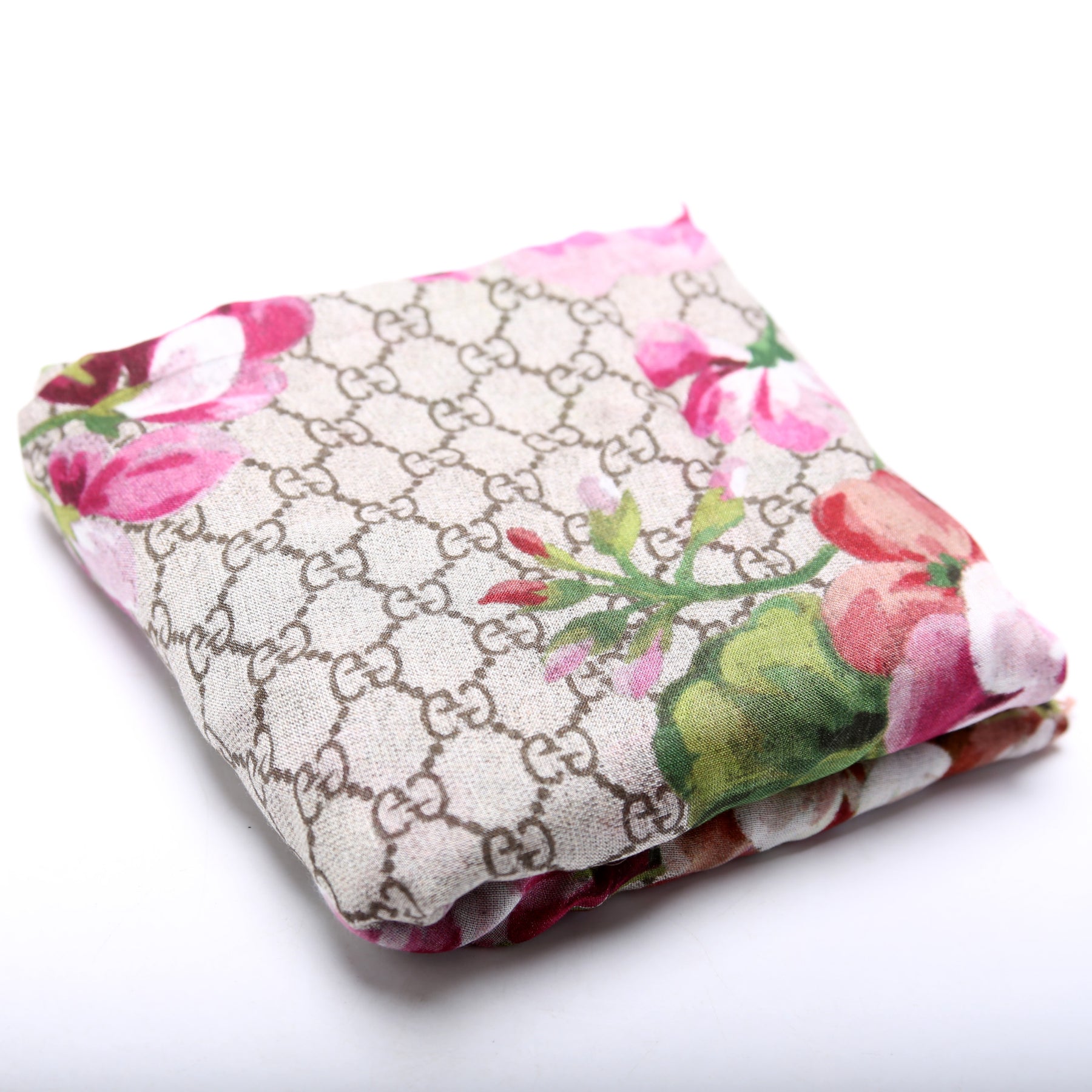 This pre-owned Gucci GG Blooms Silk Scarf is guaranteed 100% authentic.