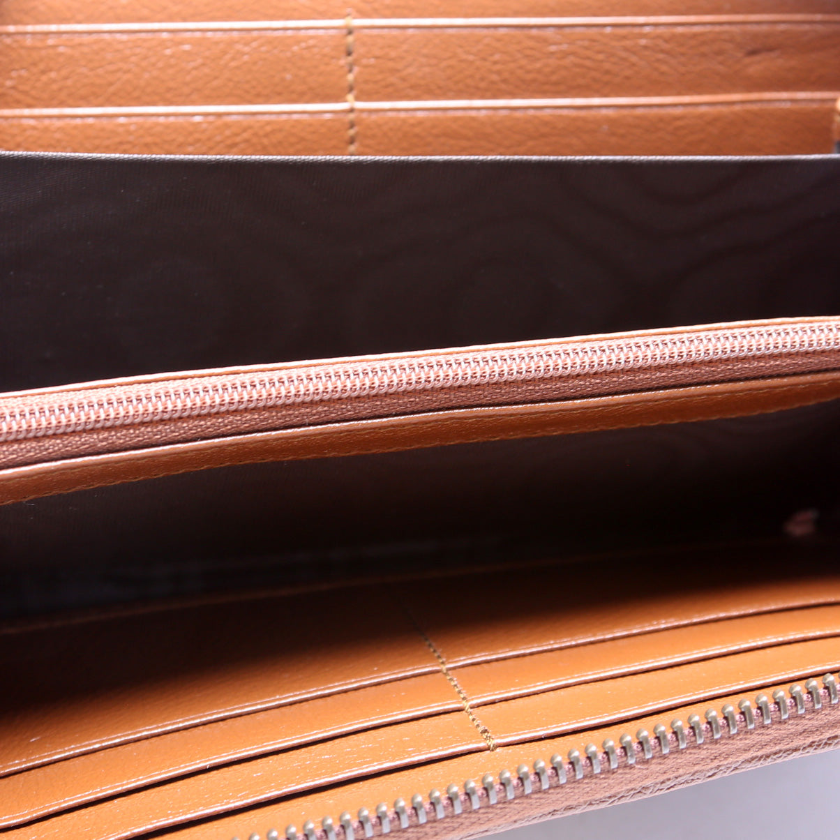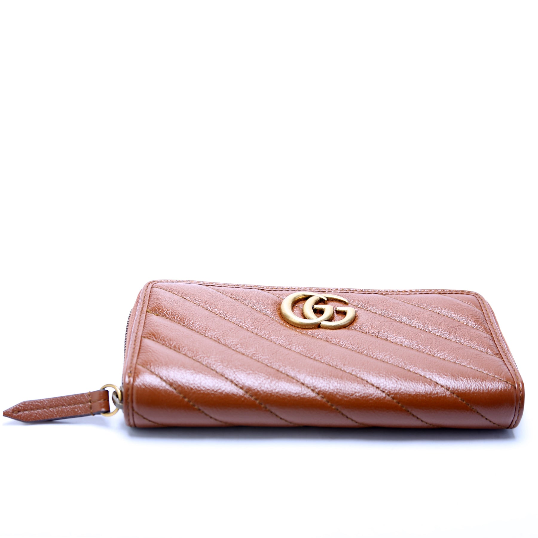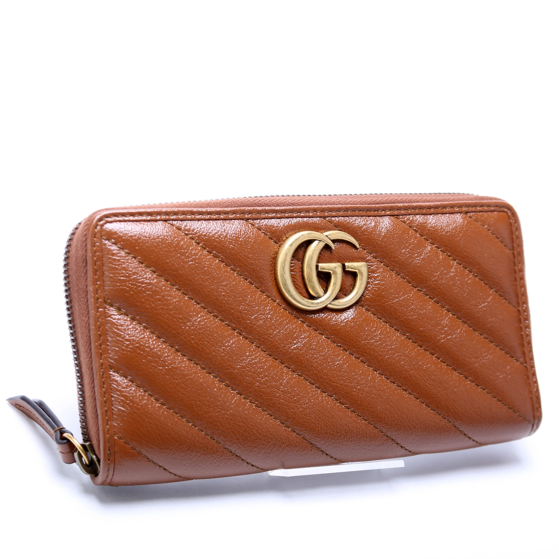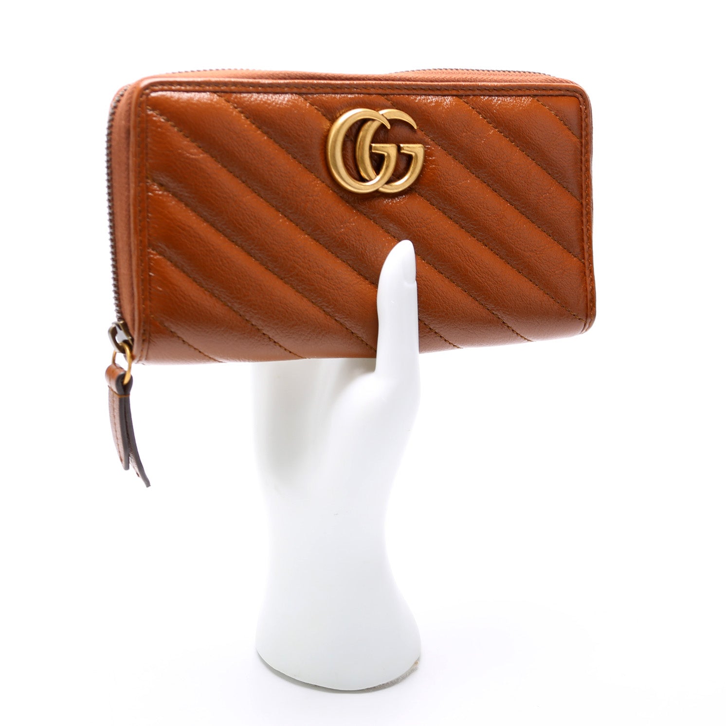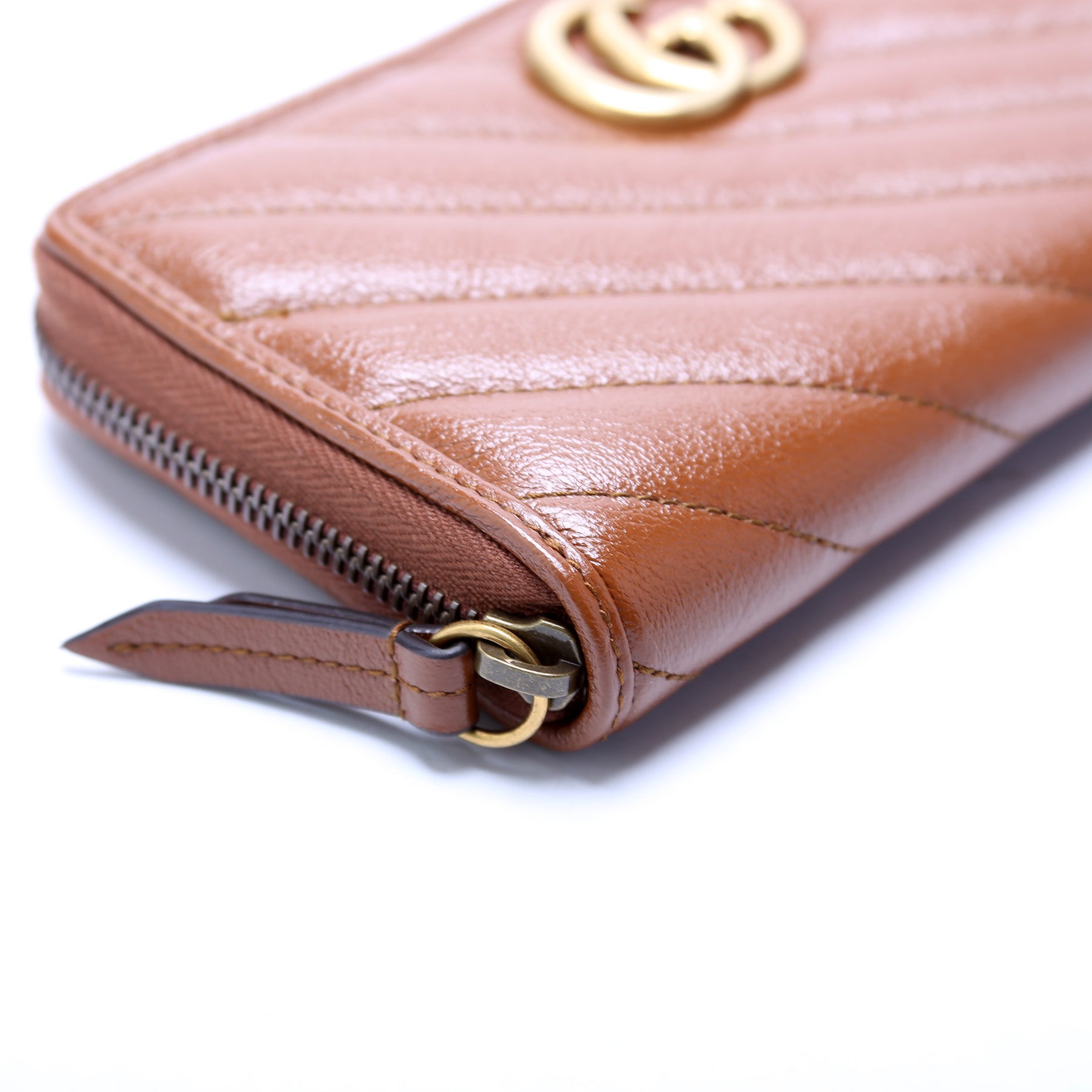 This pre-owned Gucci GG Zip Wallet is guaranteed 100% authentic. The exterior is in the classic Gucci Marmont leather.