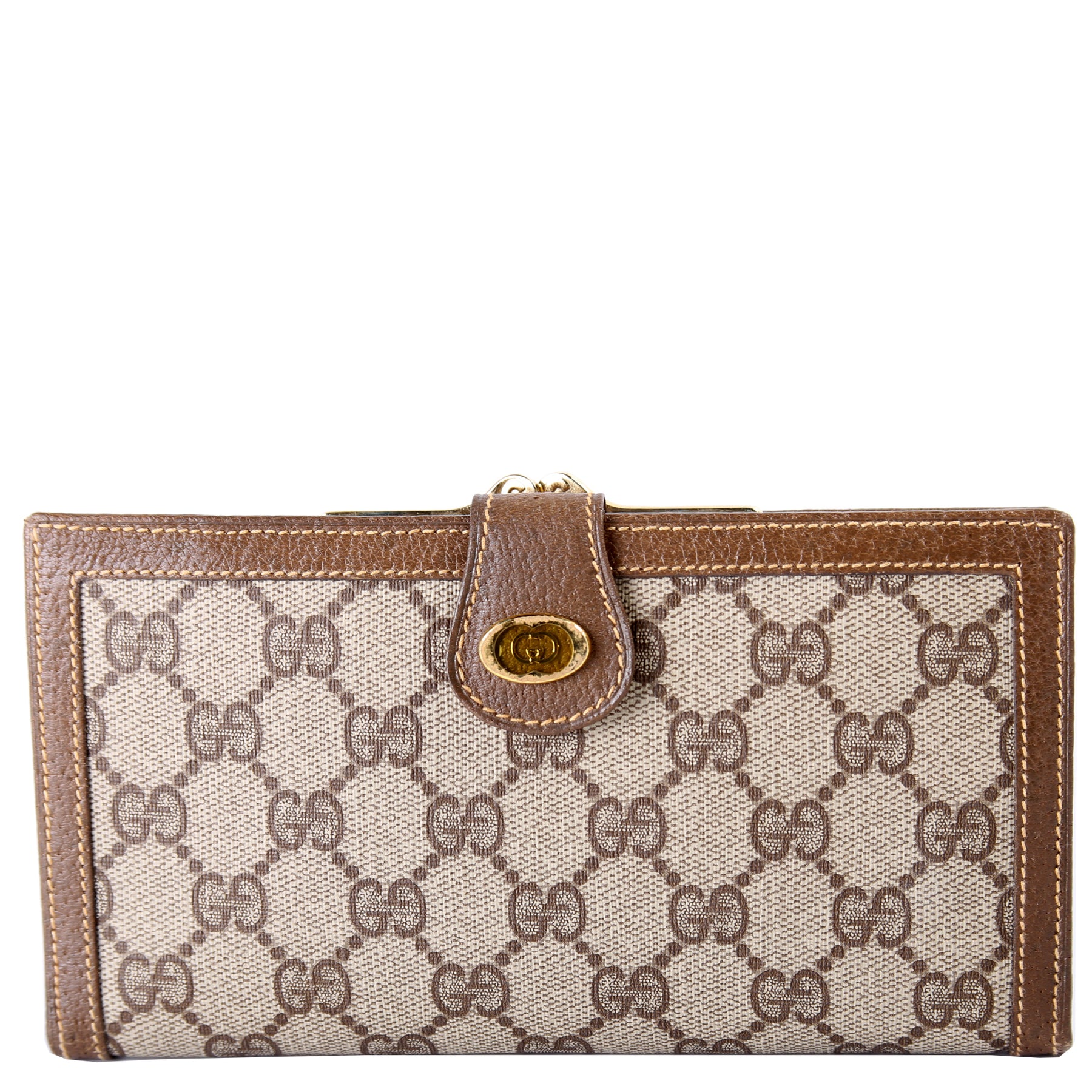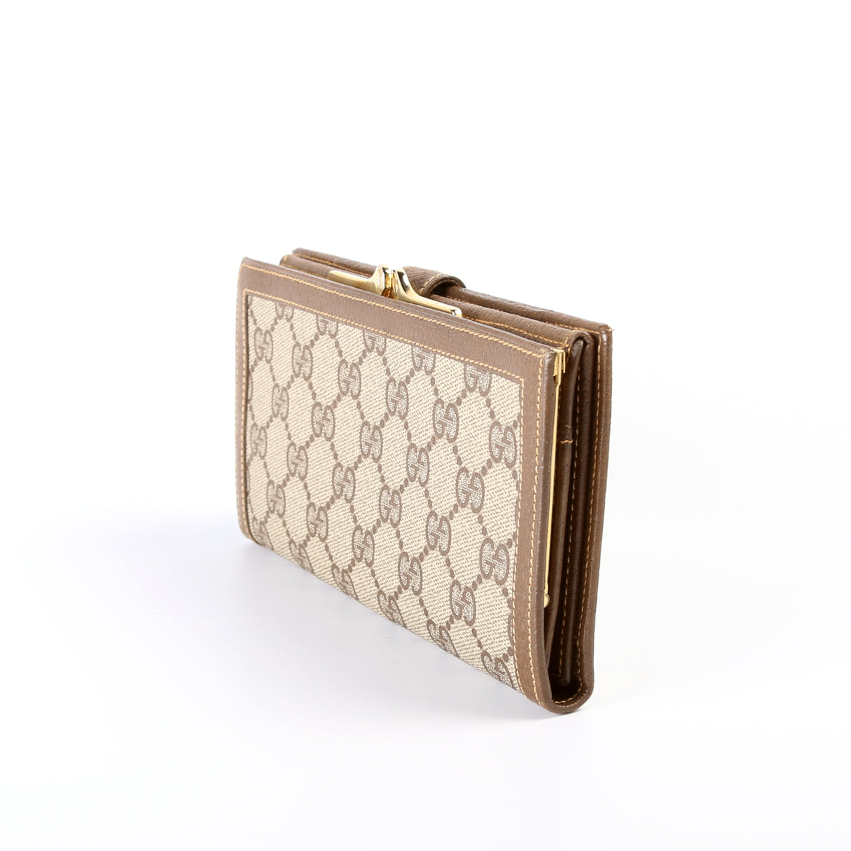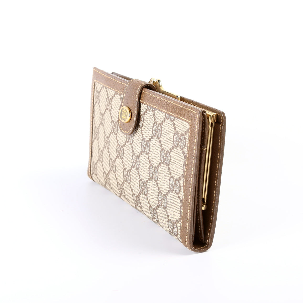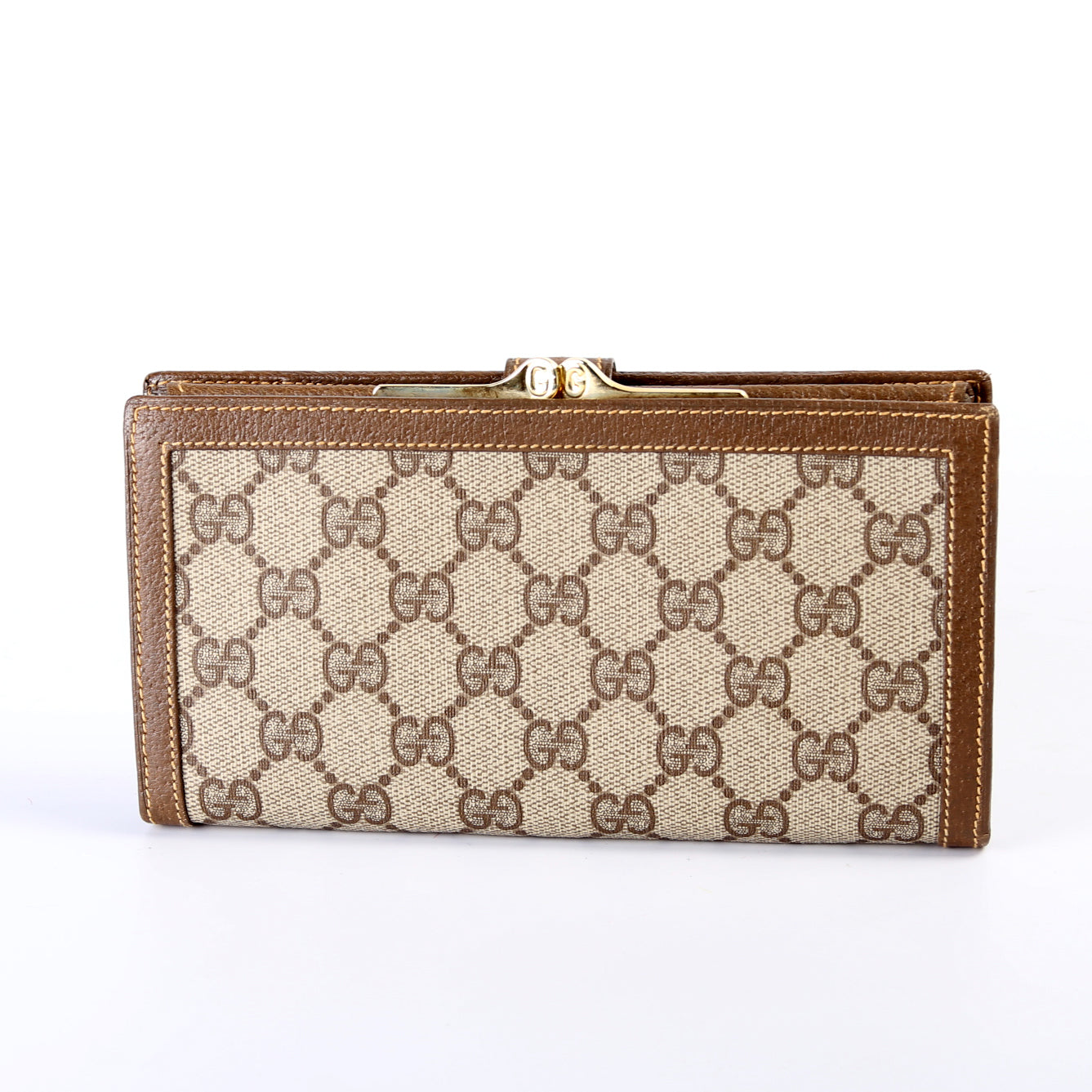 This pre-owned Gucci Vintage Trifold Continental Wallet is guaranteed 100% authentic. The exterior is in the classic Gucci GG Supreme coated canvas.