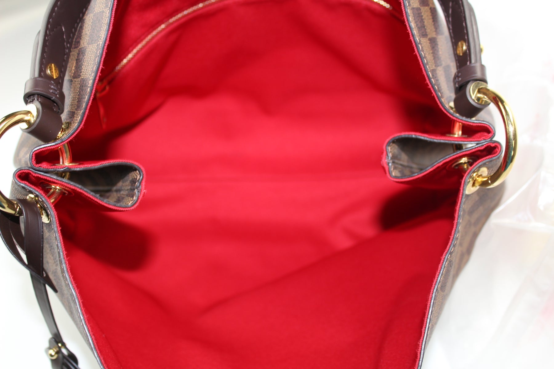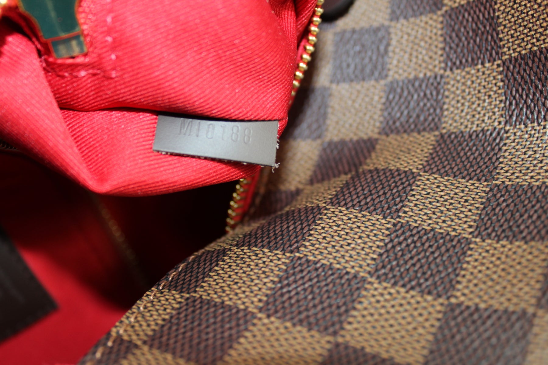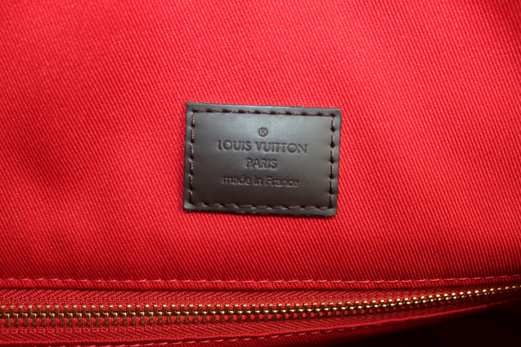 This pre-owned Louis Vuitton Gracefull MM is guaranteed 100% authentic. The exterior is in the classic Damier Ebene coated canvas.