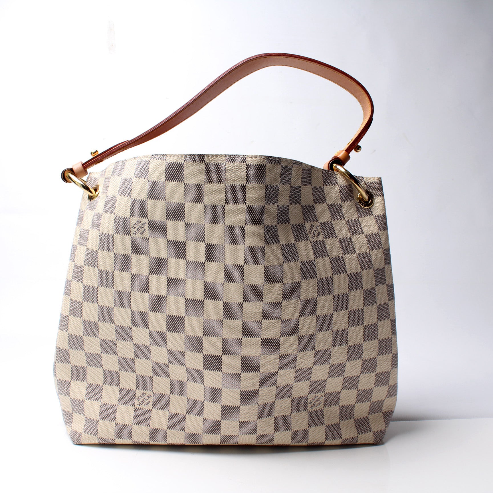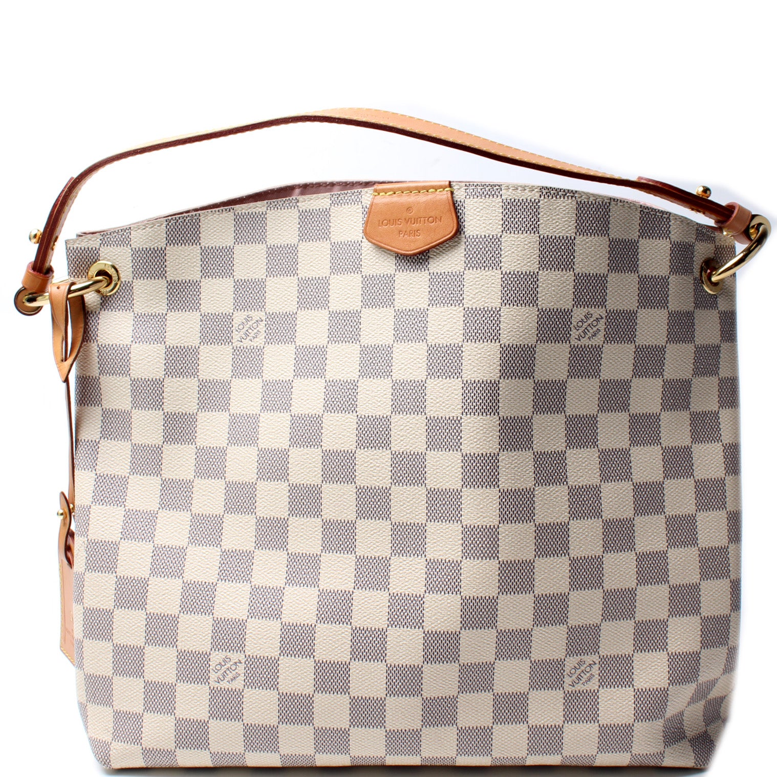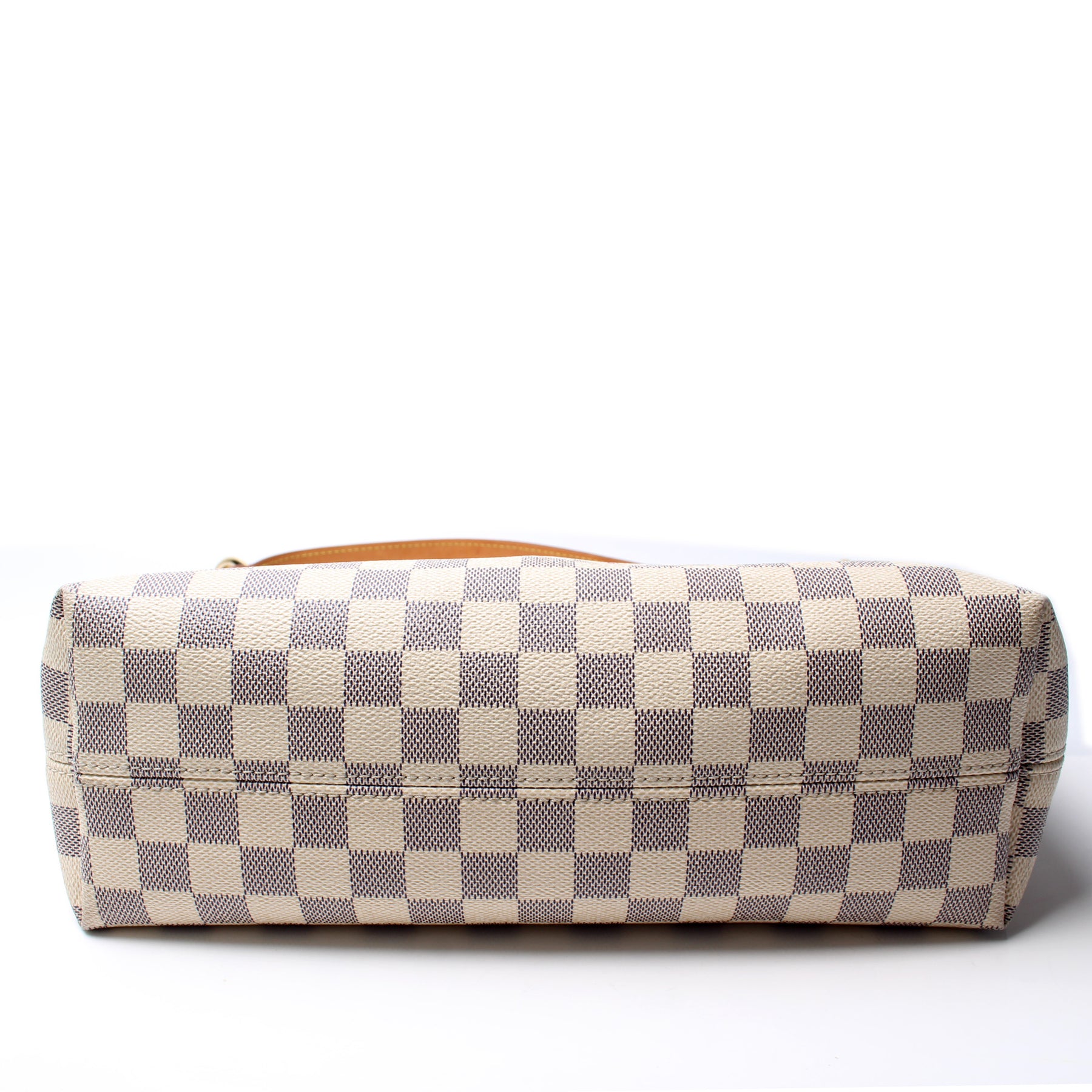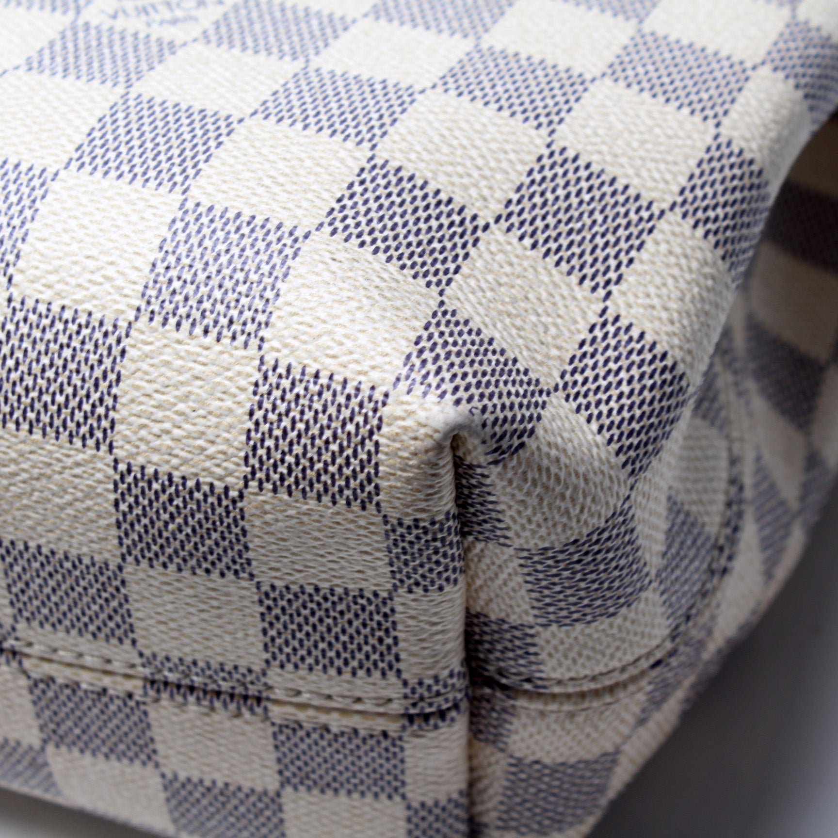 This pre-owned Louis Vuitton Graceful PM is guaranteed 100% authentic. The exterior is in the classic Louis Vuitton Damier Azur coated canvas.