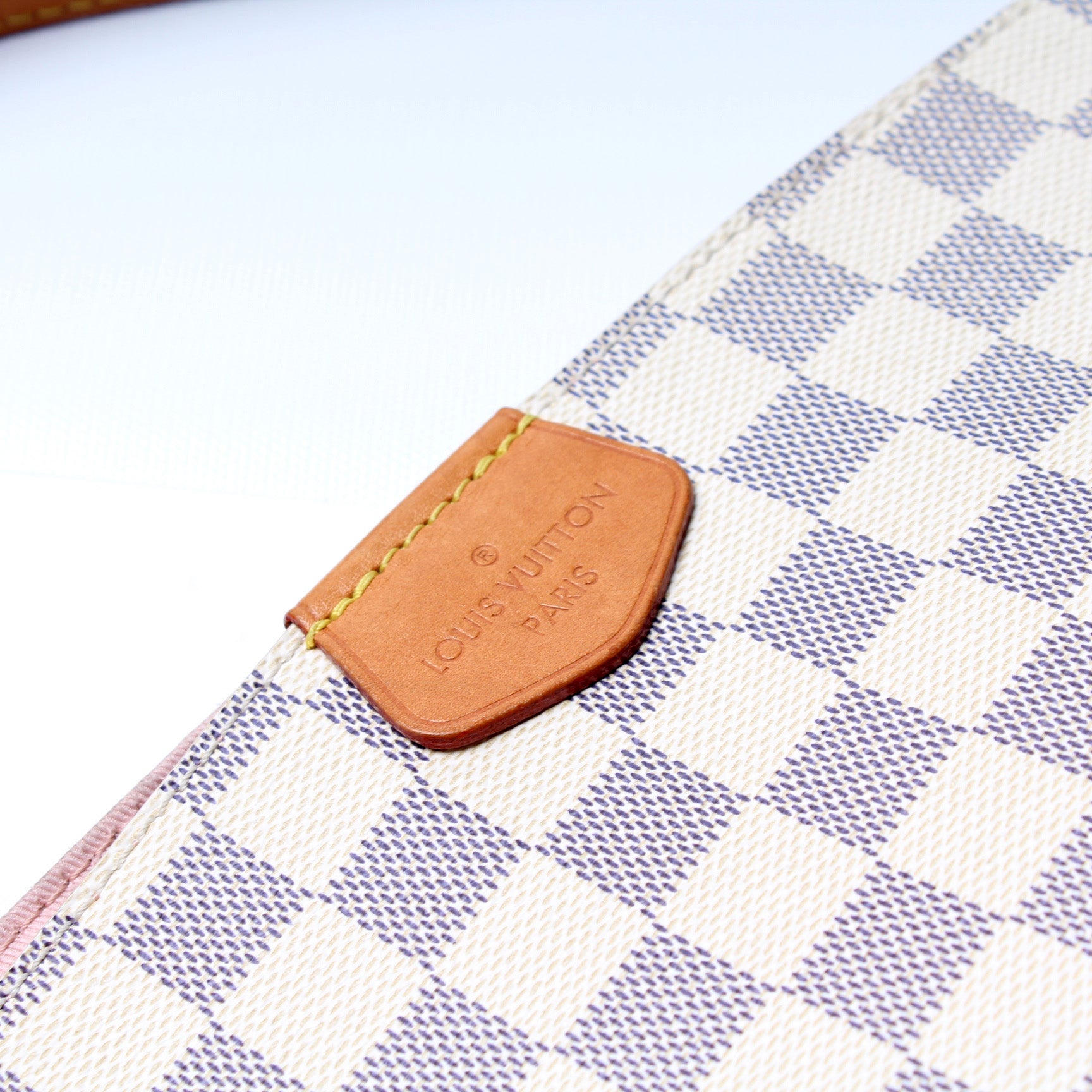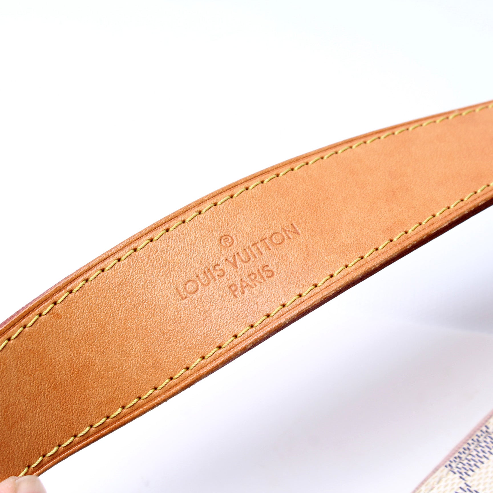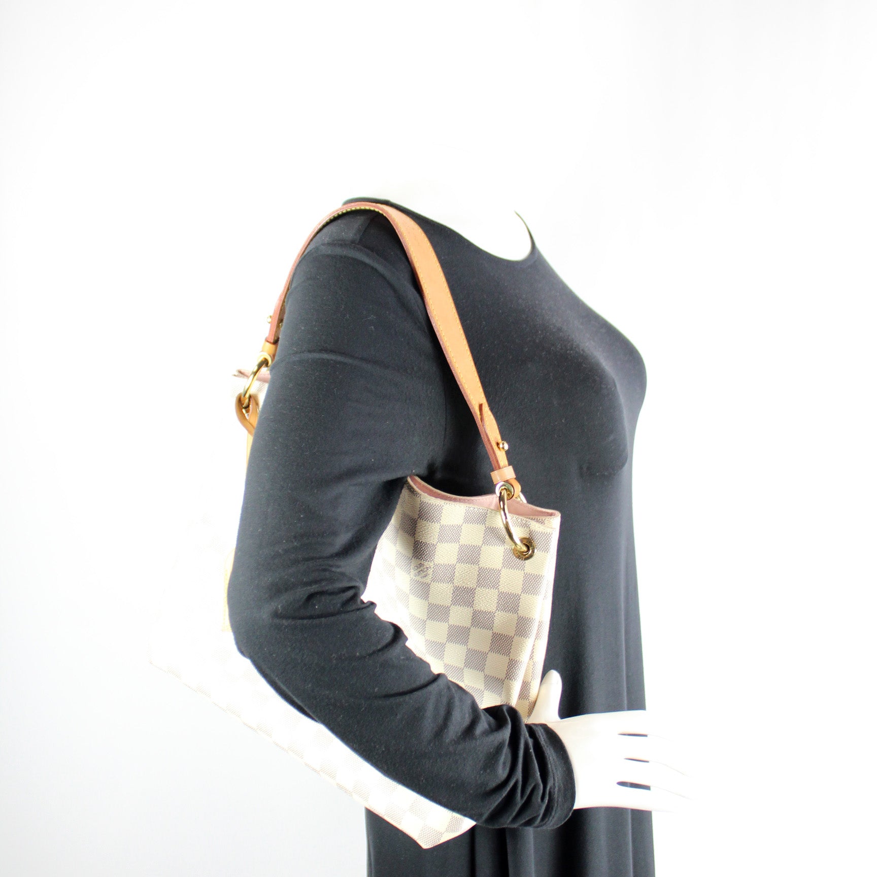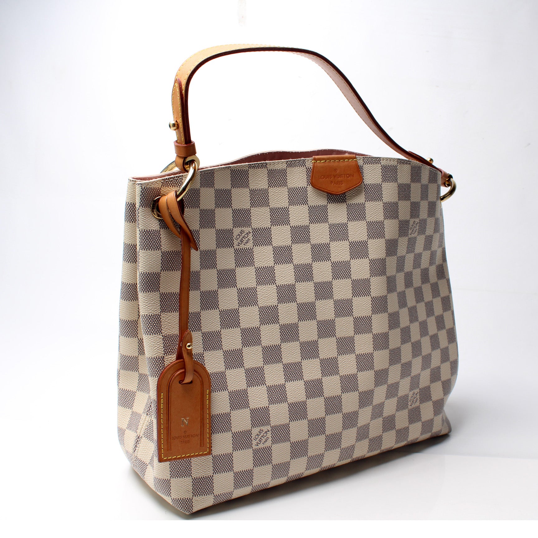 This pre-owned Louis Vuitton Graceful PM is guaranteed 100% authentic. The exterior is in the classic Louis Vuitton Damier Azur coated canvas.