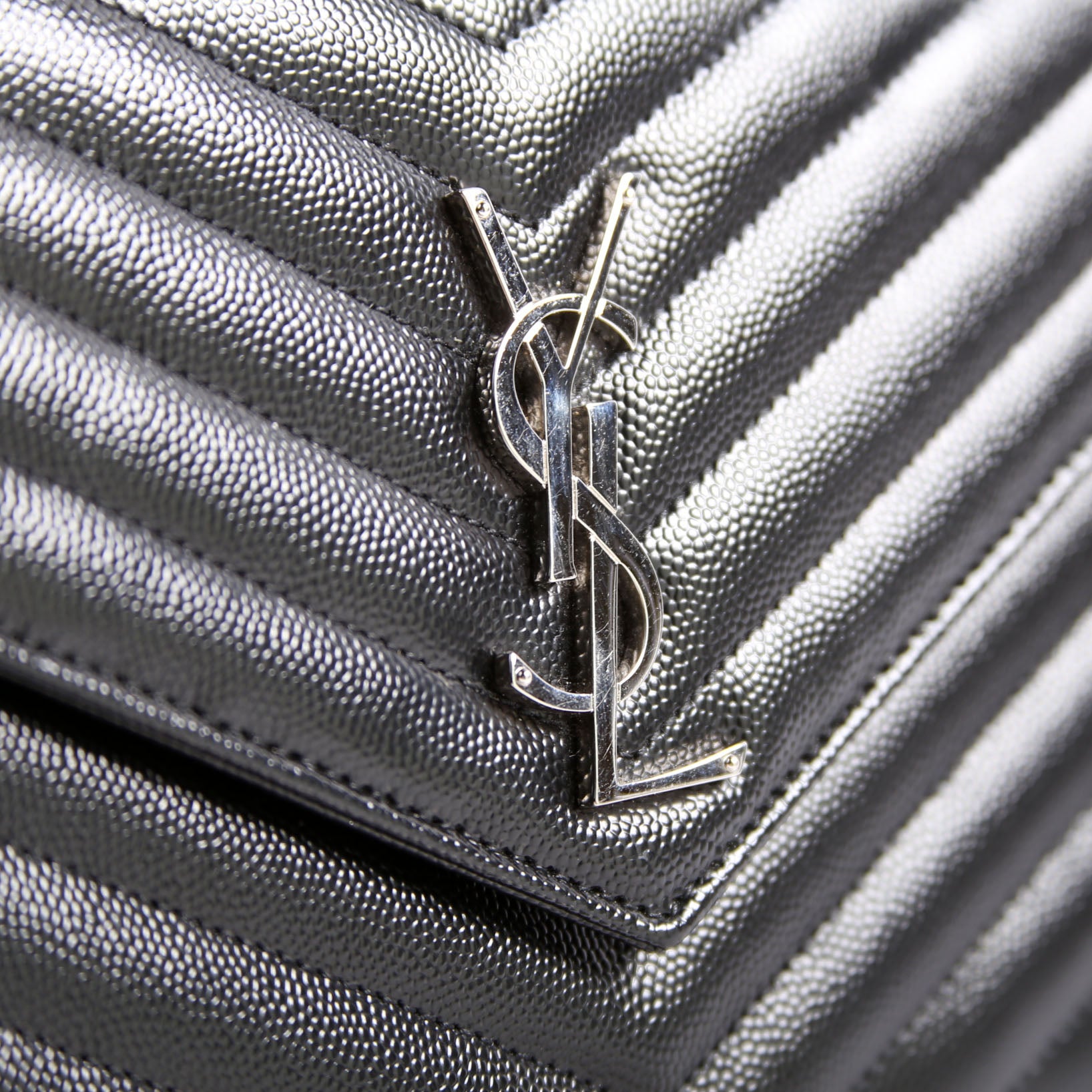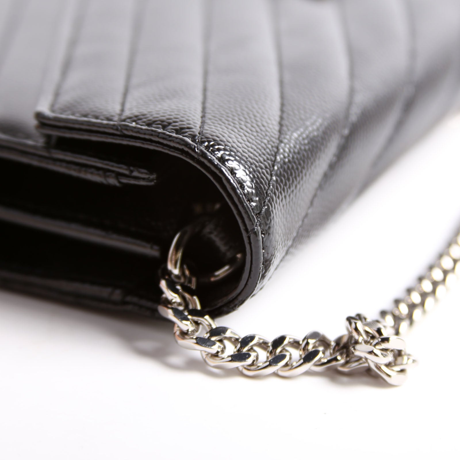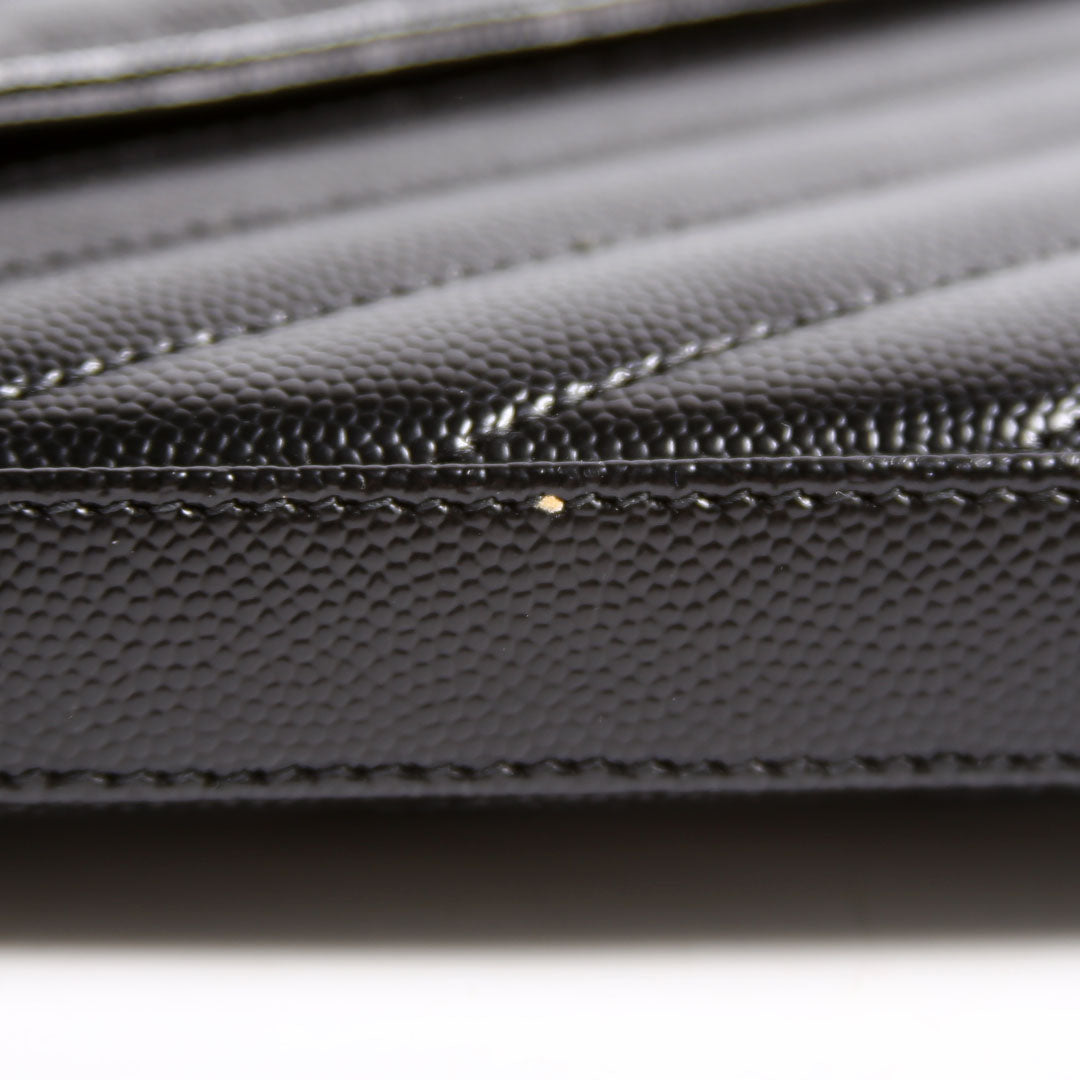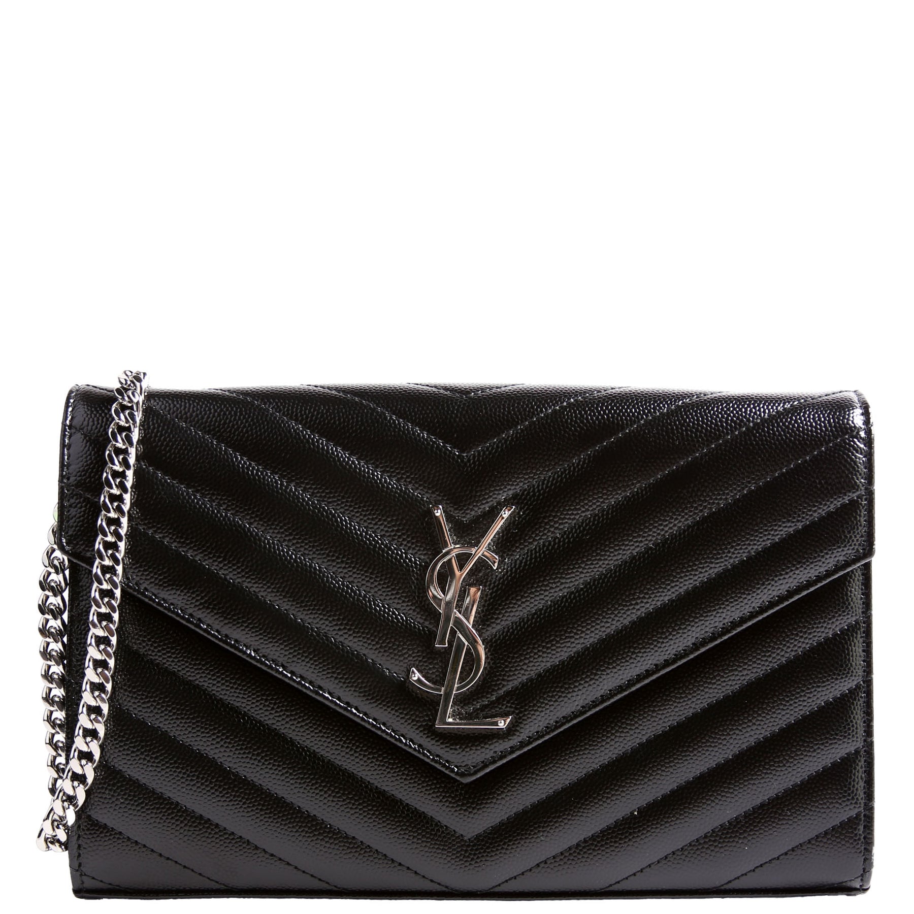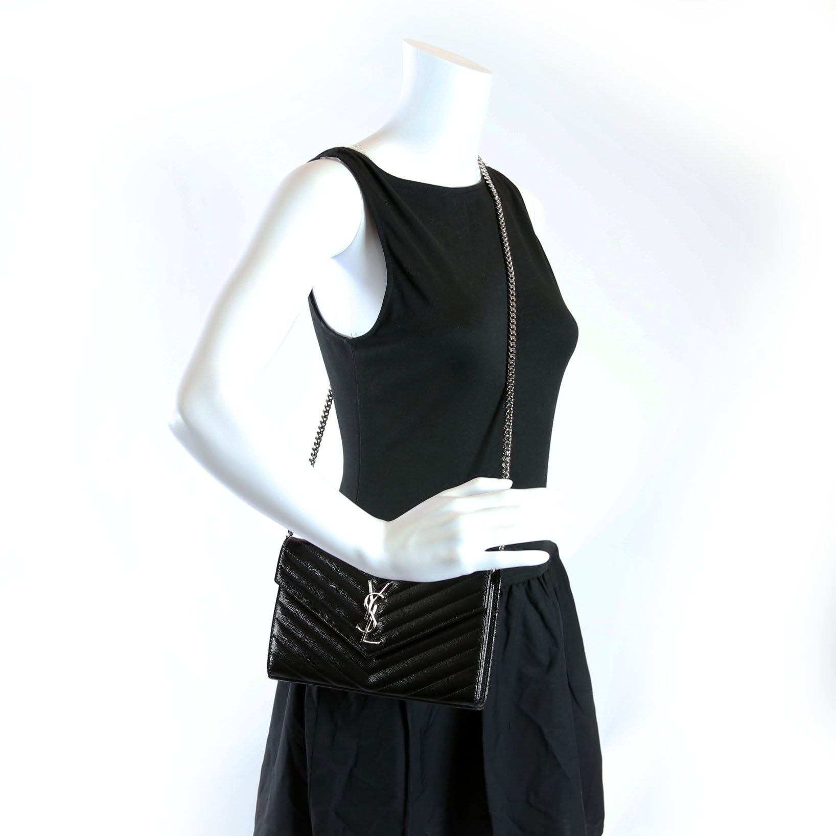 This pre-owned Saint Laurent Grain De Chain Wallet is guaranteed 100% authentic. The exterior is in the classic Saint Laurent Grain De Poudre leather.