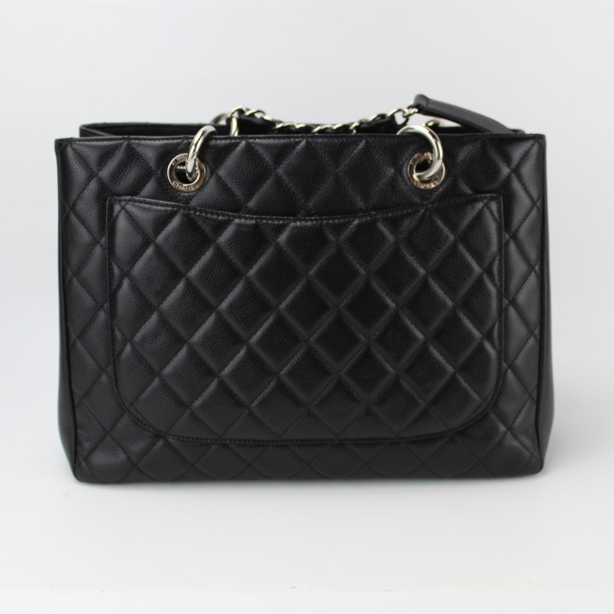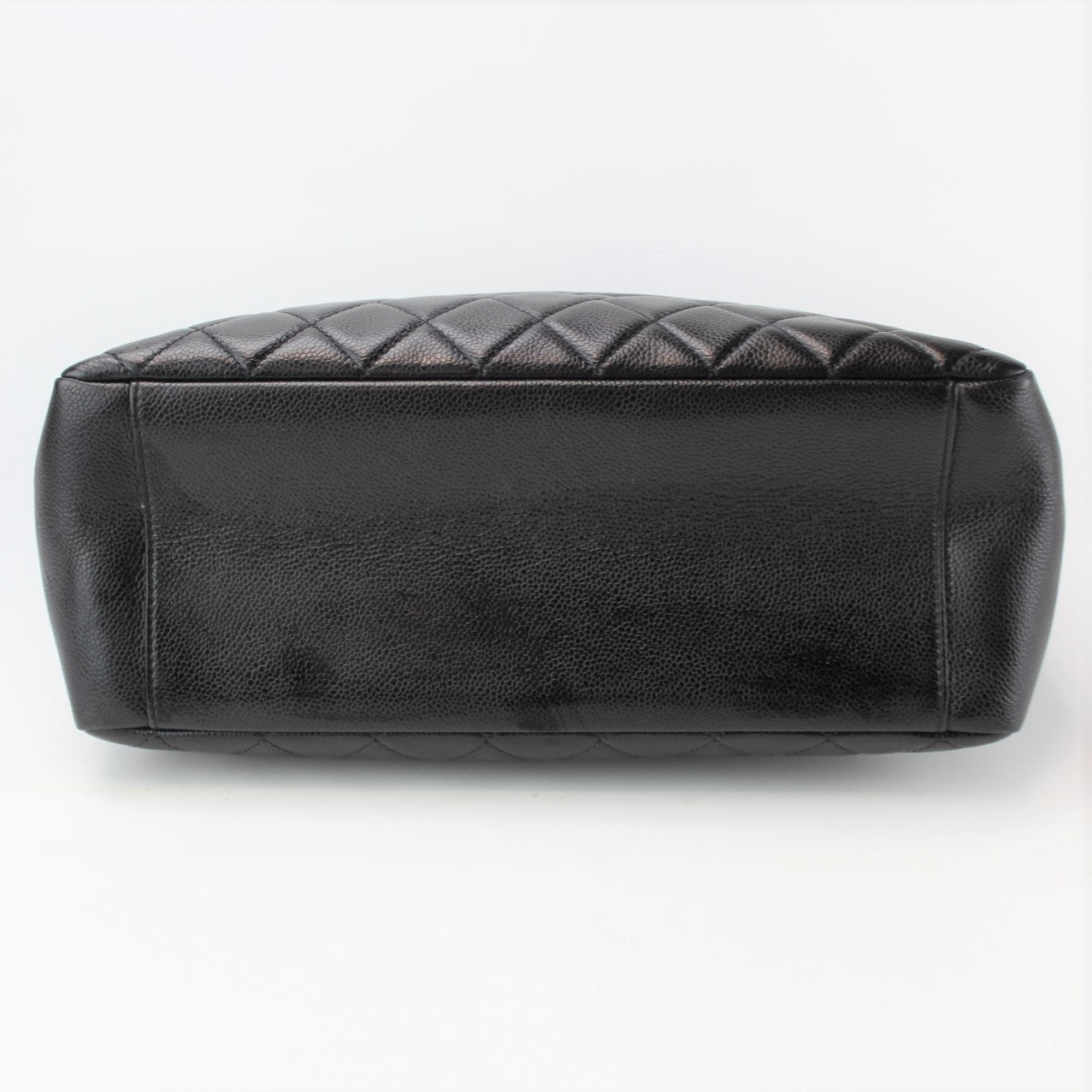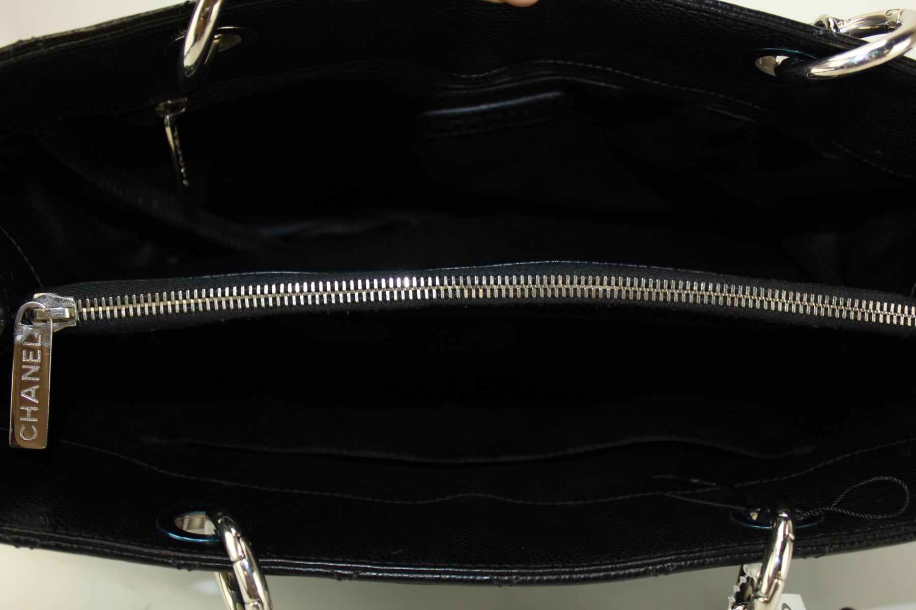 This pre-owned Chanel Grand Shopping Tote is guaranteed 100% authentic. The exterior is in the classic Caviar Leather.