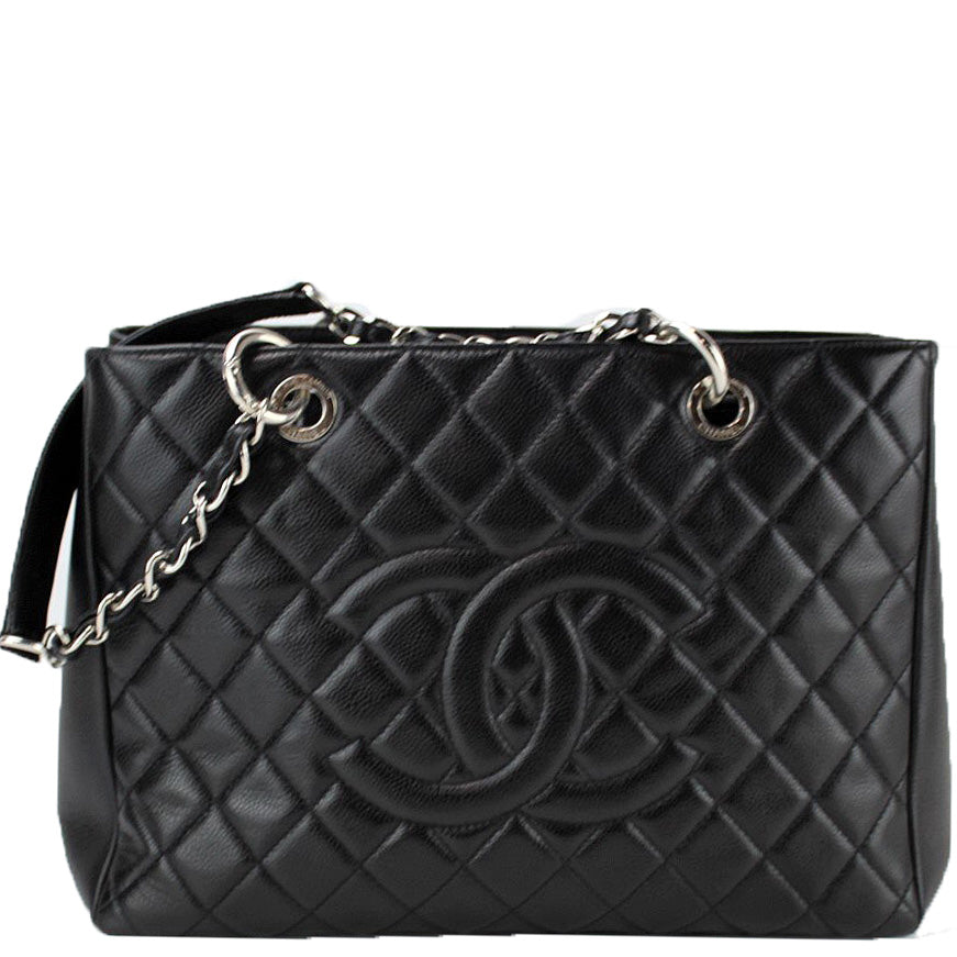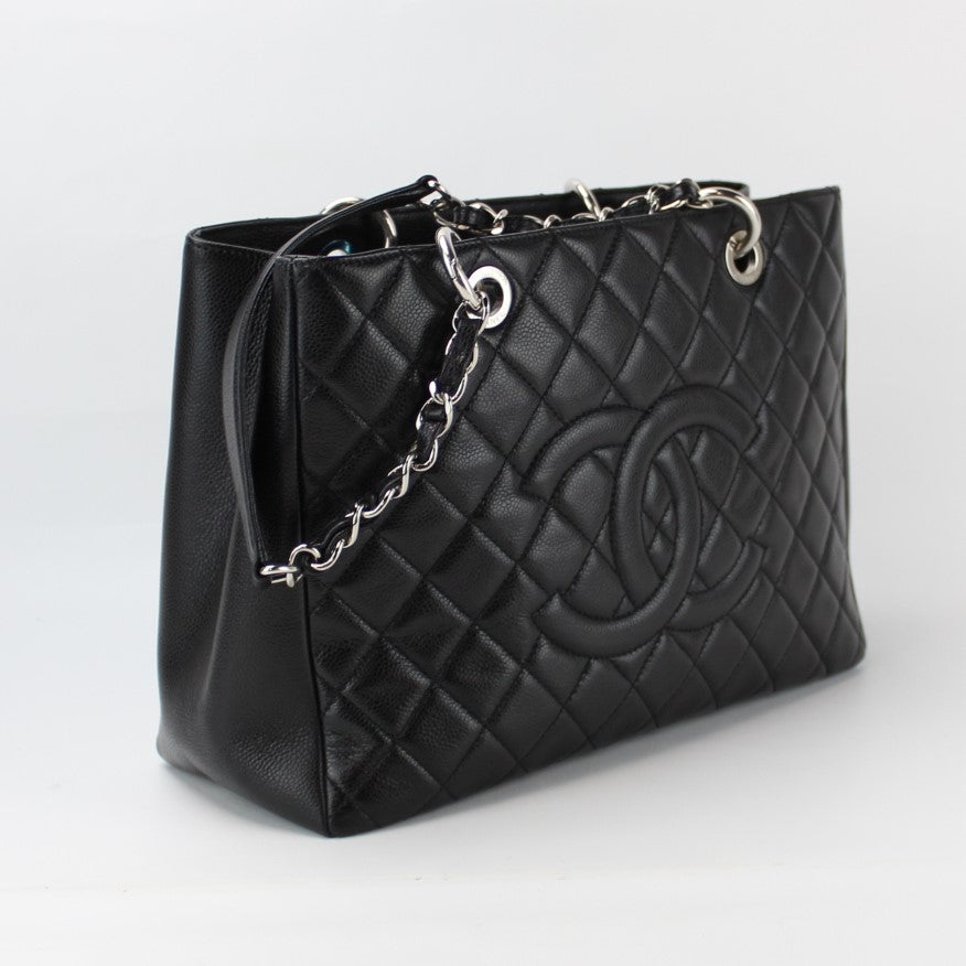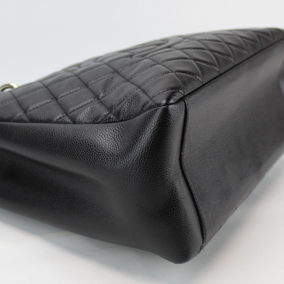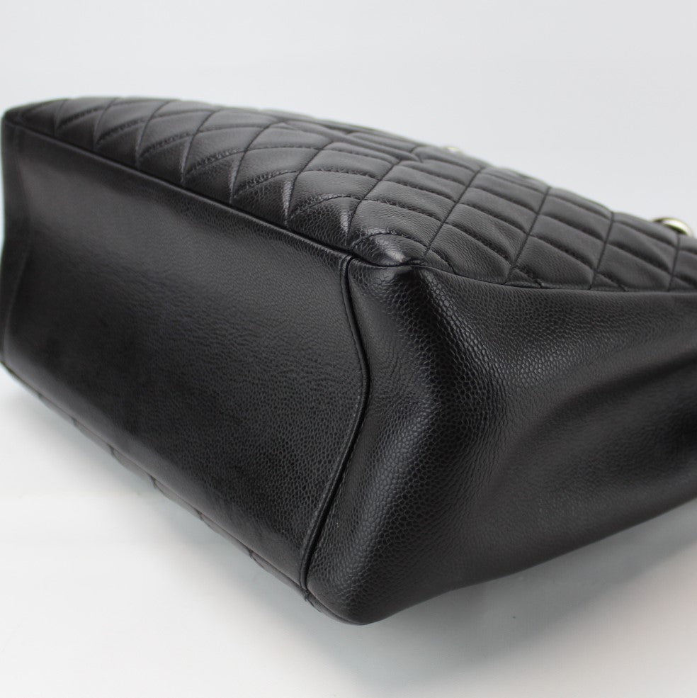This pre-owned Chanel Grand Shopping Tote is guaranteed 100% authentic. The exterior is in the classic Caviar Leather.
