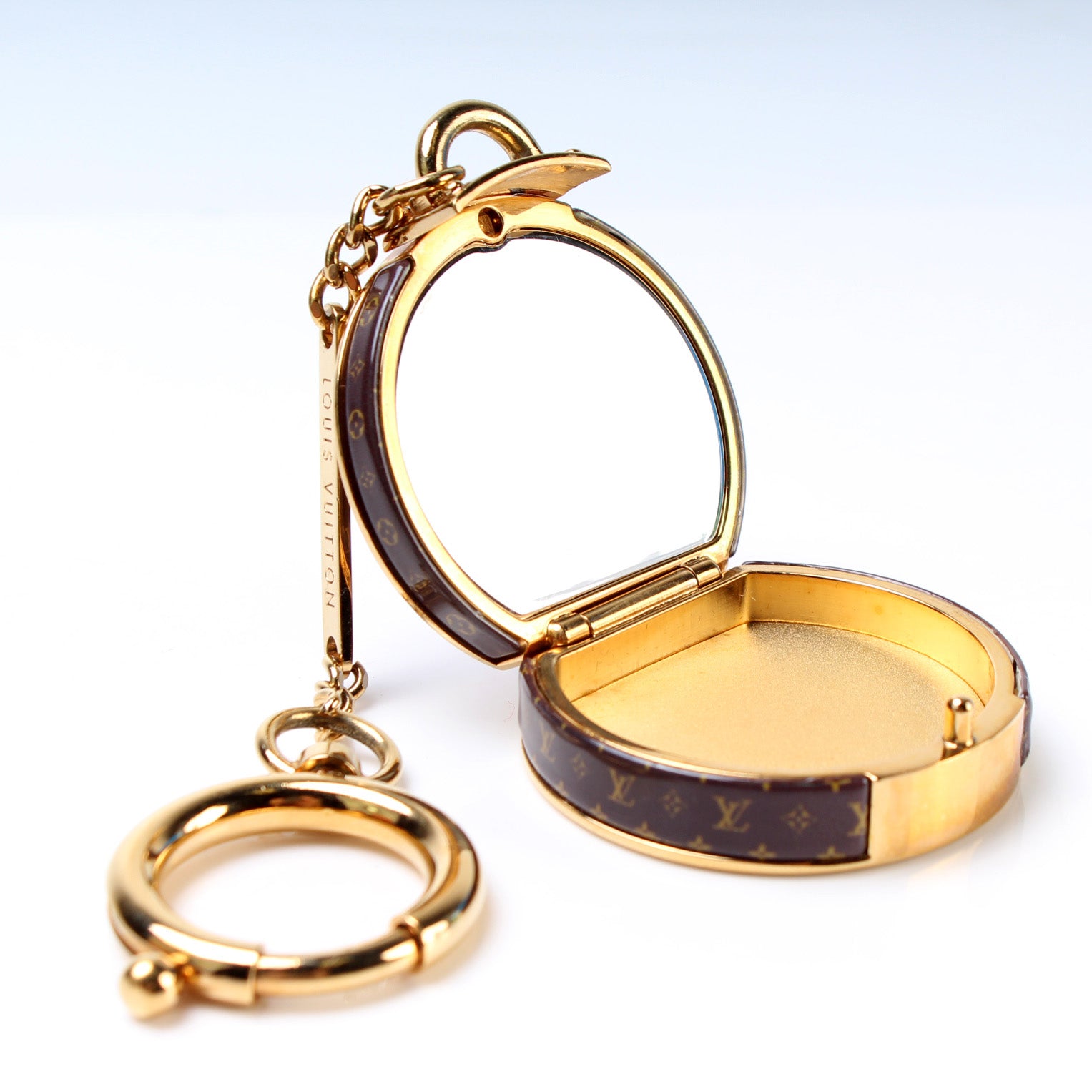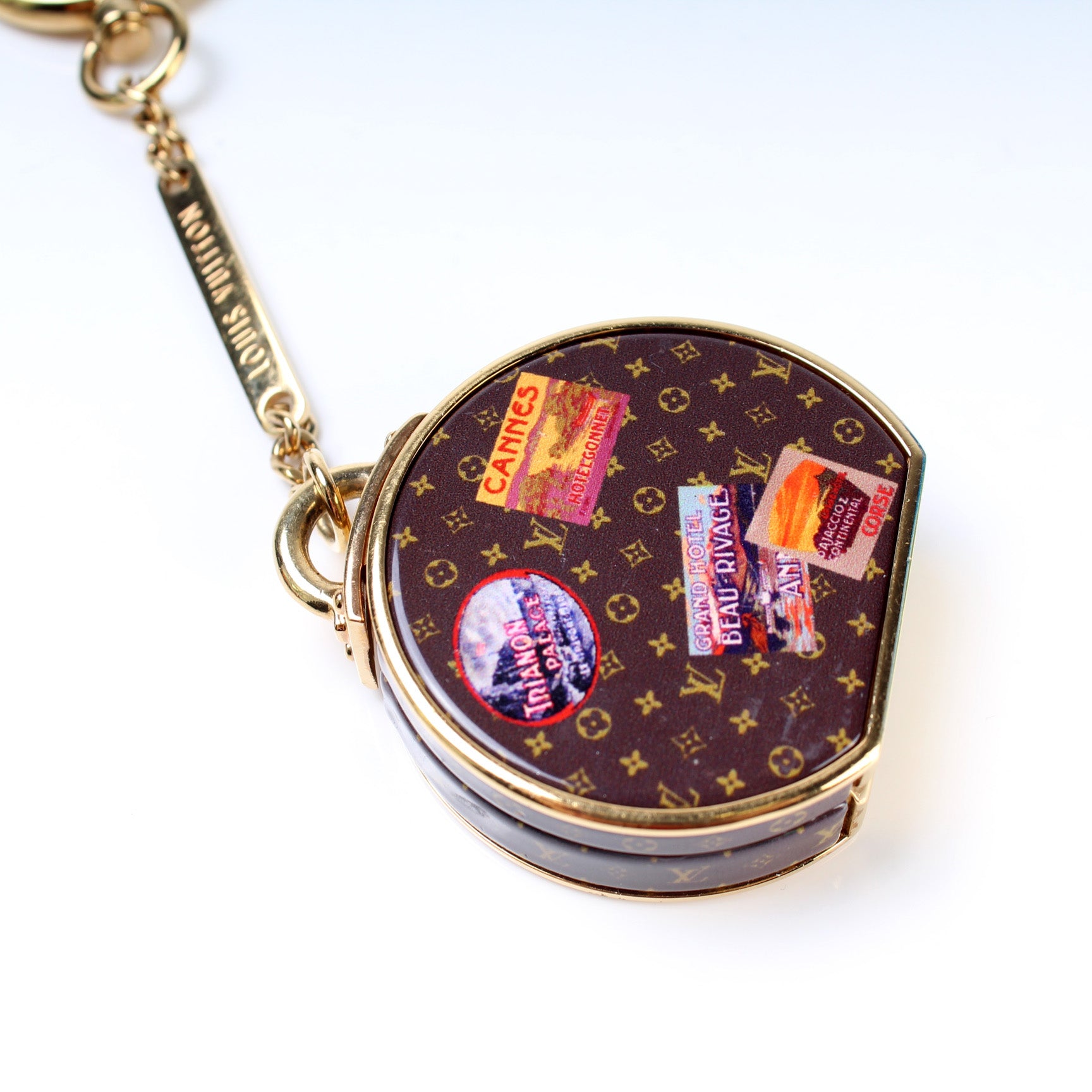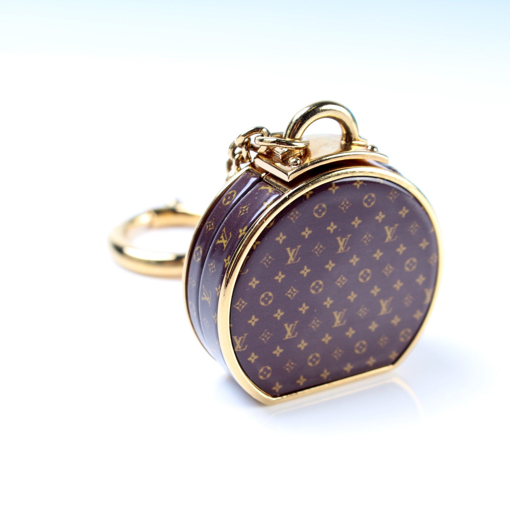 This pre-owned Louis Vuitton Hatbox with Mirror Bag Charm is guaranteed 100% authentic.