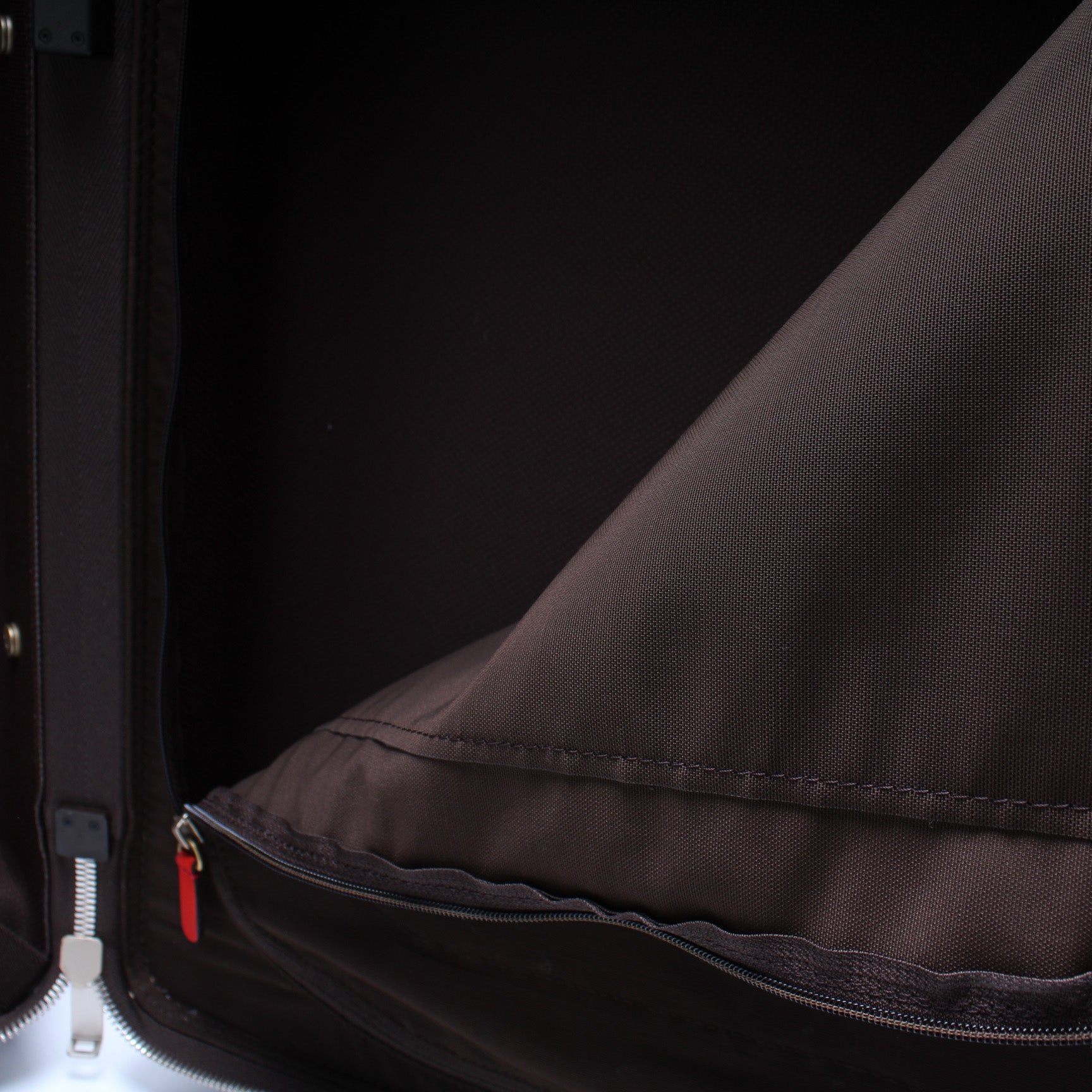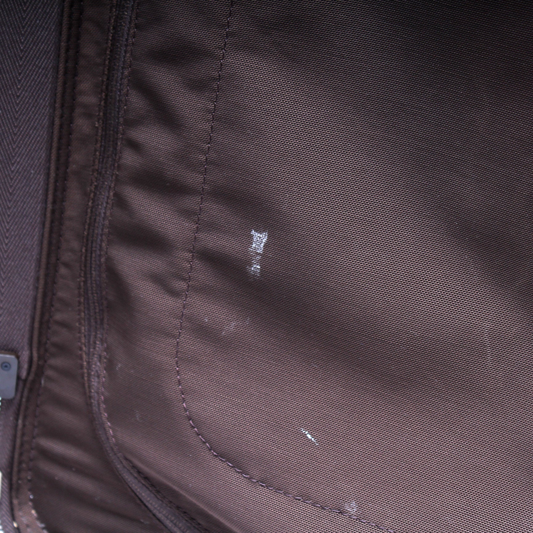 Interior: The interior shows light wear. The interior features two zip closure pockets and one fasetning belt.