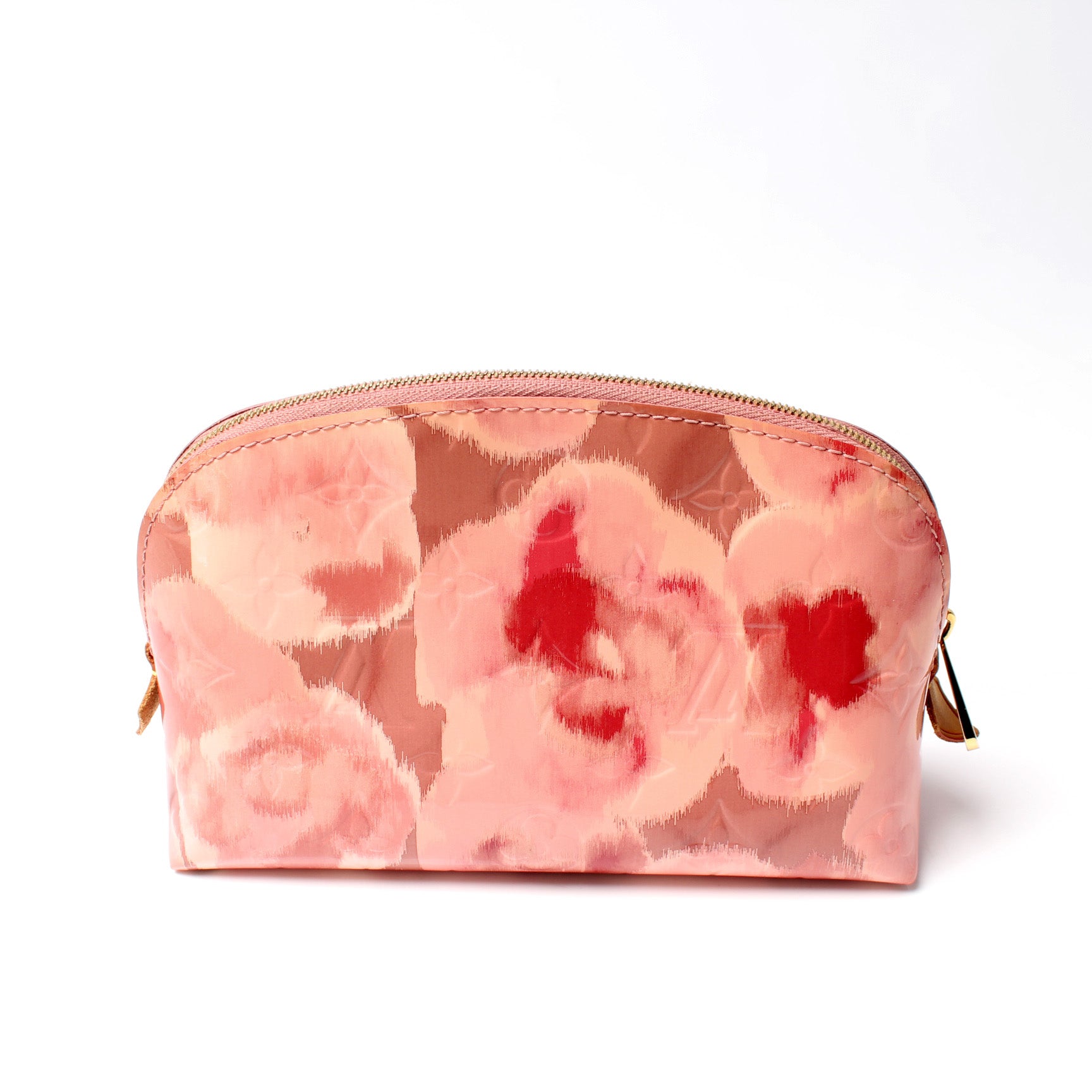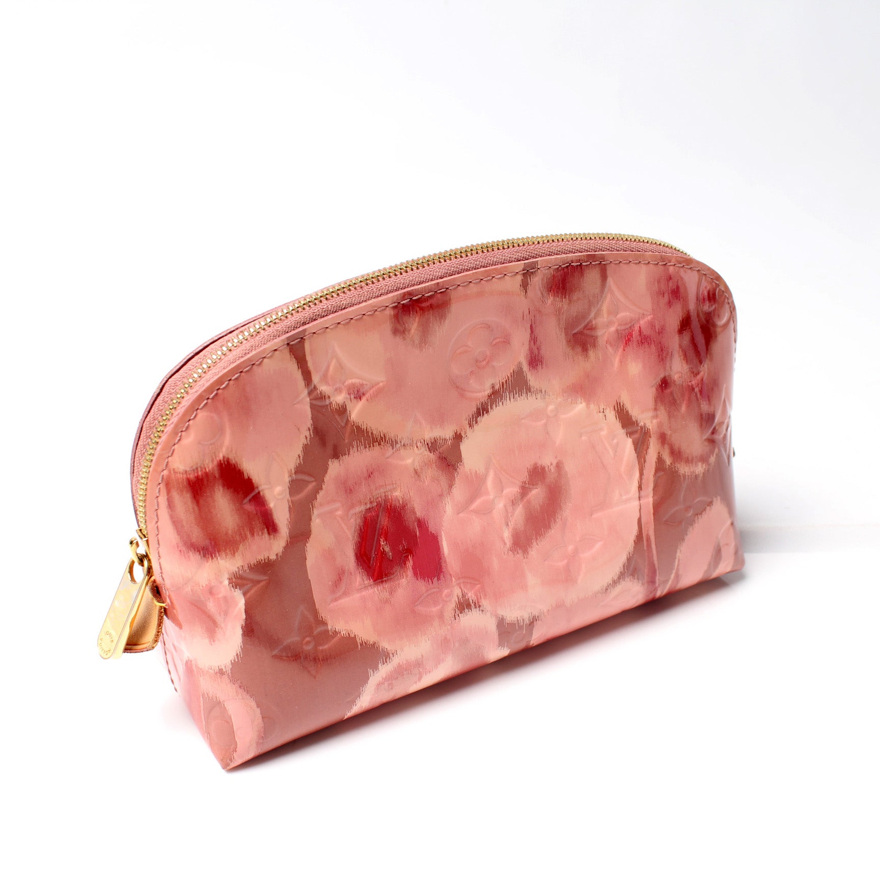 This pre-owned Louis Vuitton Cosmetic Pouch PM is guaranteed 100% authentic. The exterior is in the classic Louis Vuitton Vernis leather.