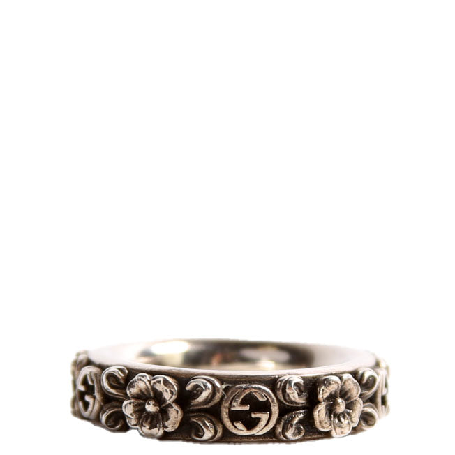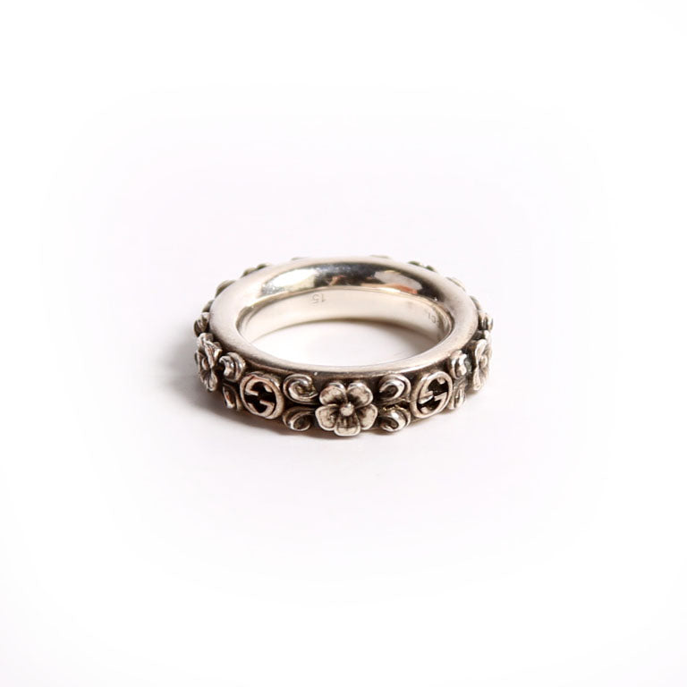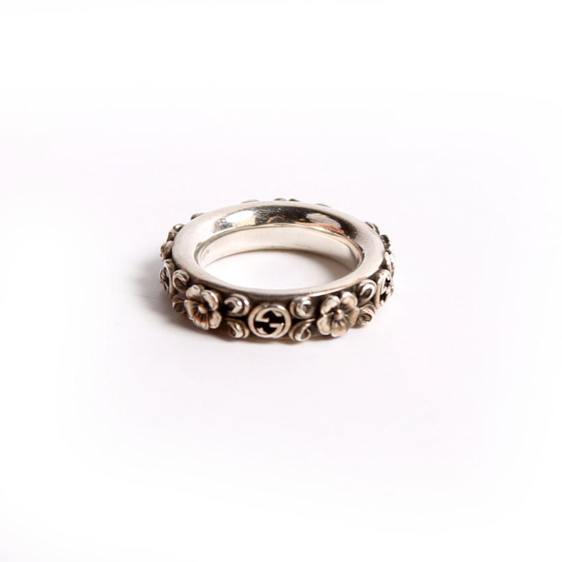 This pre-owned Gucci Interlocking G Flower Aged Ring 925 is guaranteed 100% authentic.