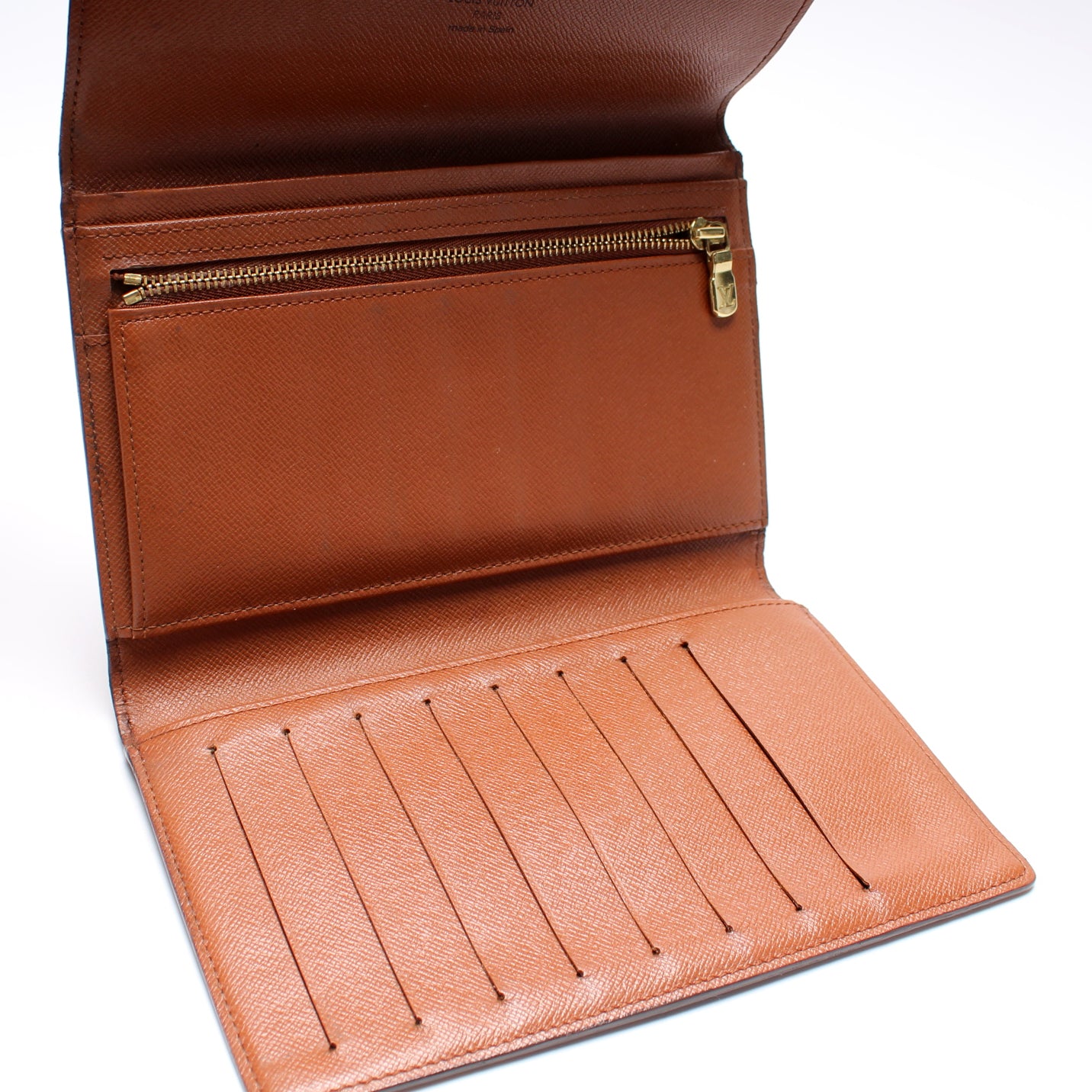This pre-owned Louis Vuitton International Trifold Wallet is guaranteed 100% authentic. The exterior is in the classic Louis Vuitton Monogram coated canvas.