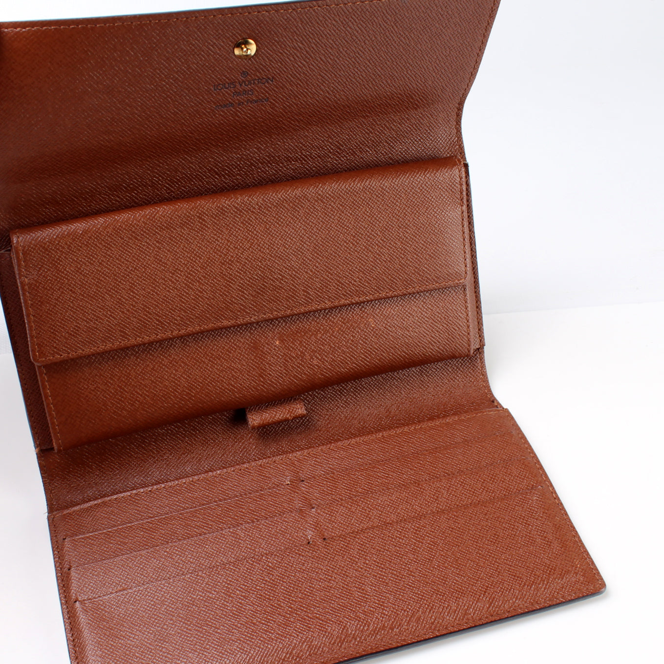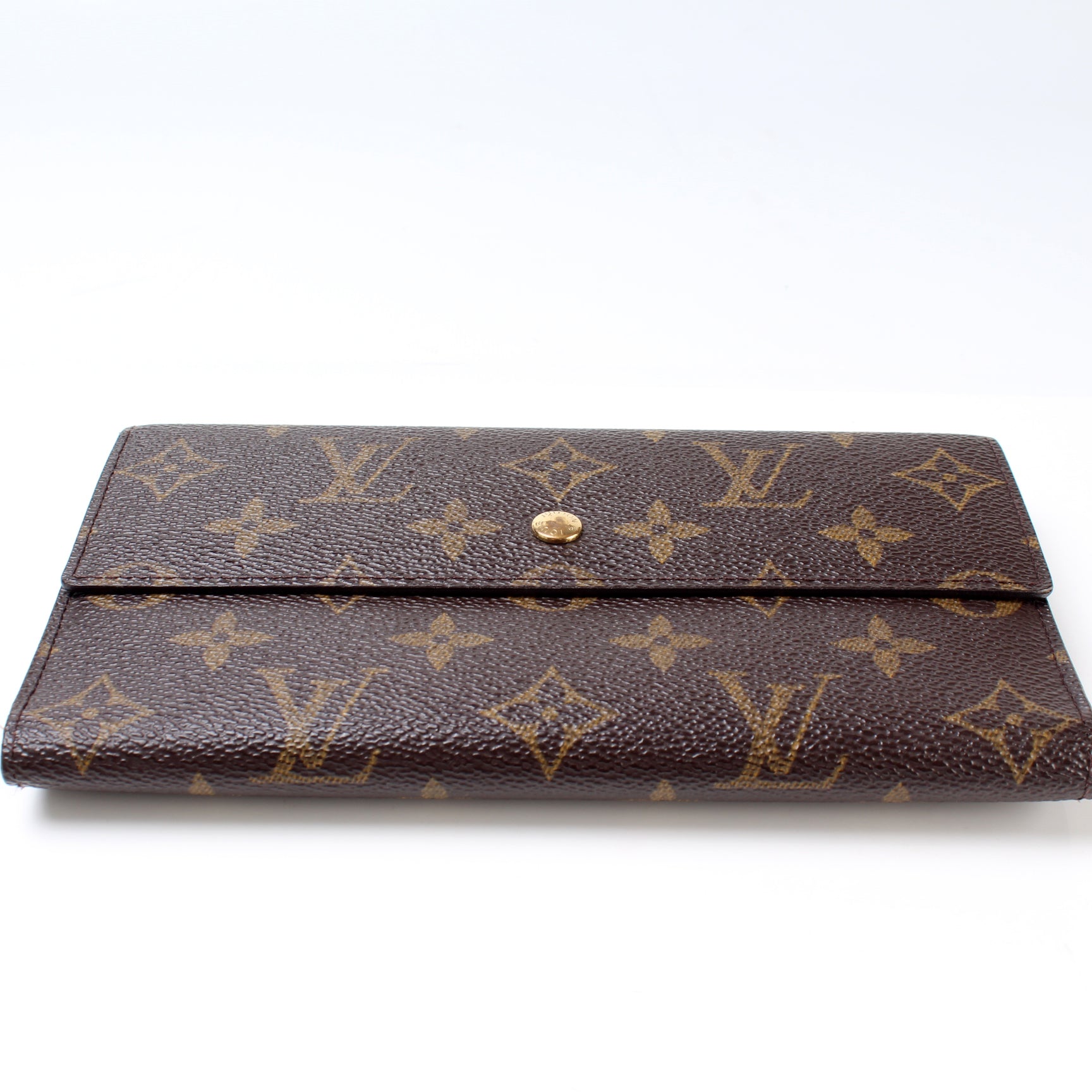 This pre-owned Louis Vuitton Porte Tresor International Wallet is guaranteed 100% authentic. The exterior is in the classic Louis Vuitton Monogram coated canvas.