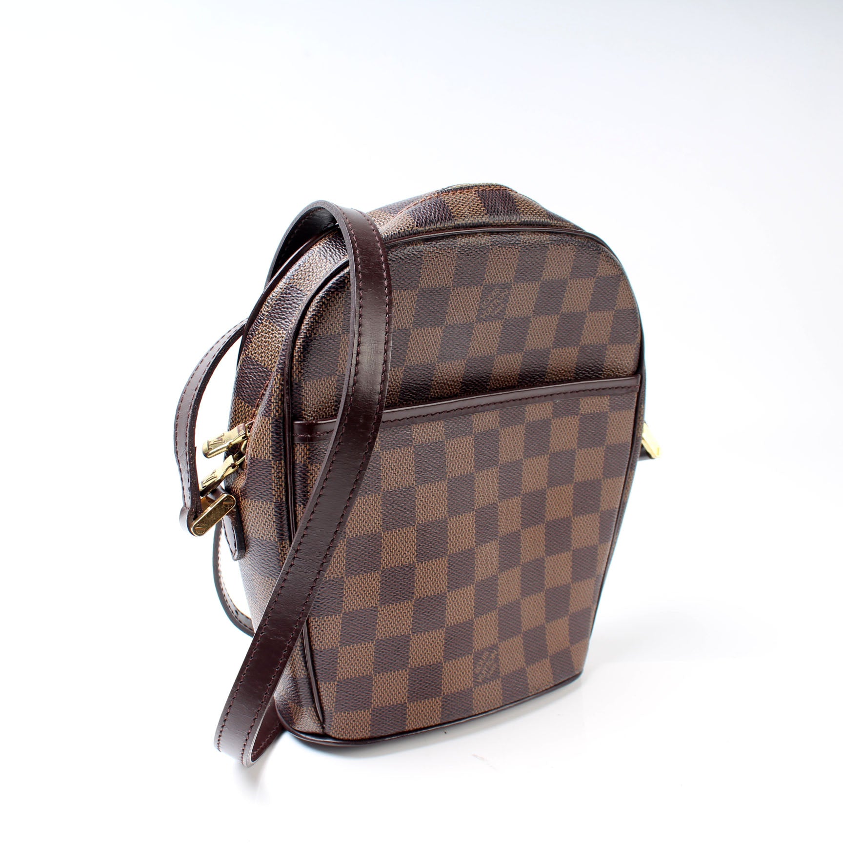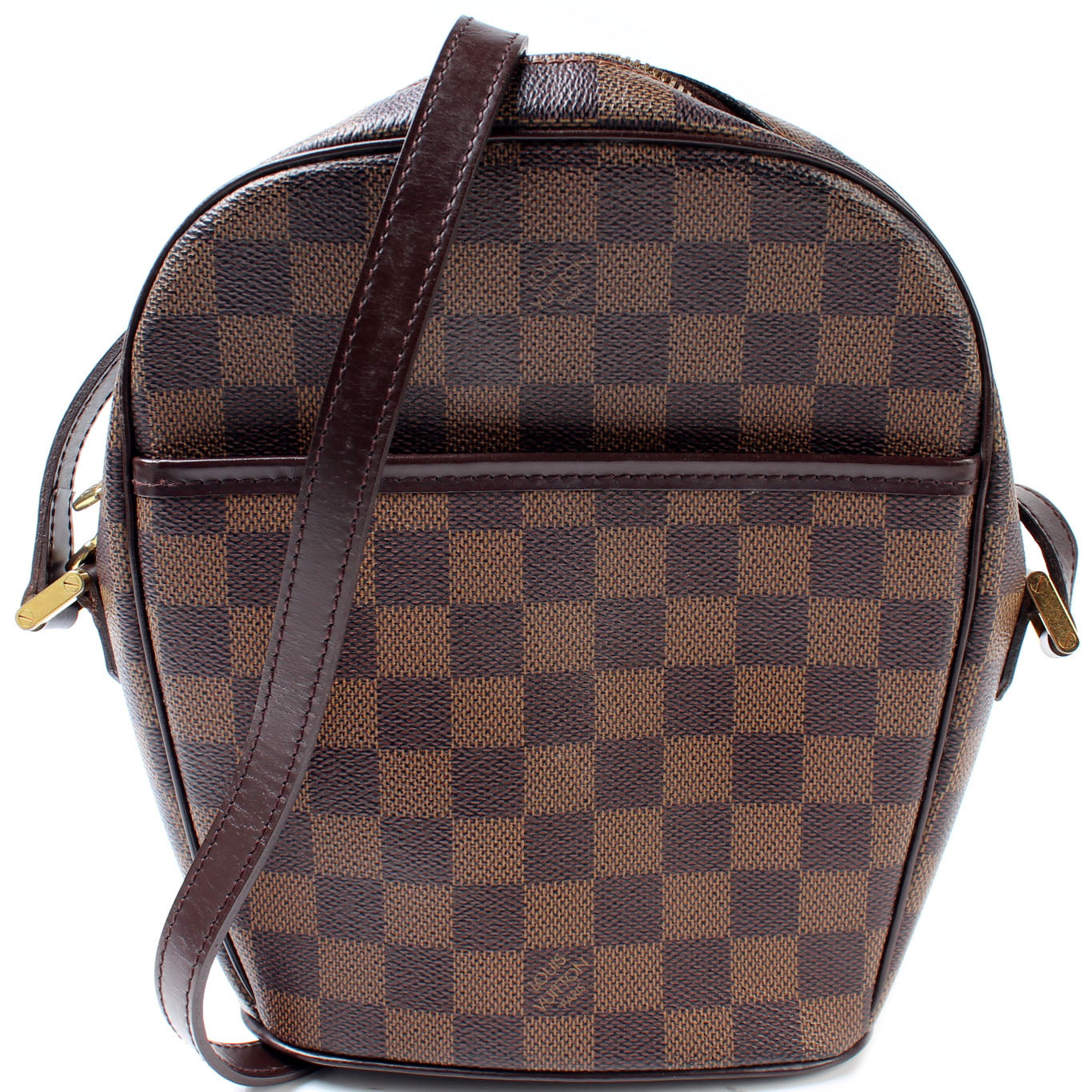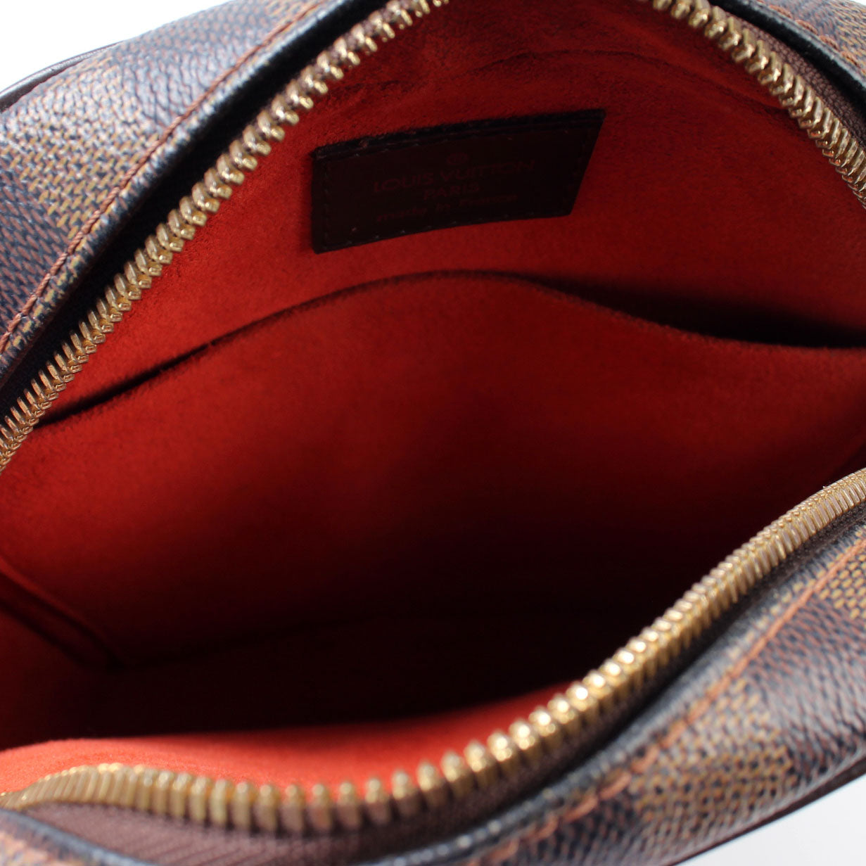This pre-owned Louis Vuitton Ipanema PM is guaranteed 100% authentic. The exterior is in the classic Damier Ebene coated canvas.