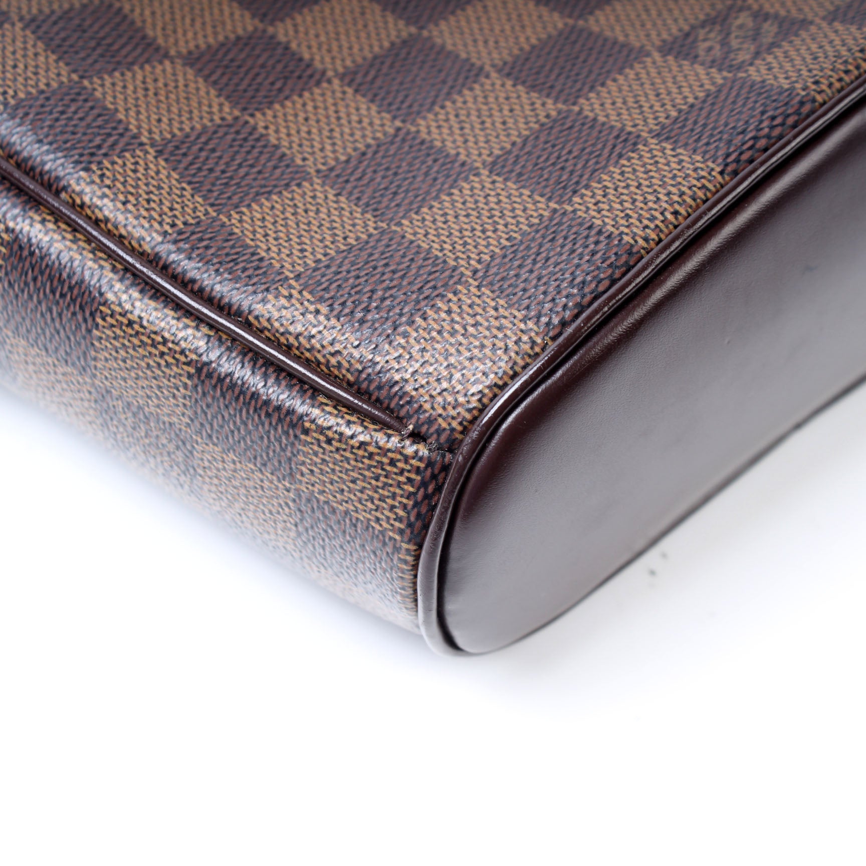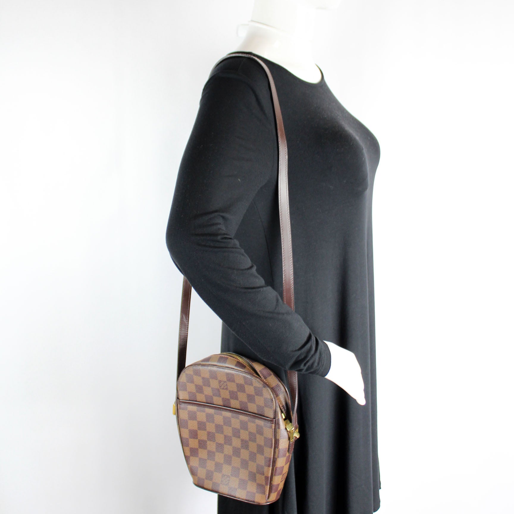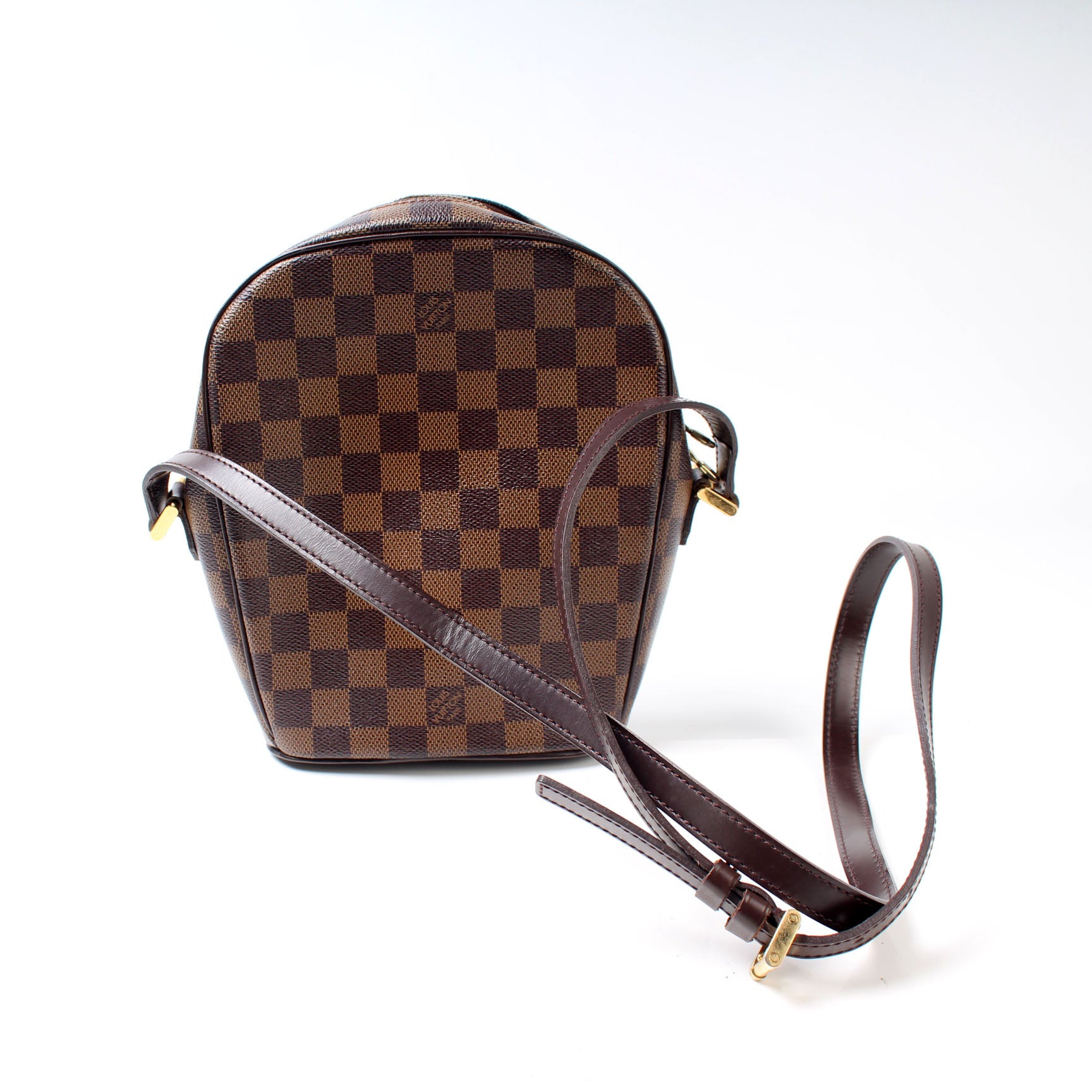 This pre-owned Louis Vuitton Ipanema PM is guaranteed 100% authentic. The exterior is in the classic Damier Ebene coated canvas.