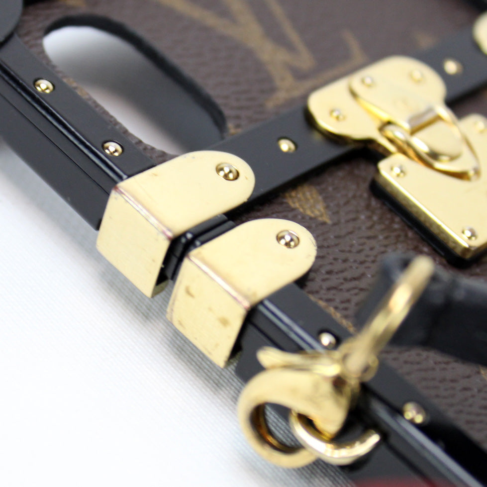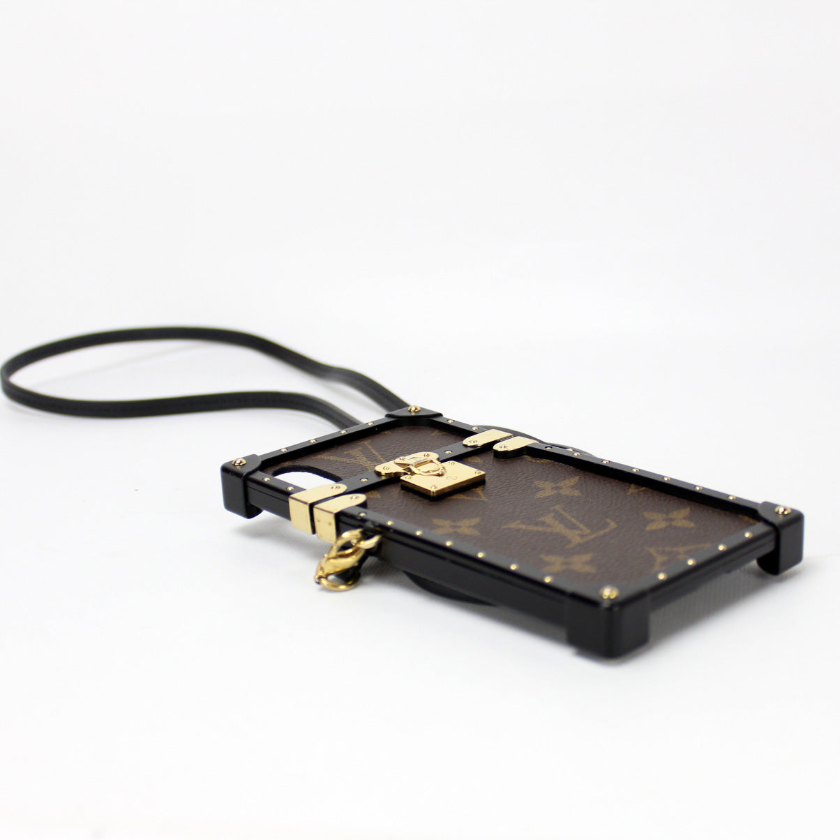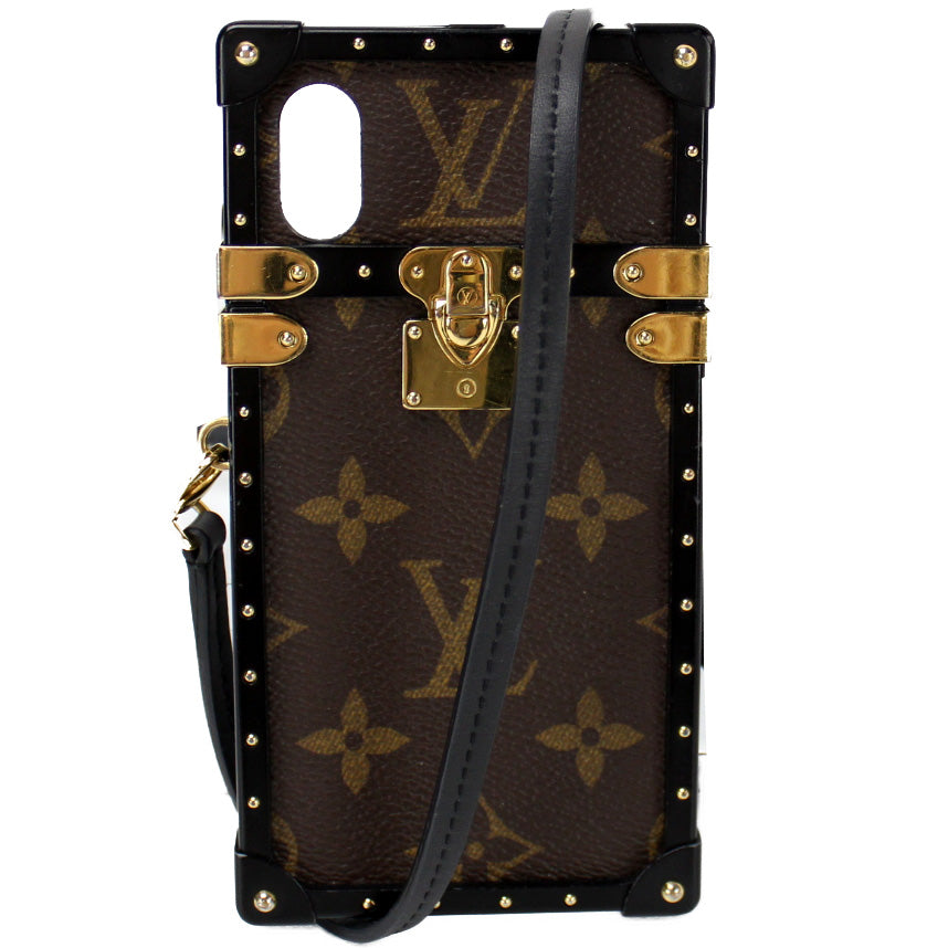 This pre-owned Louis Vuitton iPhone X Eye-Trunk Phone Case W/ Strap is guaranteed 100% authentic. The exterior is in the classic Louis Vuitton Monogram coated canvas.