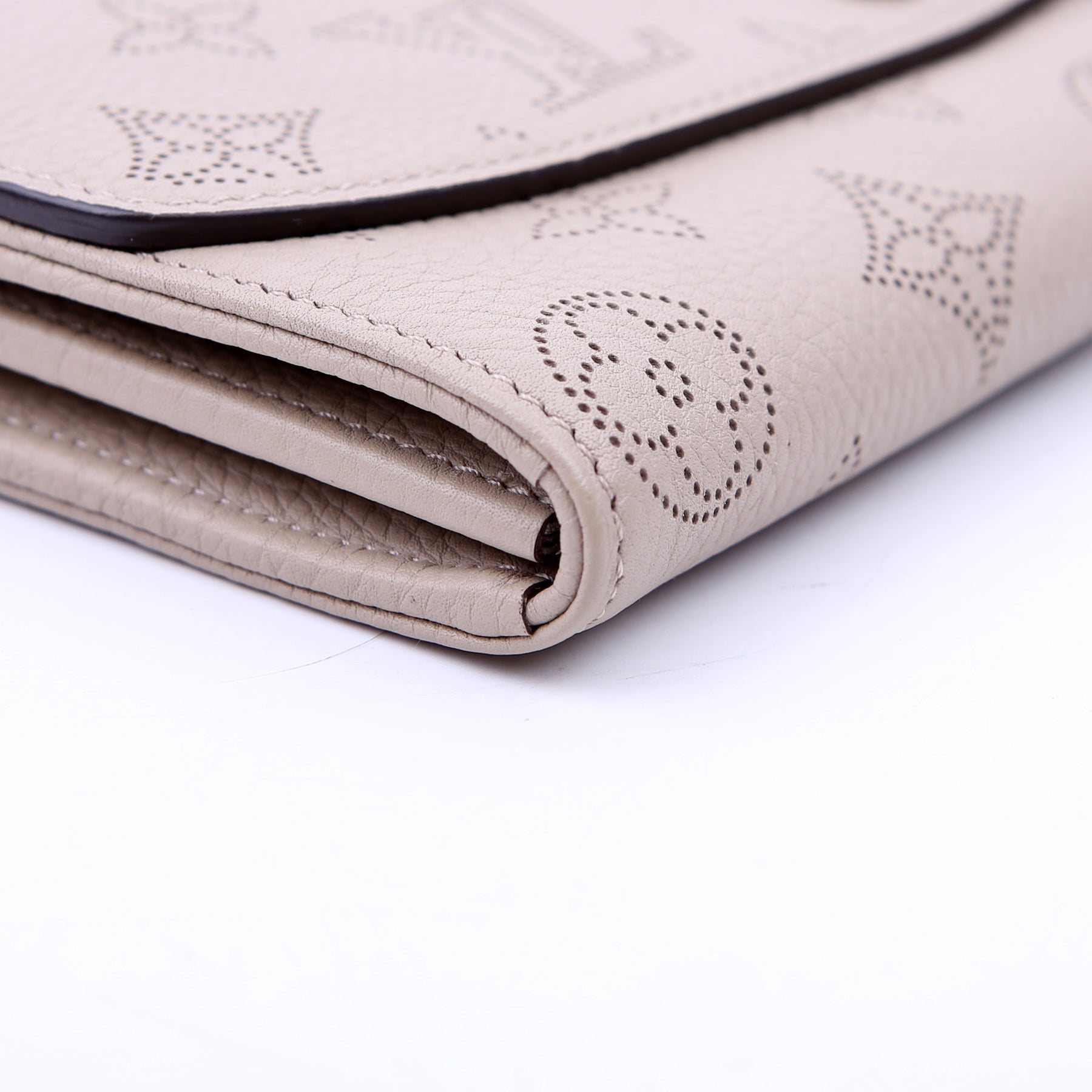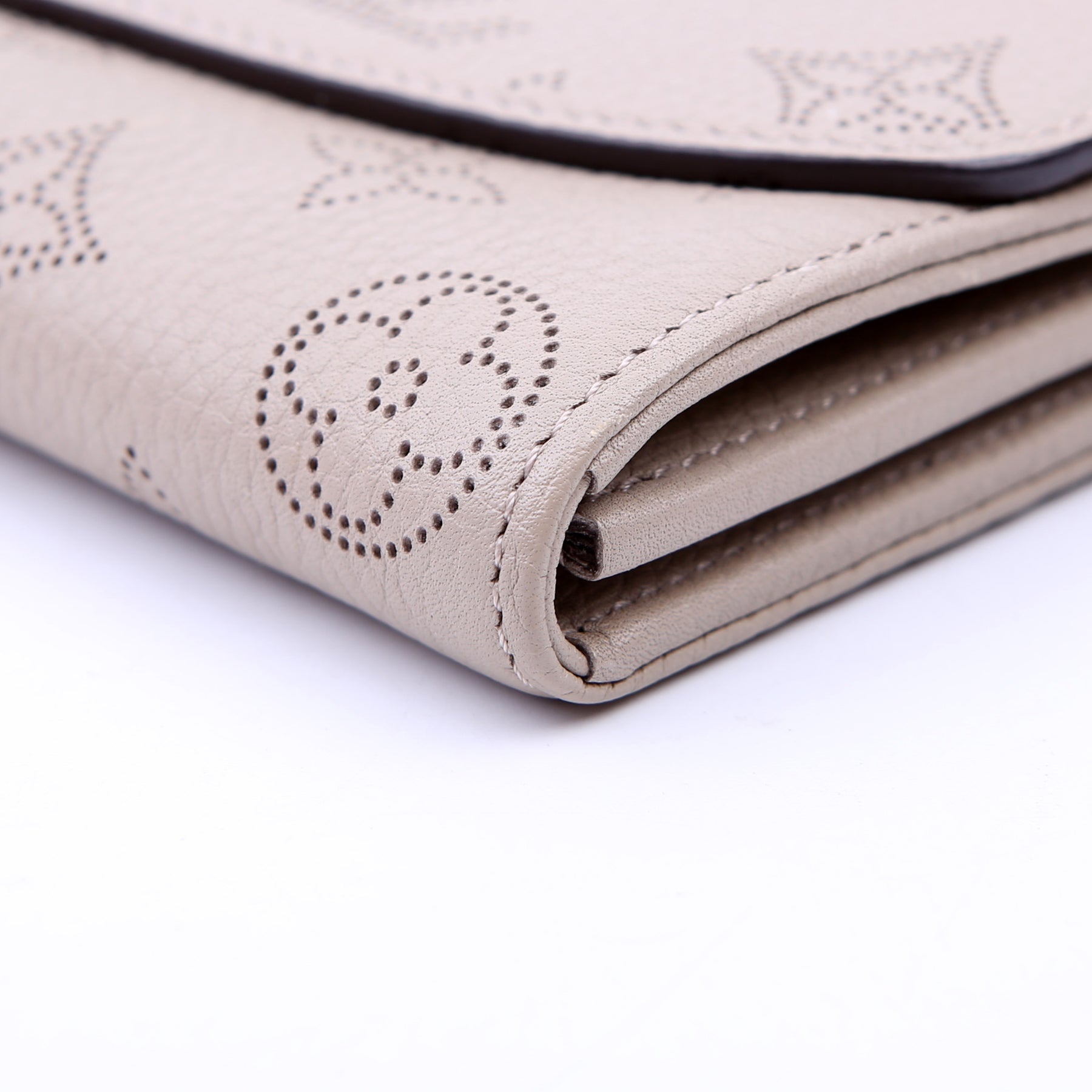 This pre-owned Louis Vuitton Iris Wallet is guaranteed 100% authentic. The exterior is in the classic Louis Vuitton Mahina leather.