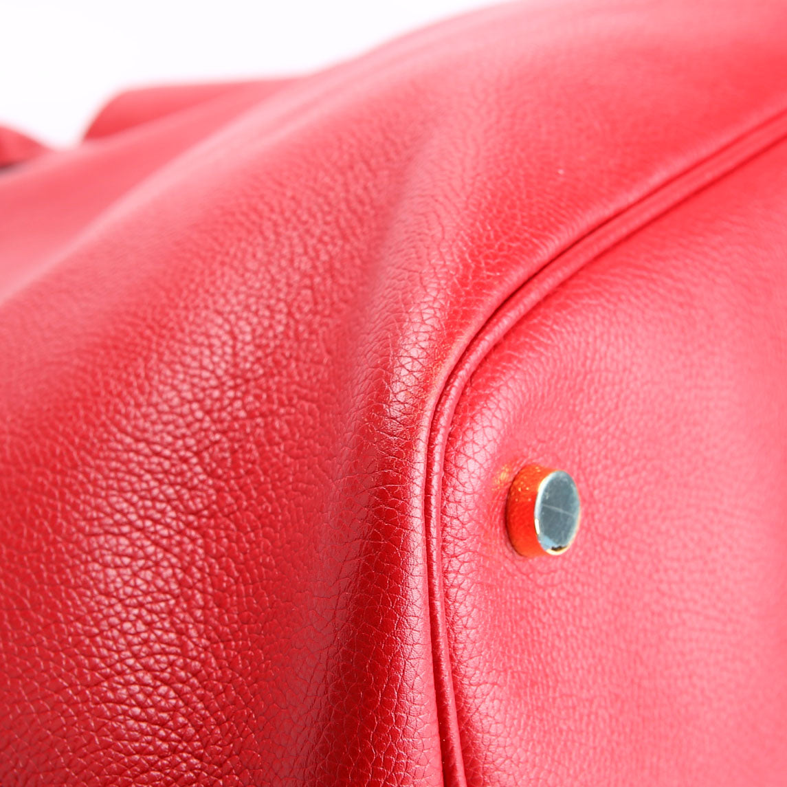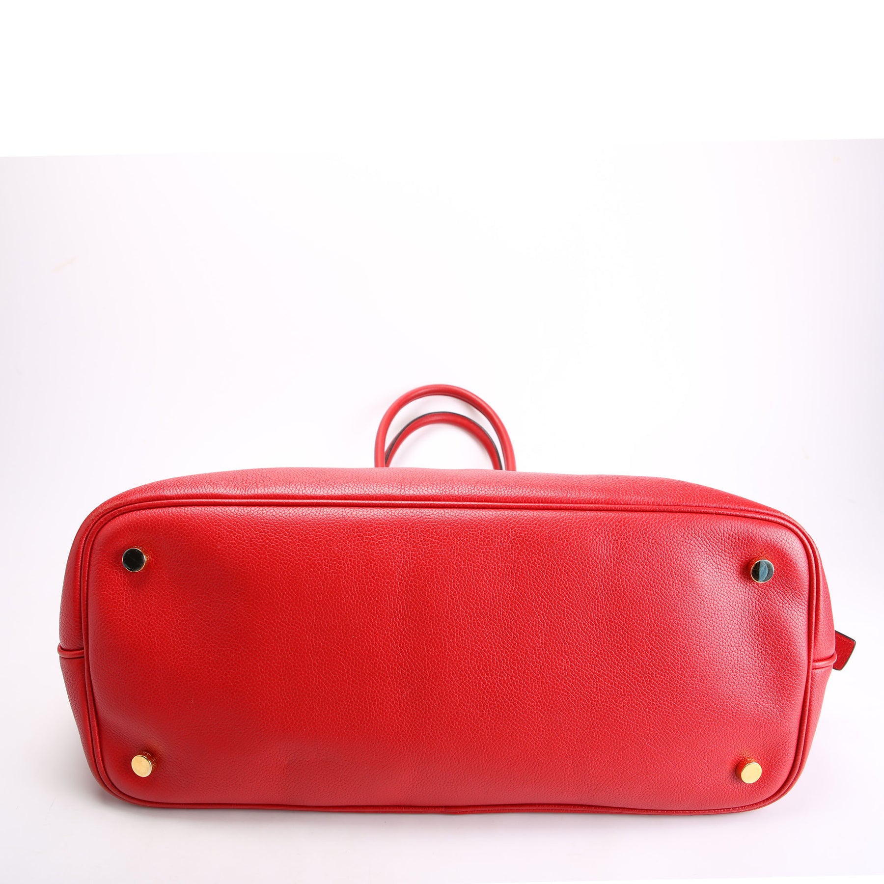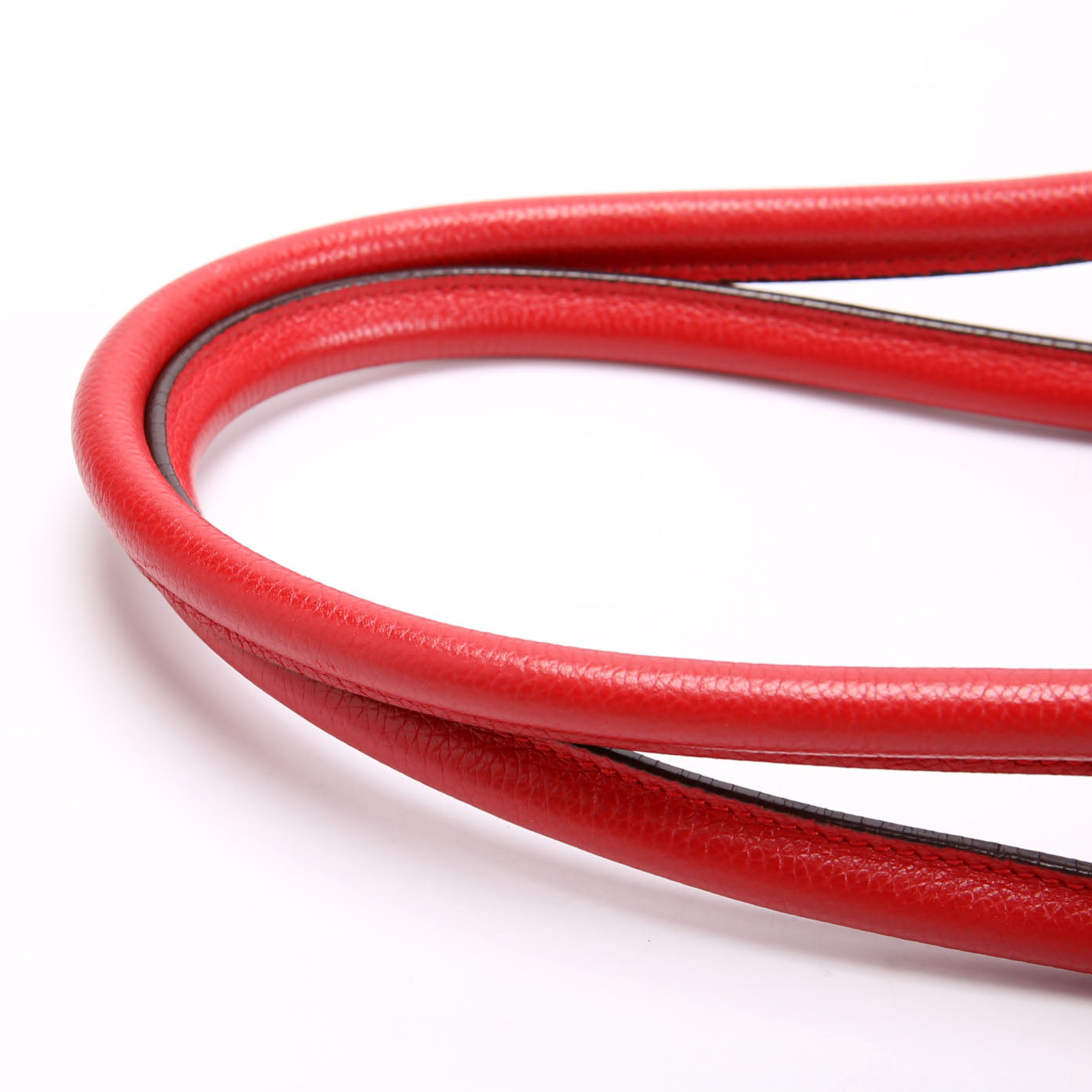 Handle: The leather handles show light wear and rubbing throughout. The piping shows minor cracking.