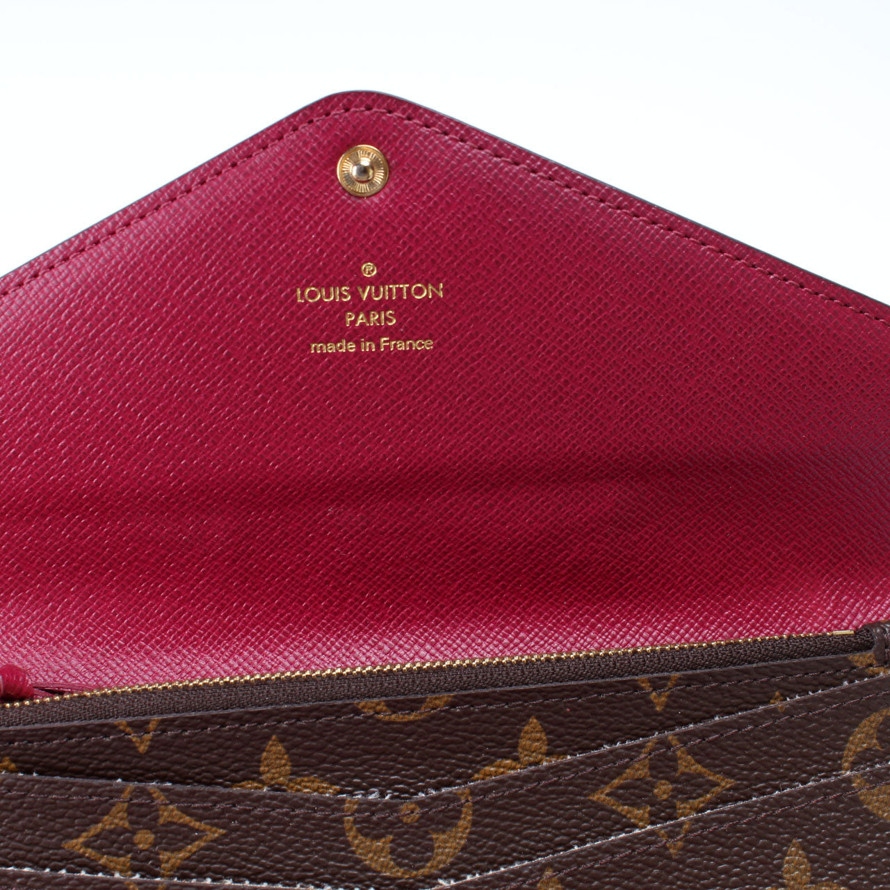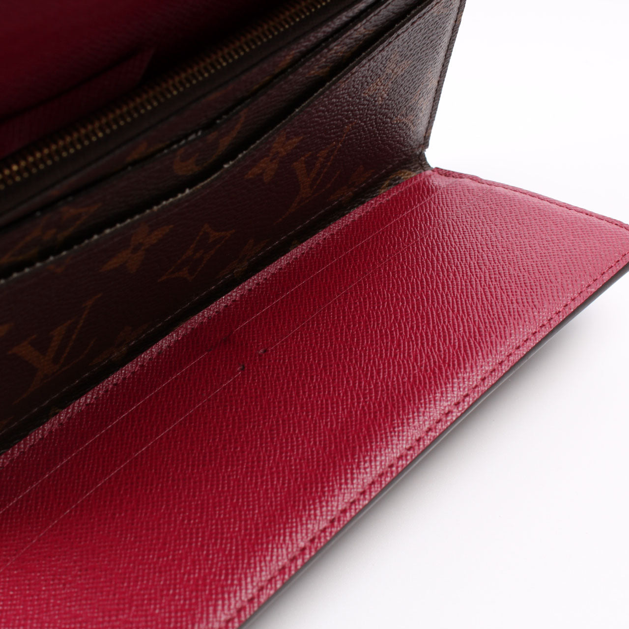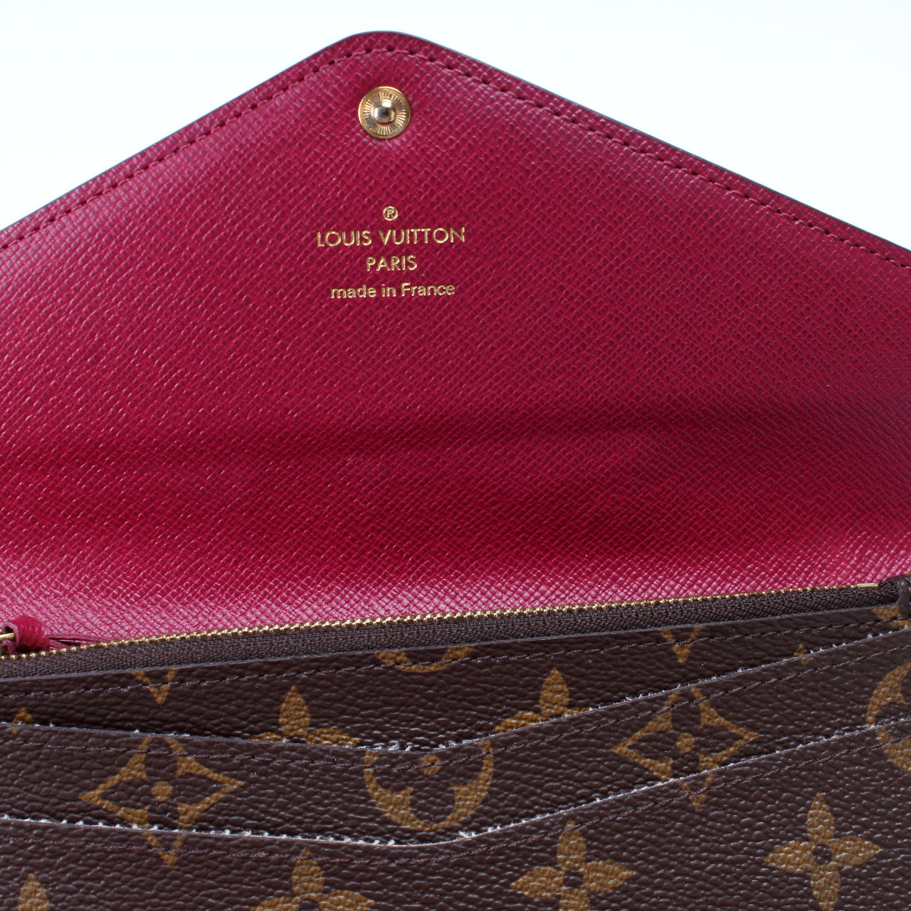 This pre-owned Louis Vuitton Josephine Wallet is guaranteed 100% authentic. The exterior is in the classic Louis Vuitton Monogram coated canvas.