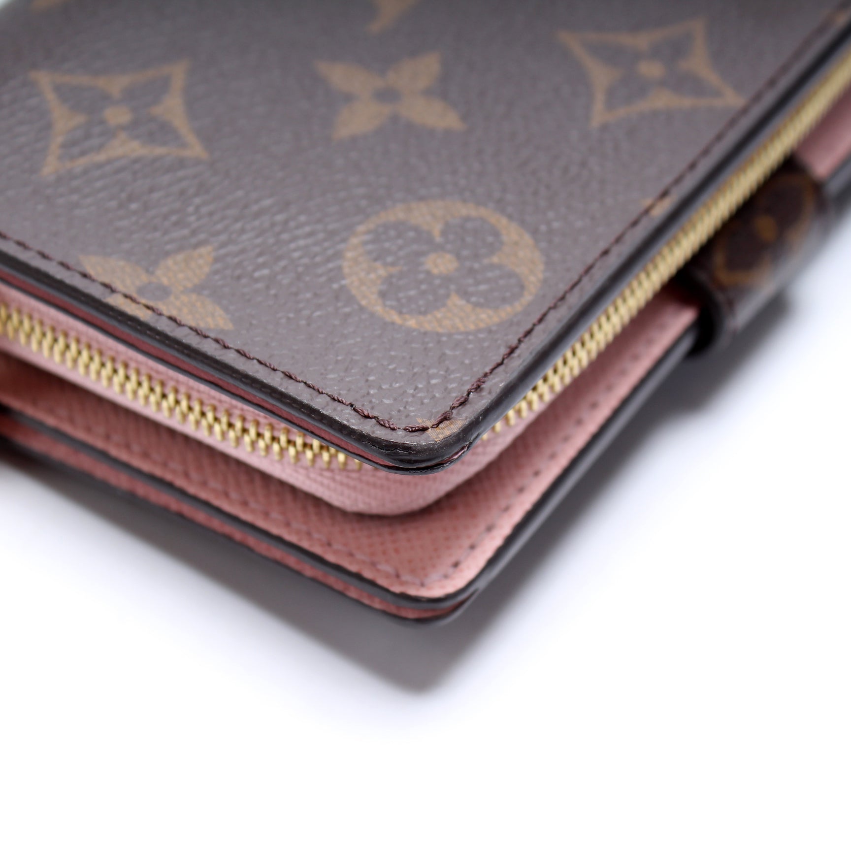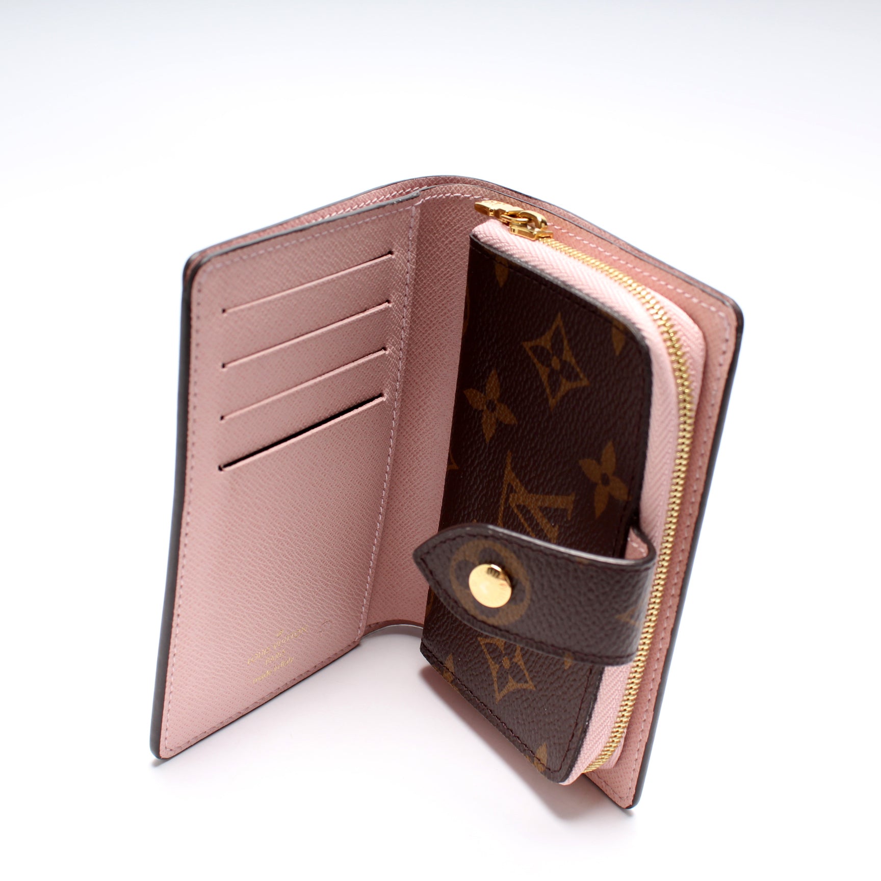 This pre-owned Louis Vuitton Juliette Wallet is guaranteed 100% authentic. The exterior is in the classic Louis Vuitton Reverse Monogram coated canvas.