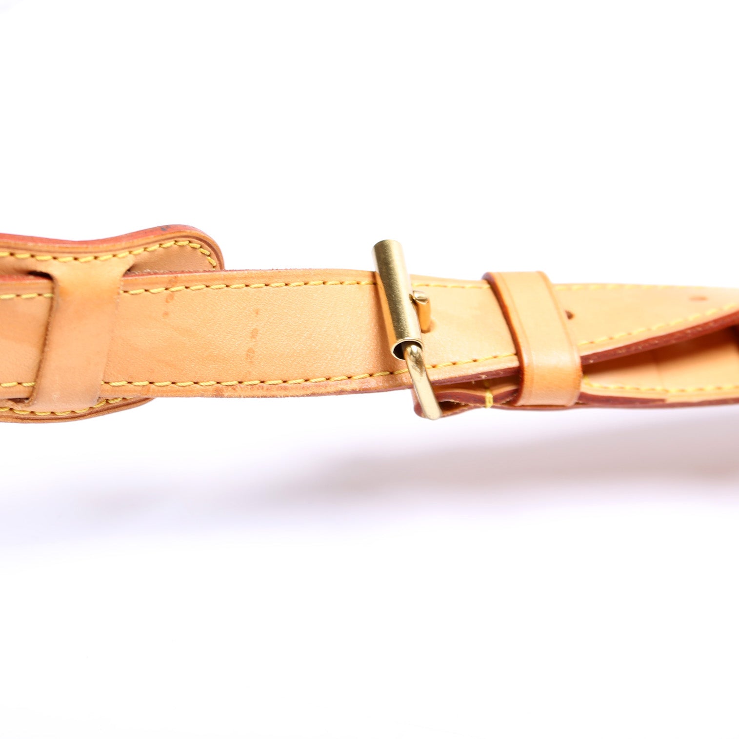 Exterior: The exterior coated canvas is free of any rips or cracks. The leather trim shows minor discoloration.