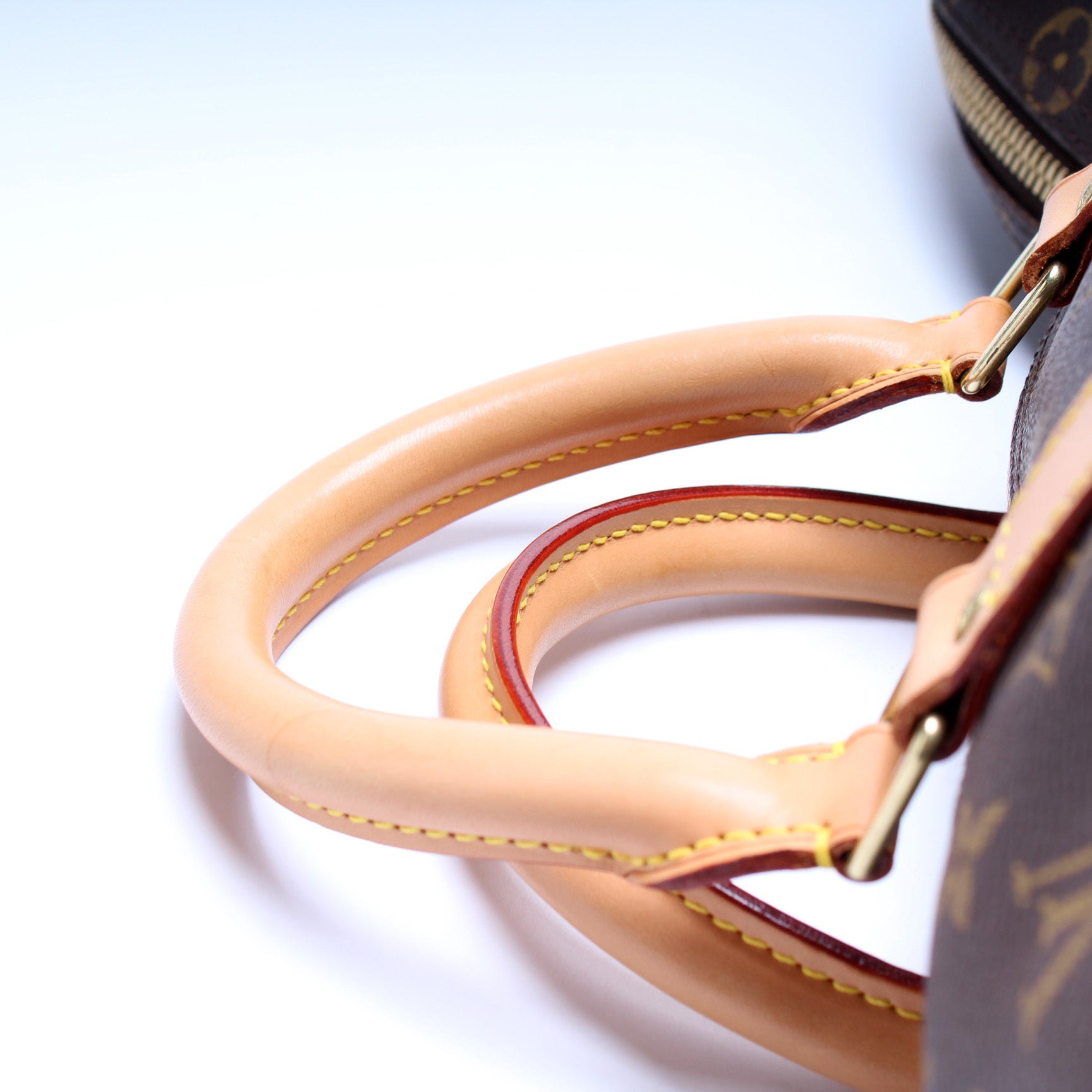 Exterior: The exterior coated canvas is free of any rips or cracks. The leather details show minor discoloration
