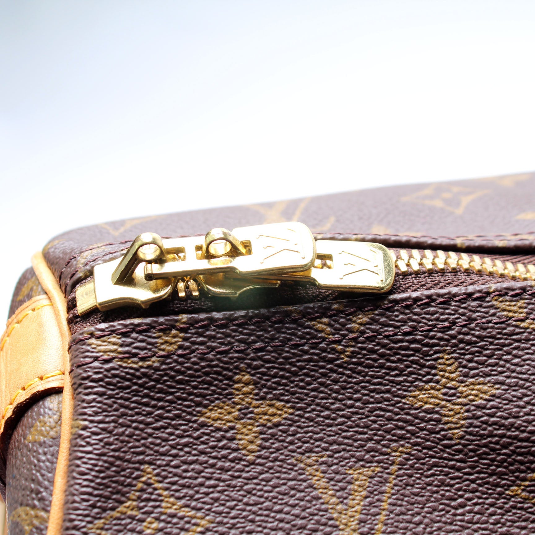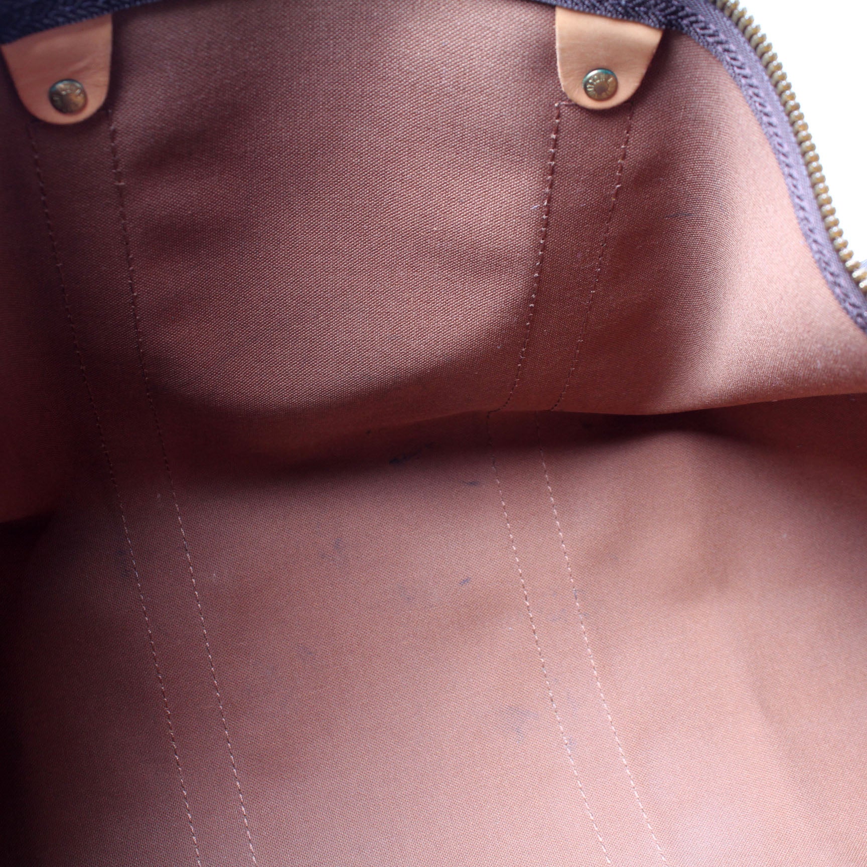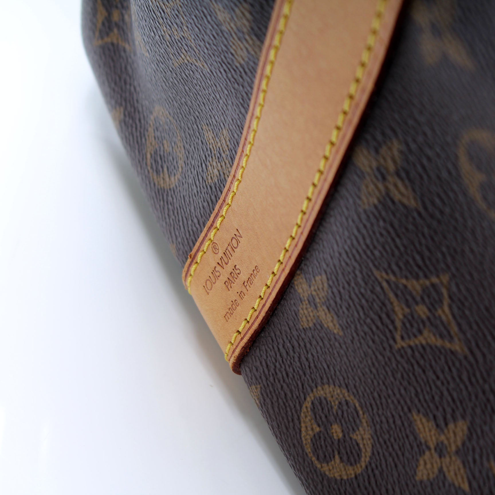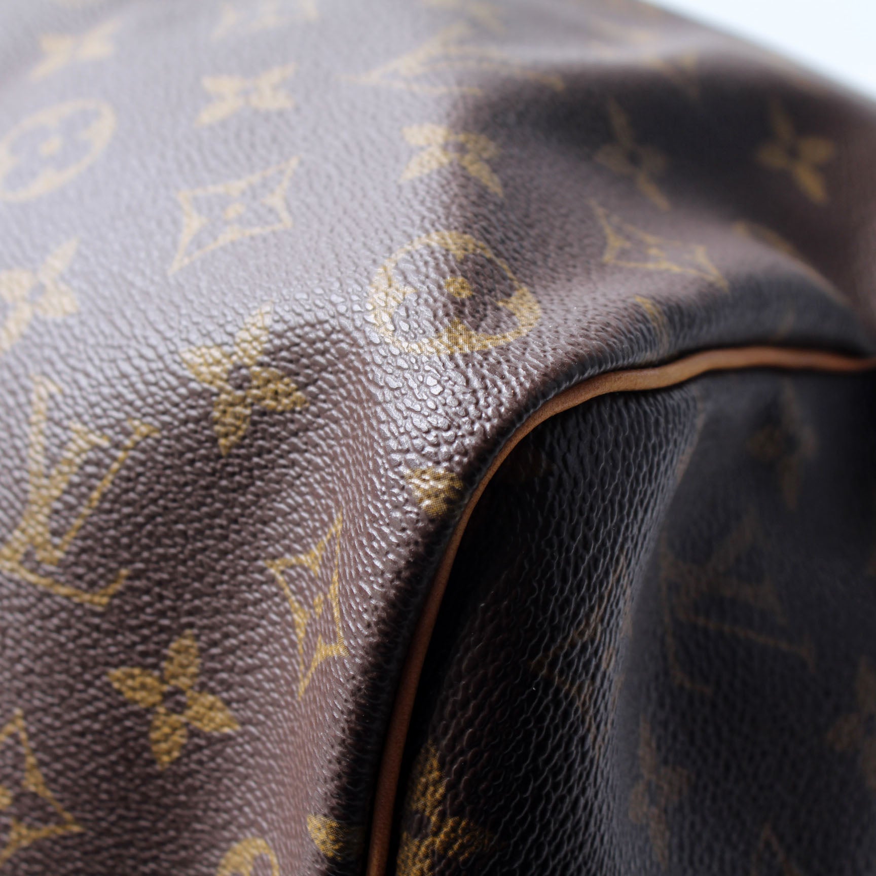 This pre-owned Louis Vuitton Keepall 50 Bandouliere is guaranteed 100% authentic. The exterior is in the classic Monogram coated canvas.