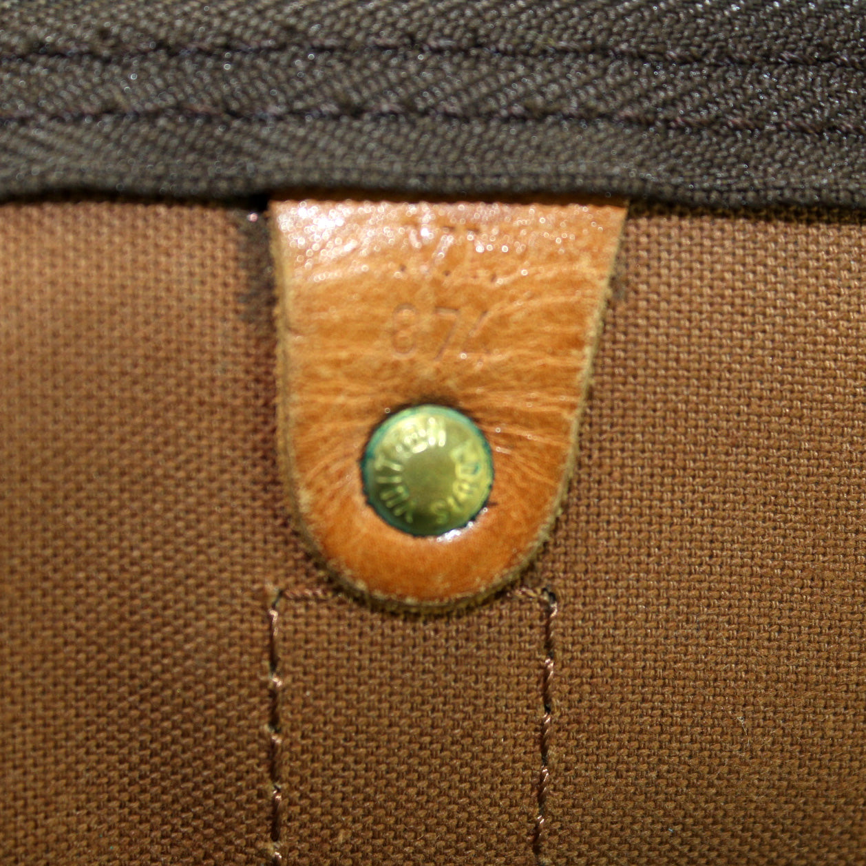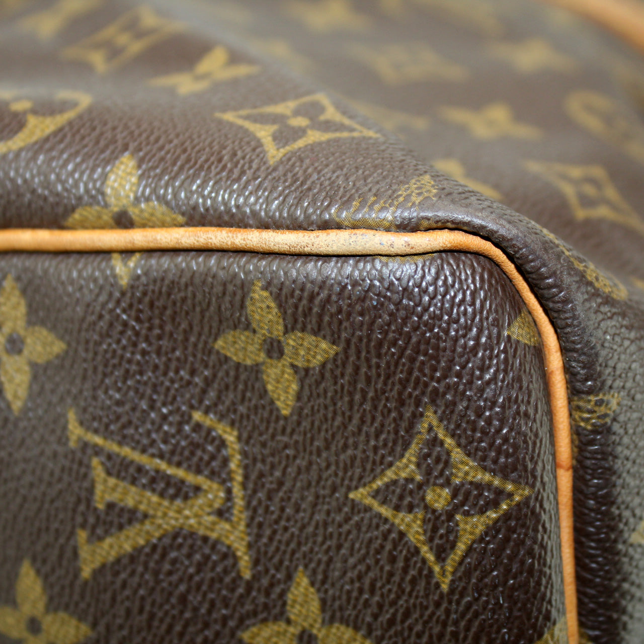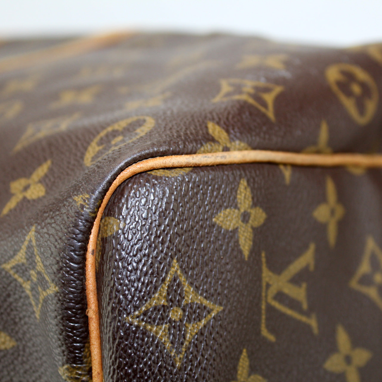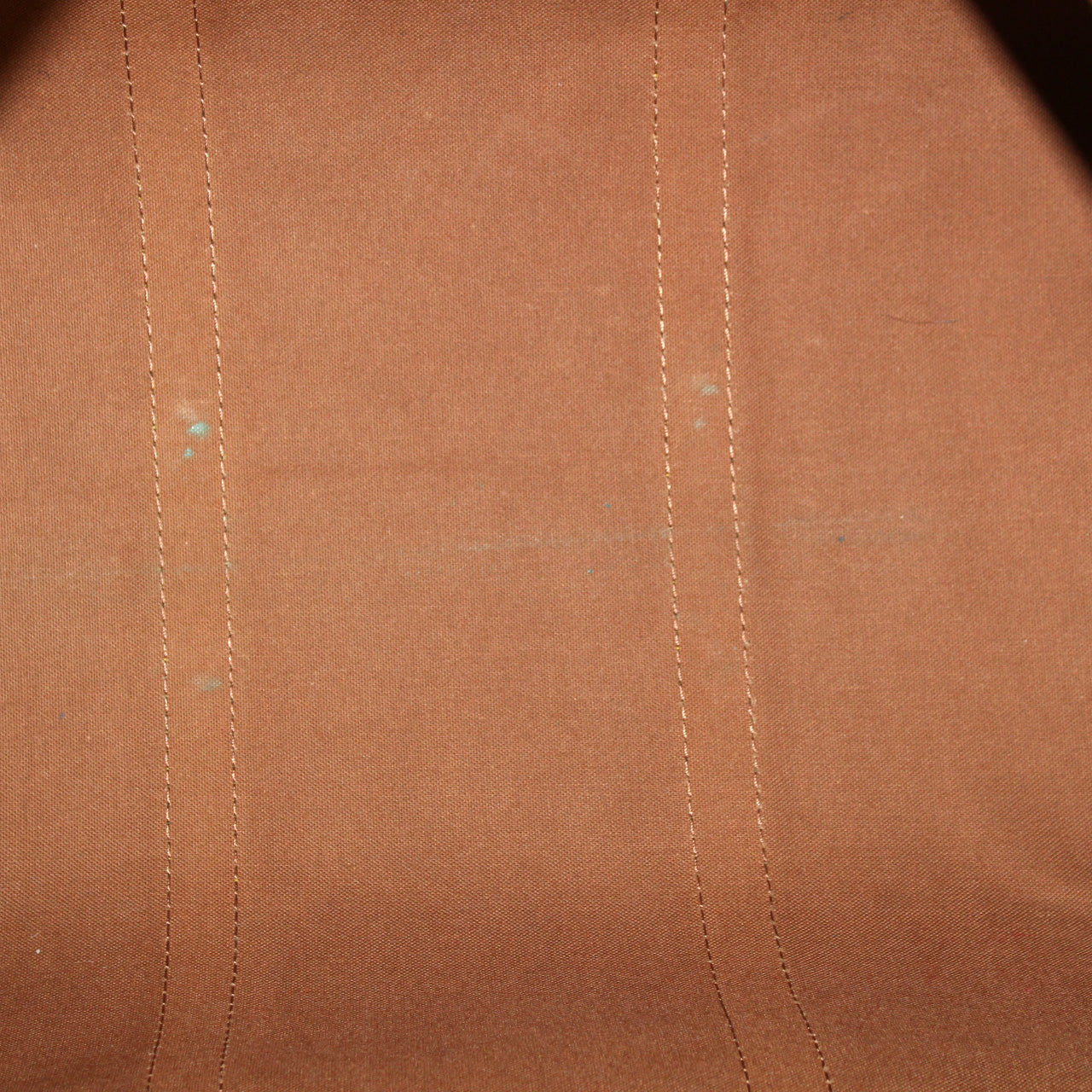 This pre-owned Louis Vuitton Keepall 50 Bandouliere is guaranteed 100% authentic. The exterior is in the classic Monogram coated canvas.