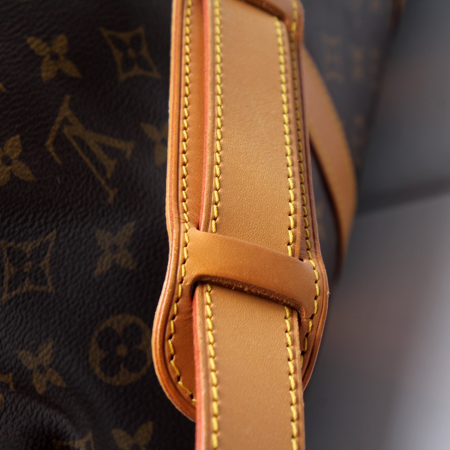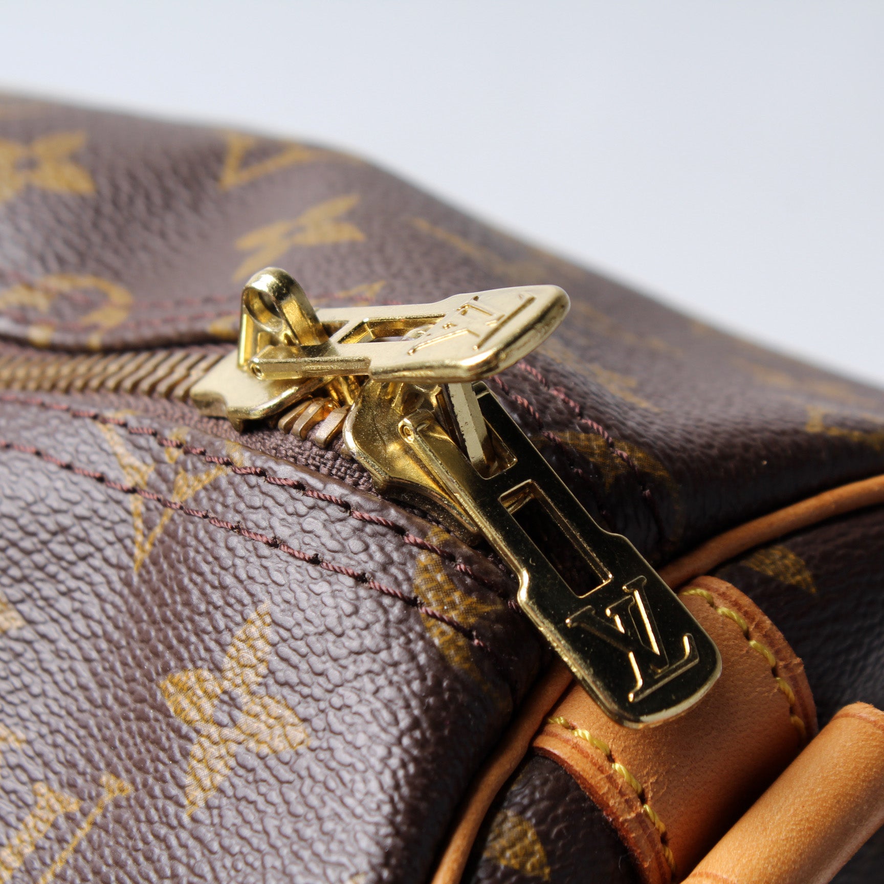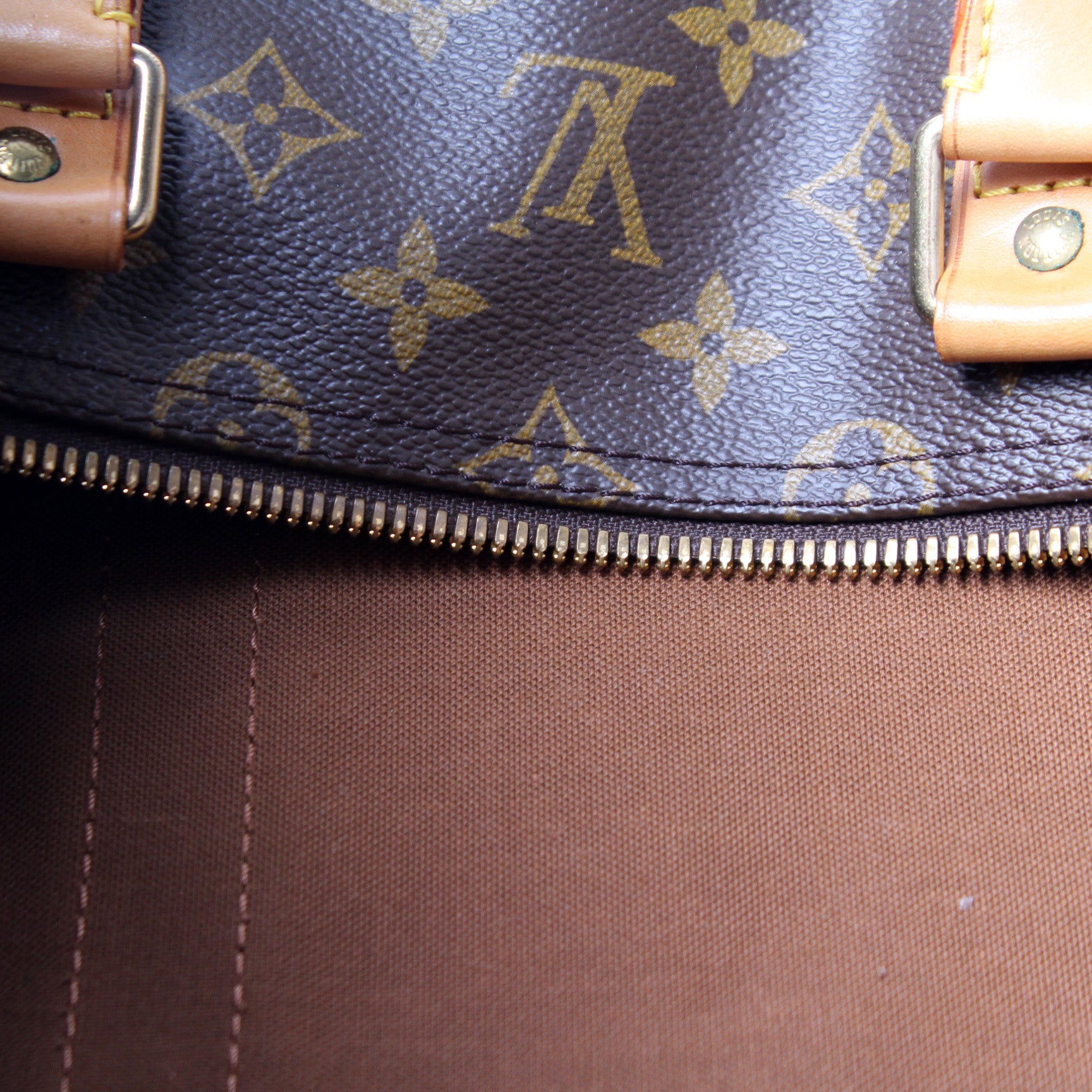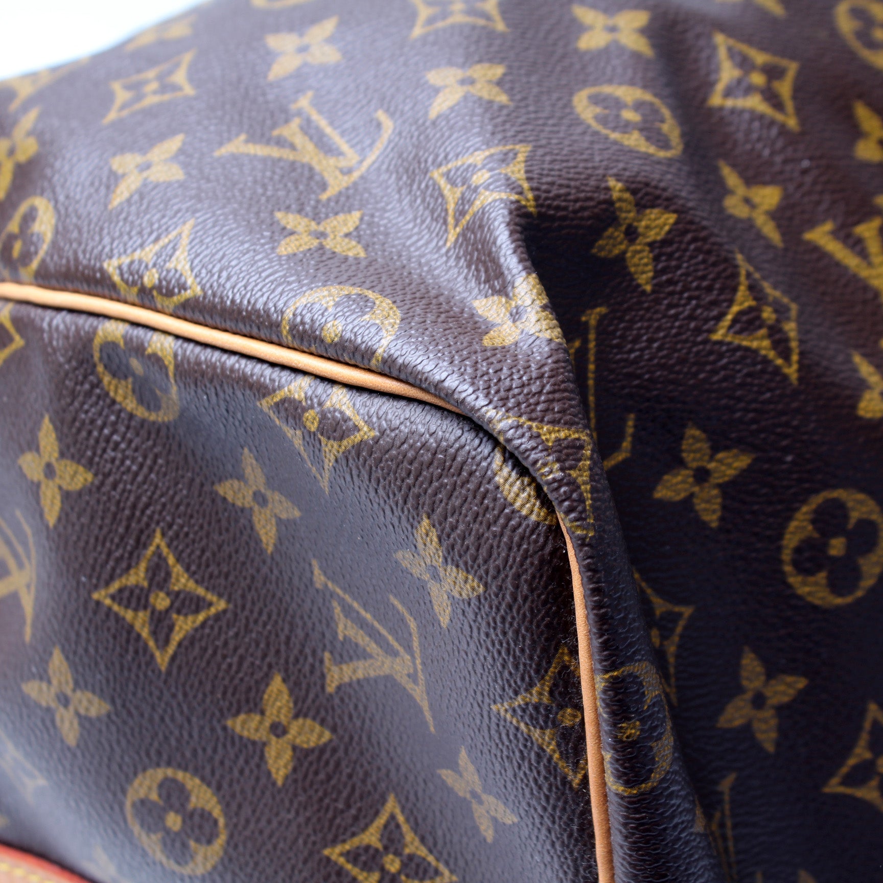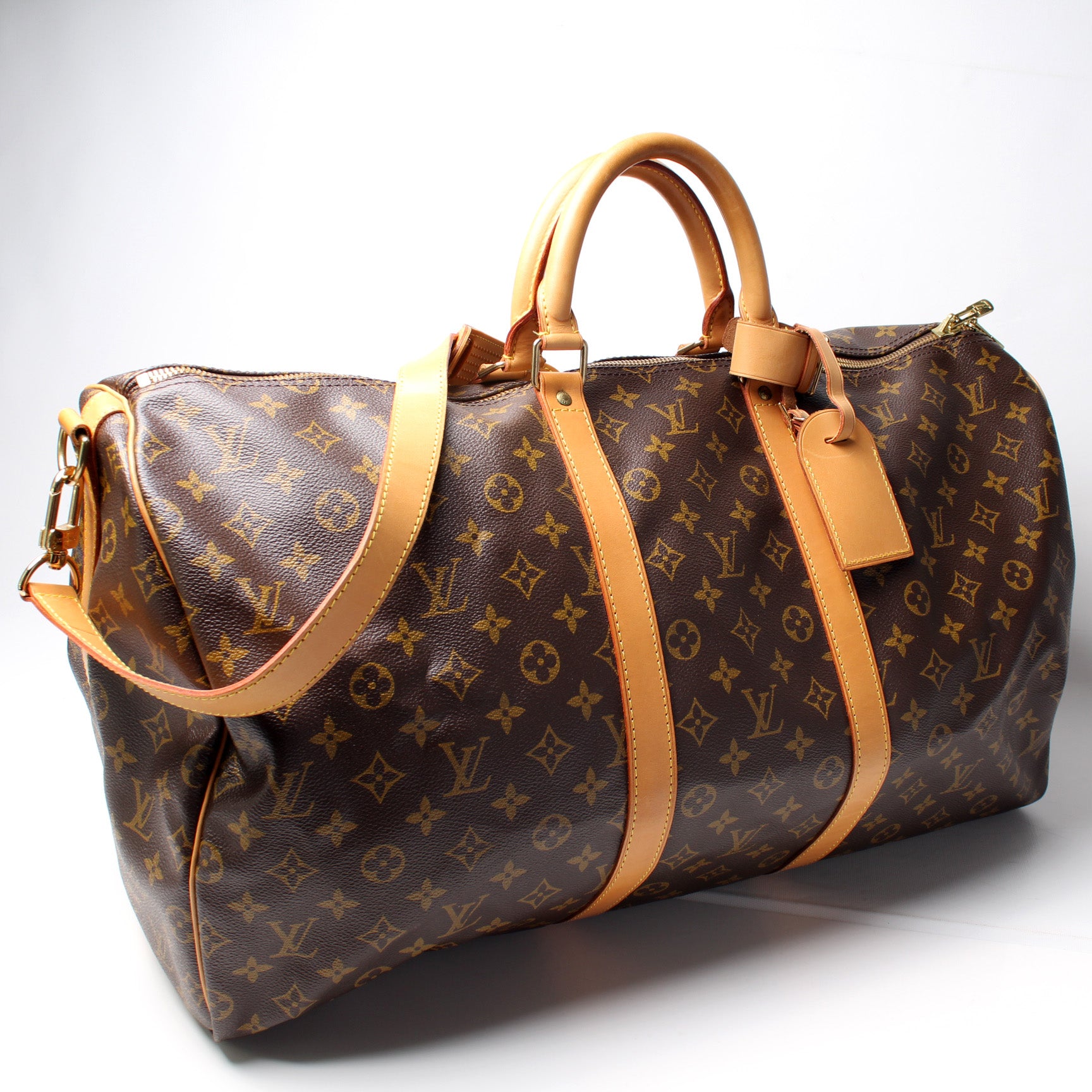 This pre-owned Louis Vuitton Keepall 55 Bandouliere is guaranteed 100% authentic. The exterior is in the classic Monogram coated canvas.